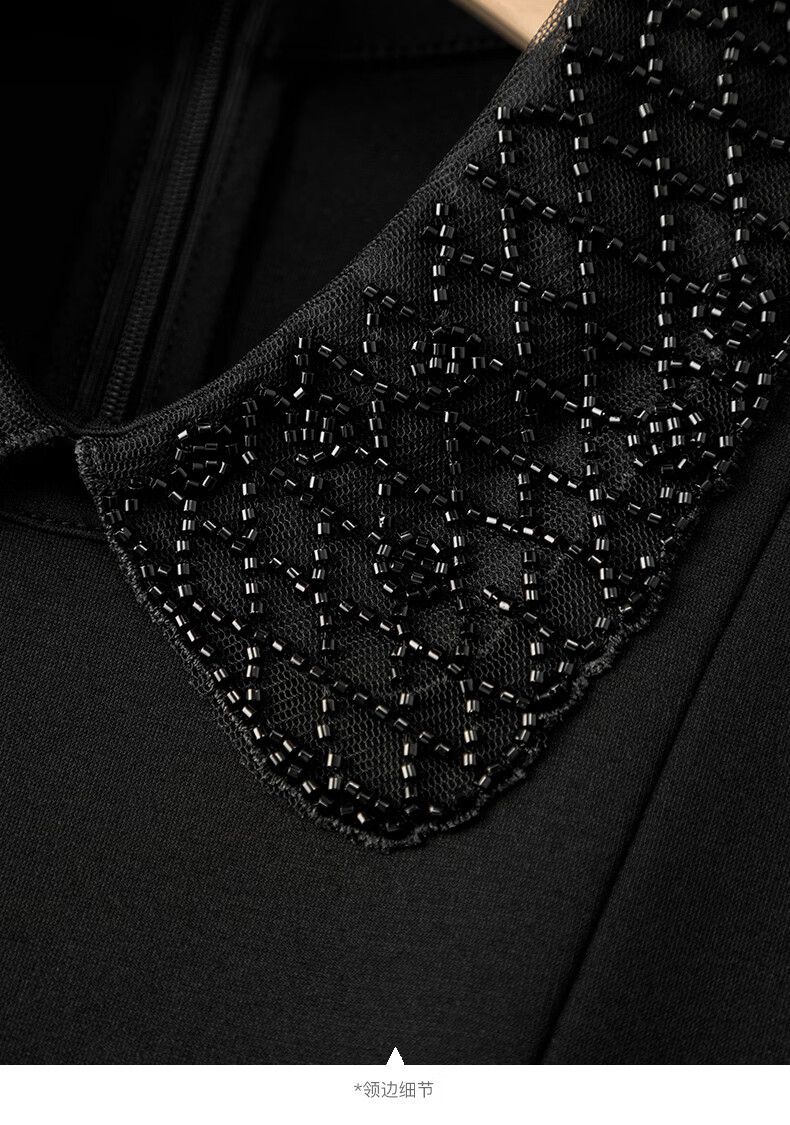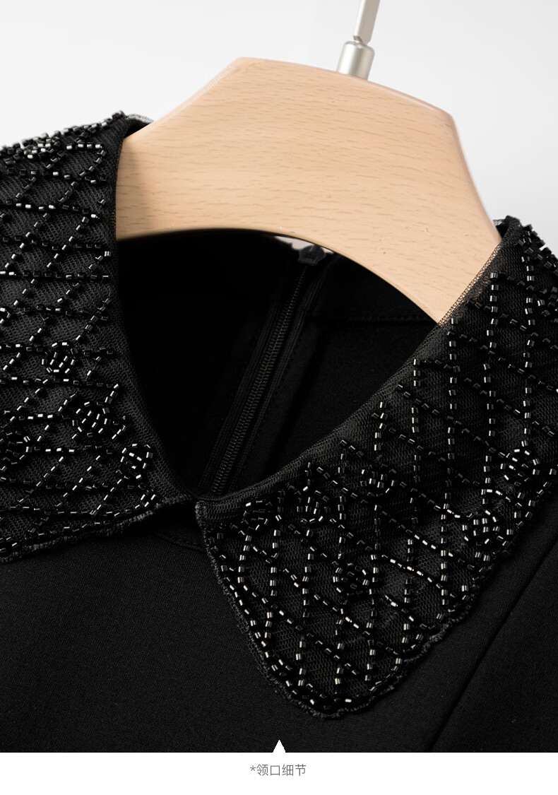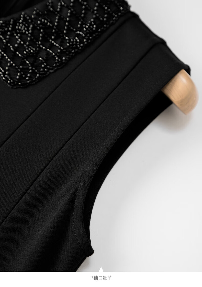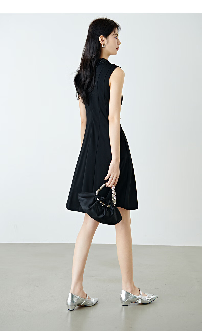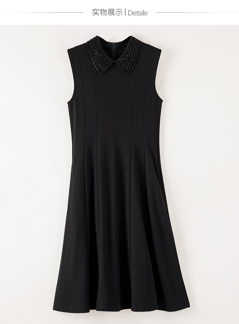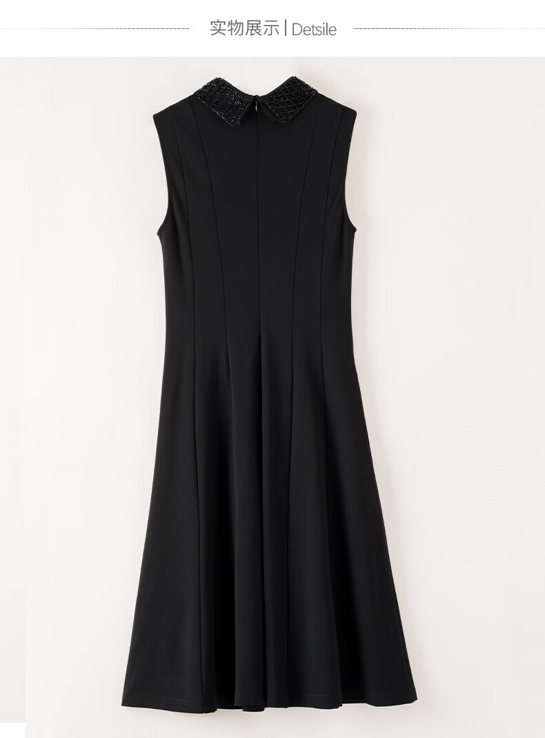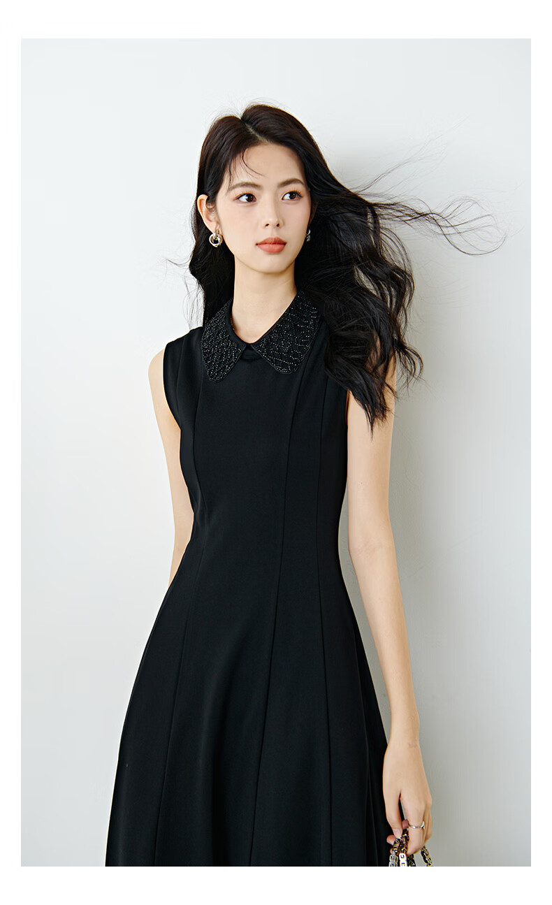 晚白【新品】2026年春款时尚翻领钉珠裙子修身显瘦气质无袖连衣裙 黑色 M