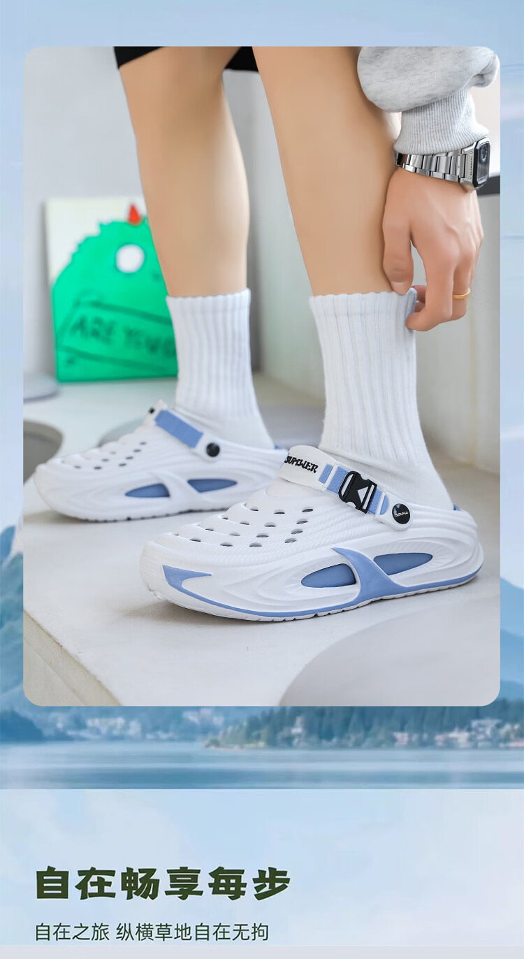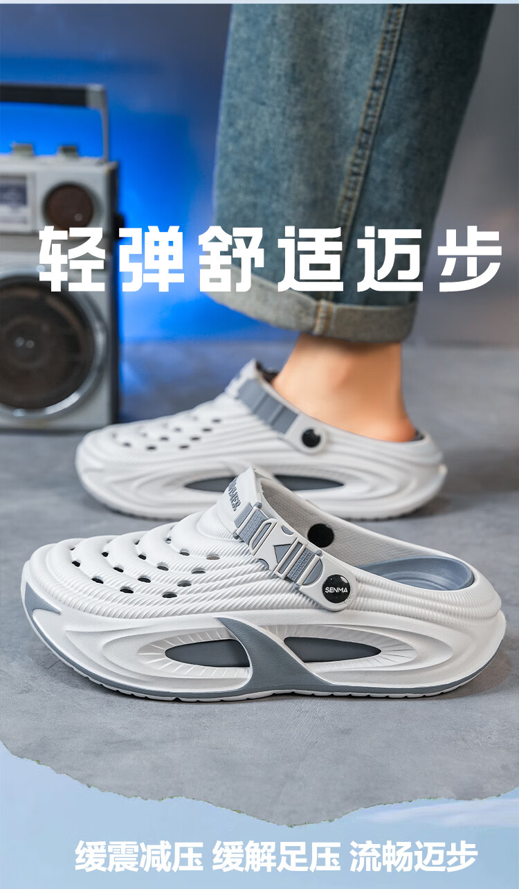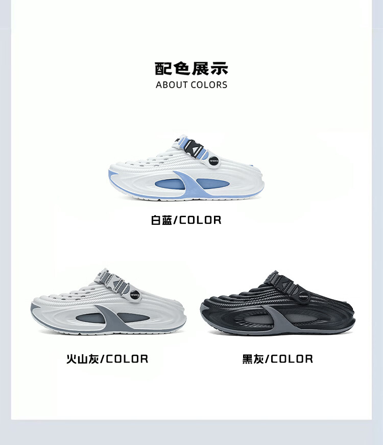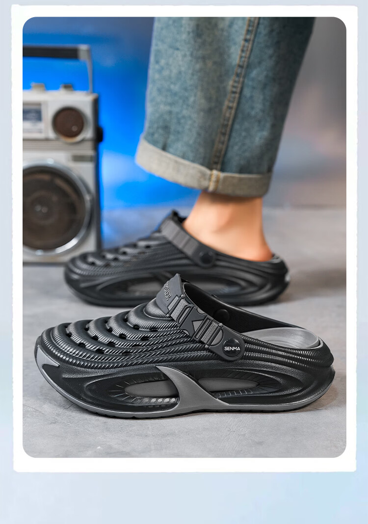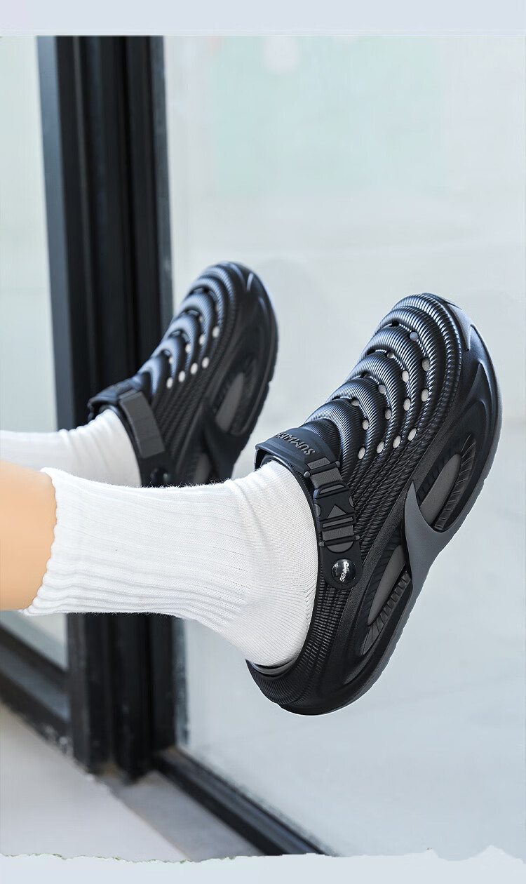 森馬洞洞鞋男2026新款夏季外穿防滑厚底溯溪沙滩凉鞋男士运动包头拖鞋 黑灰【基础款】 38-39 【现货秒发】