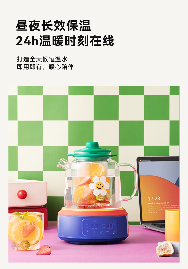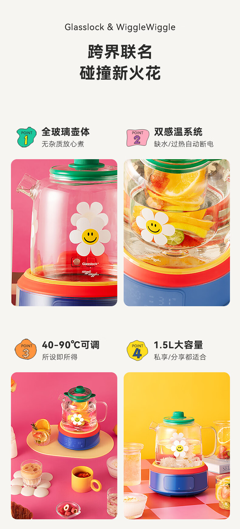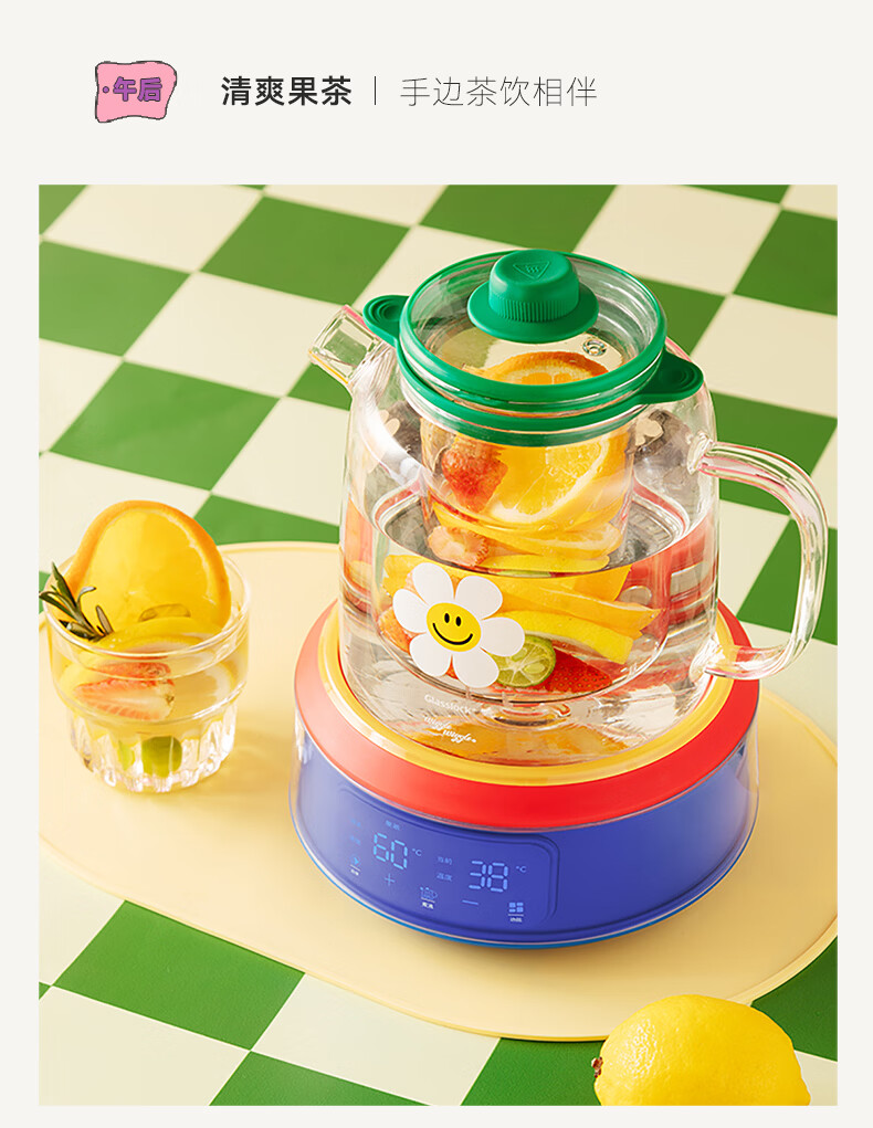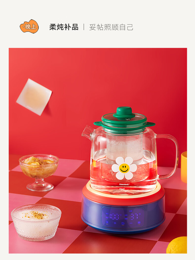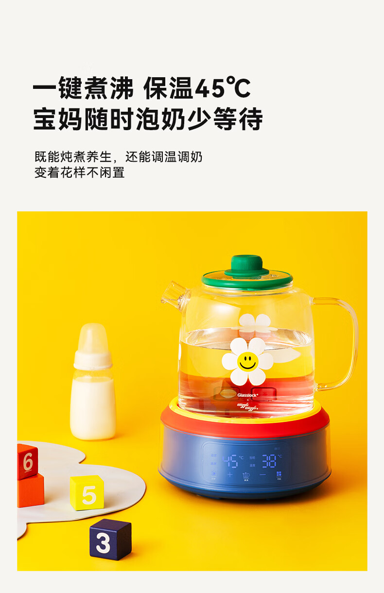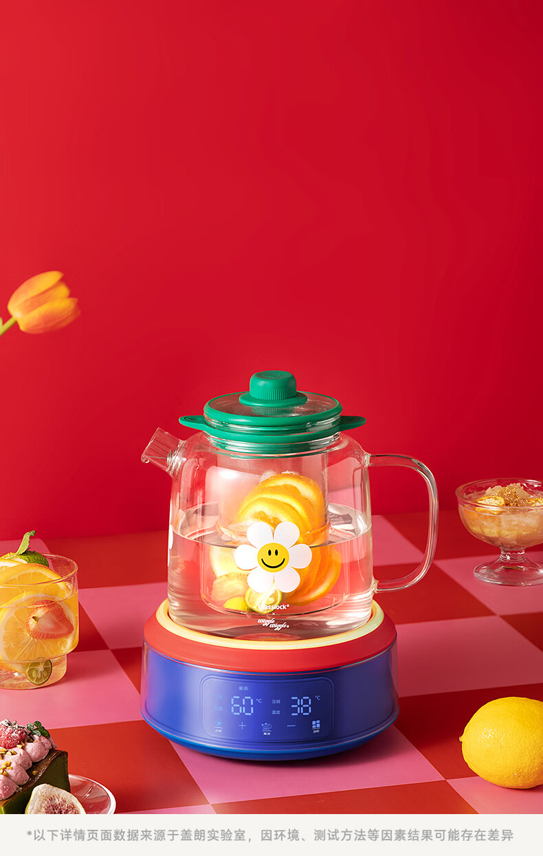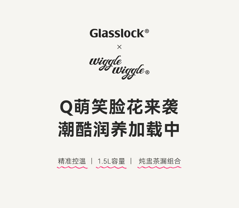 GLASSLOCK盖朗&WiggleWiggle全玻璃养生花茶壶1.5L烧水壶保温炖煮一体全自动恒温多功能办公室隔水炖燕窝