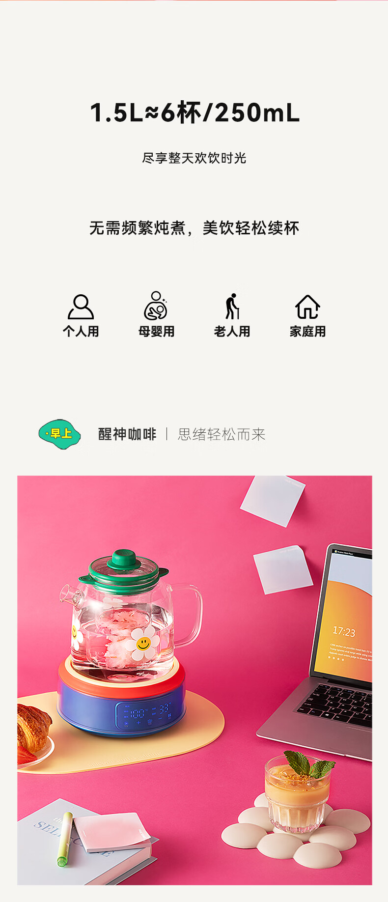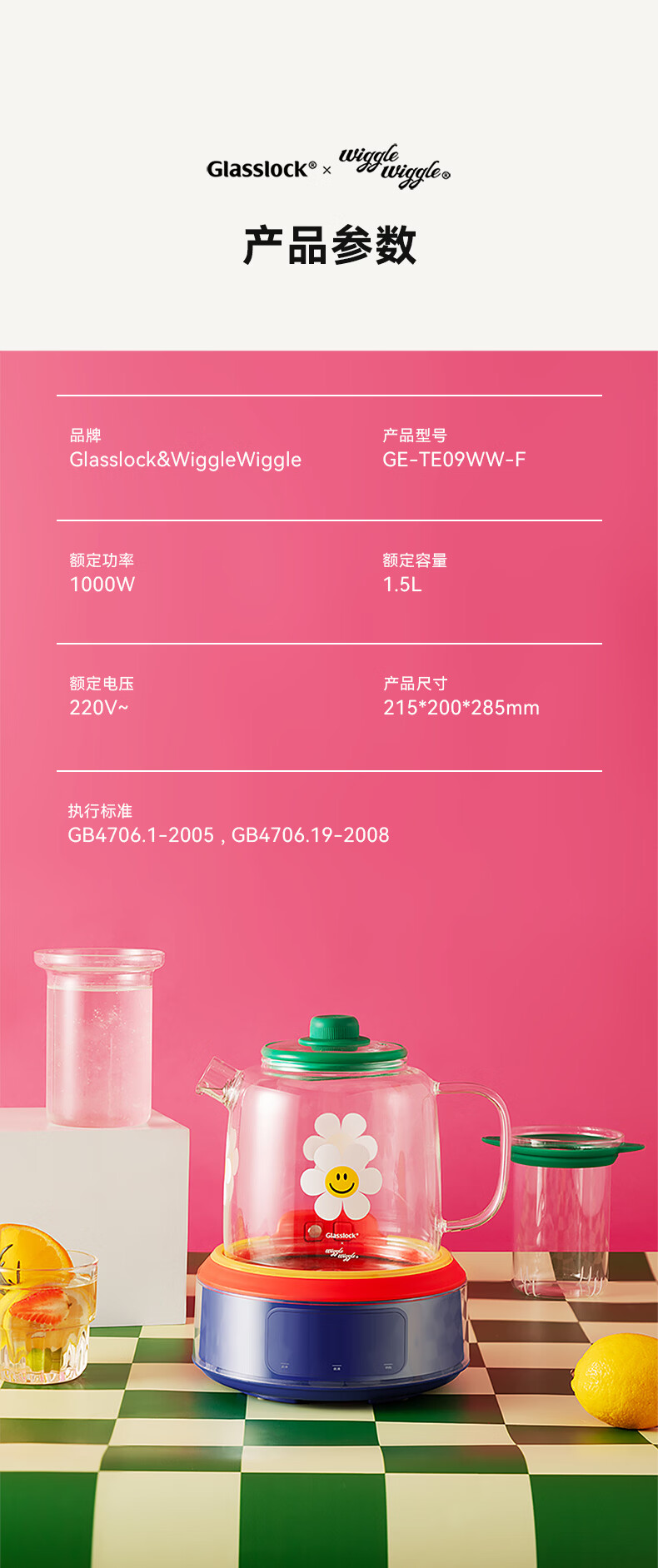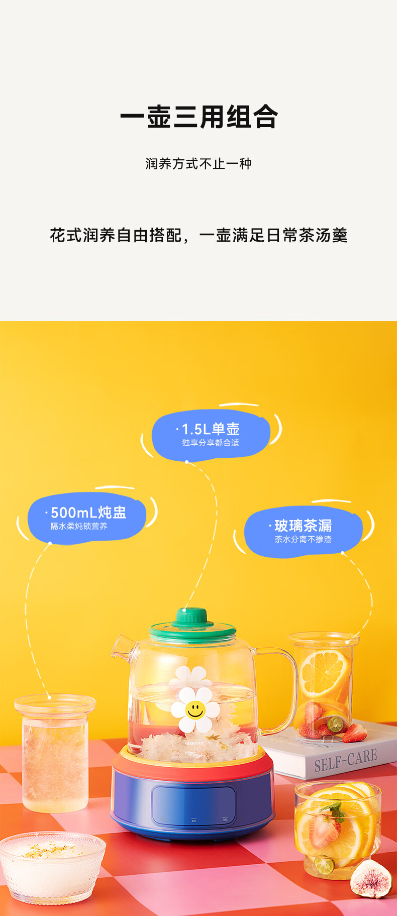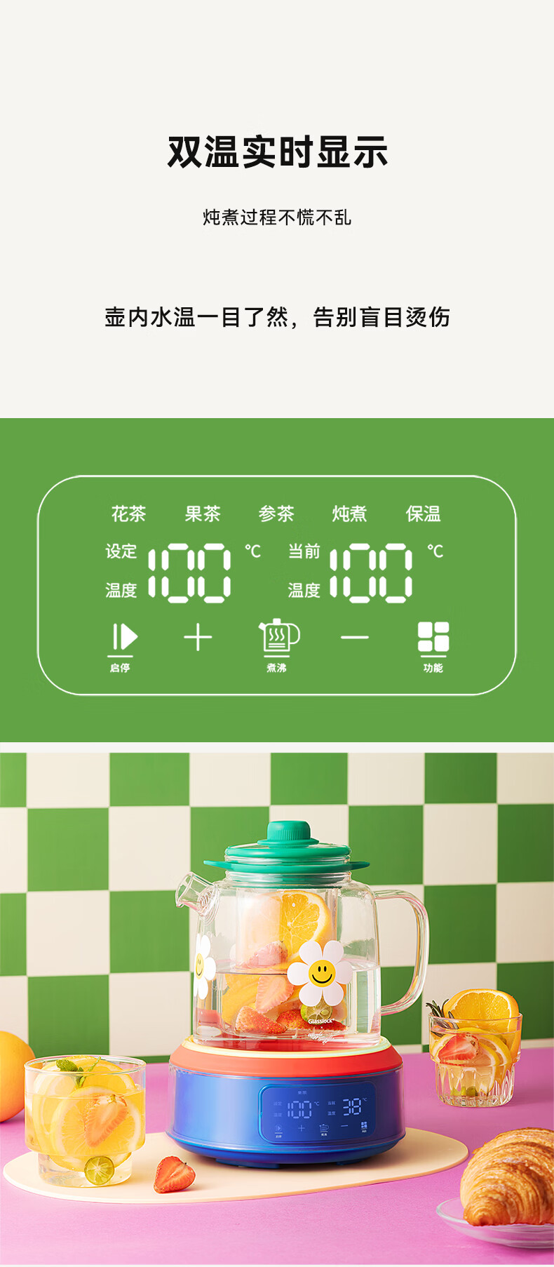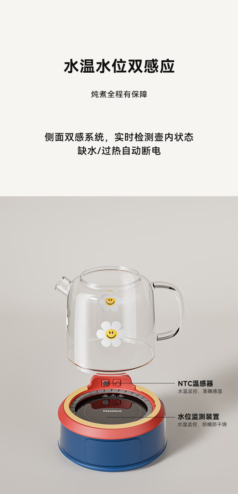 GLASSLOCK盖朗&WiggleWiggle全玻璃养生花茶壶1.5L烧水壶保温炖煮一体全自动恒温多功能办公室隔水炖燕窝
