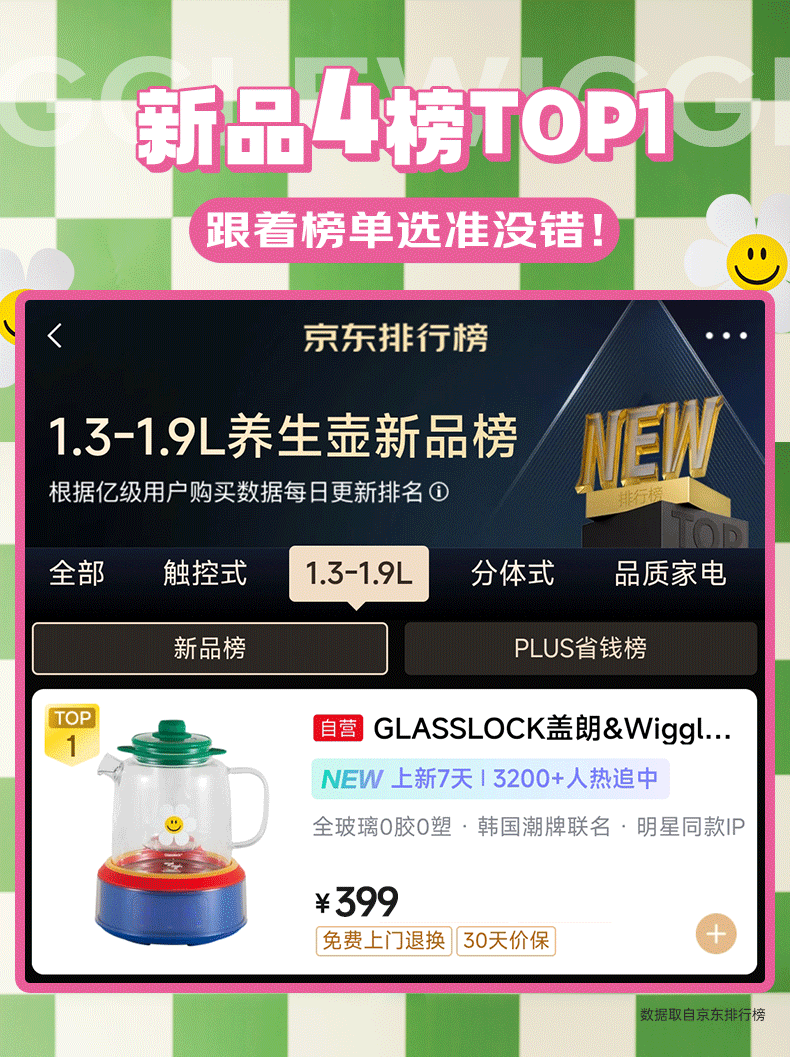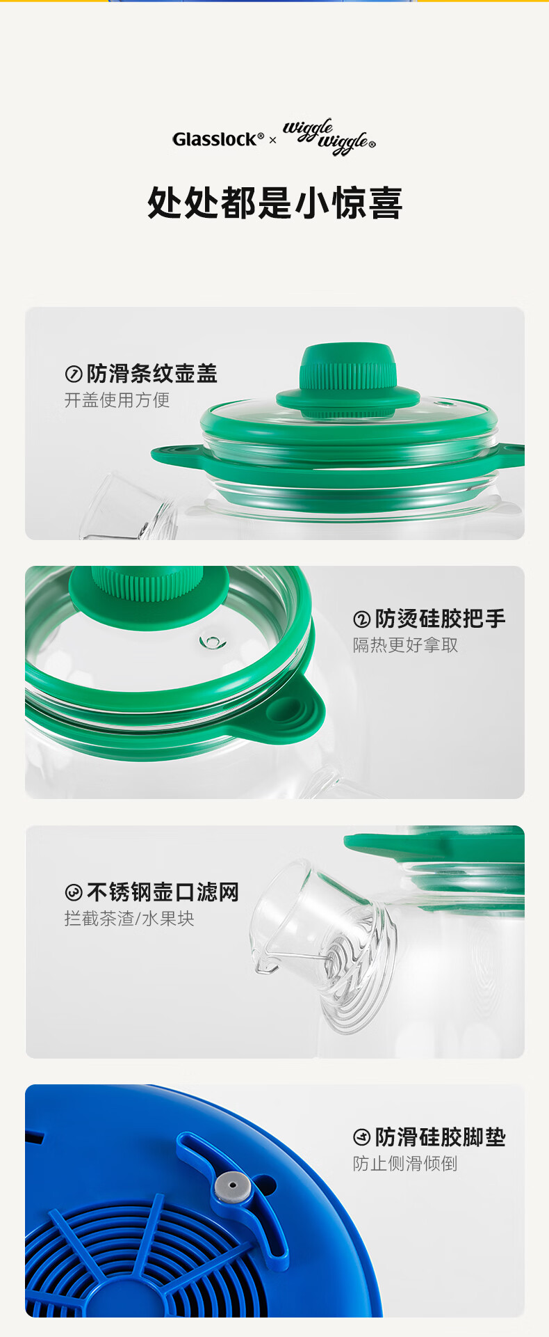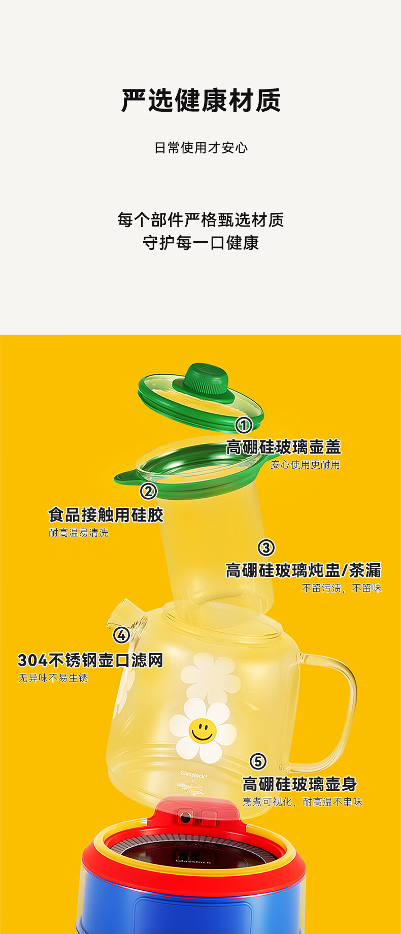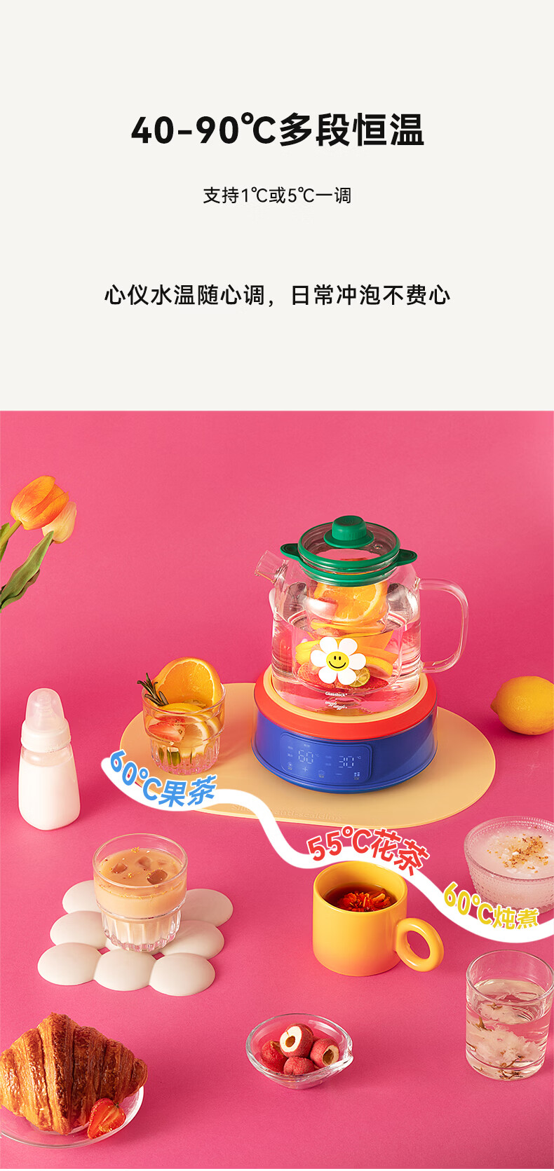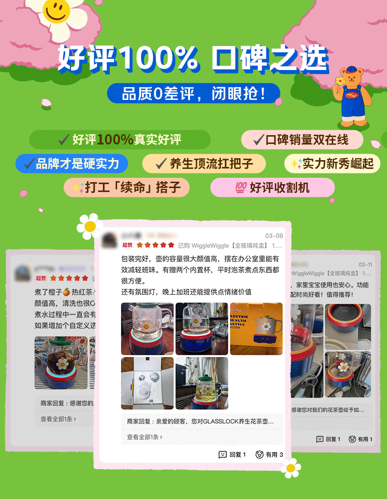 GLASSLOCK盖朗&WiggleWiggle全玻璃养生花茶壶1.5L烧水壶保温炖煮一体全自动恒温多功能办公室隔水炖燕窝