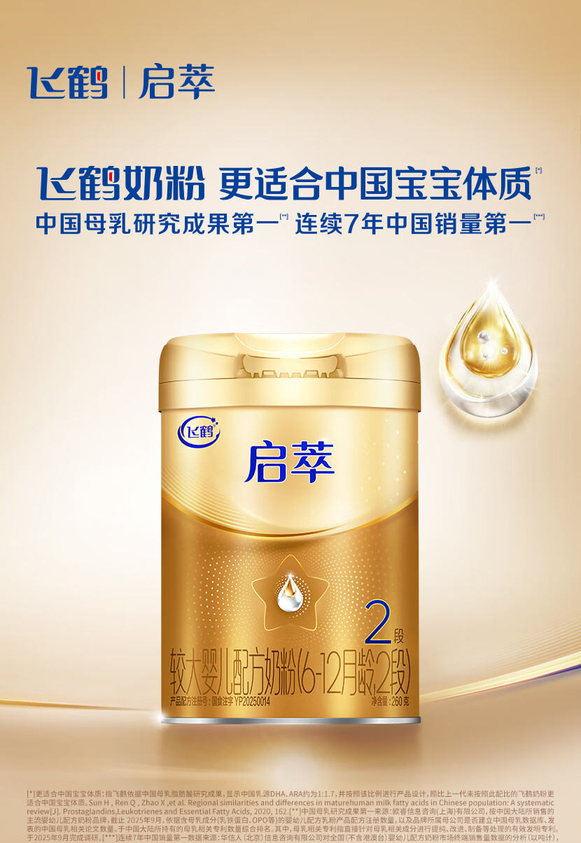 飞鹤启萃2段(6-12月龄)婴儿配方奶粉听装260g