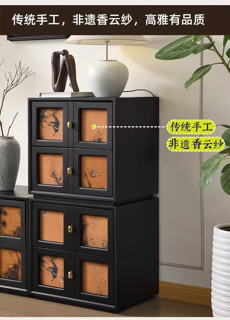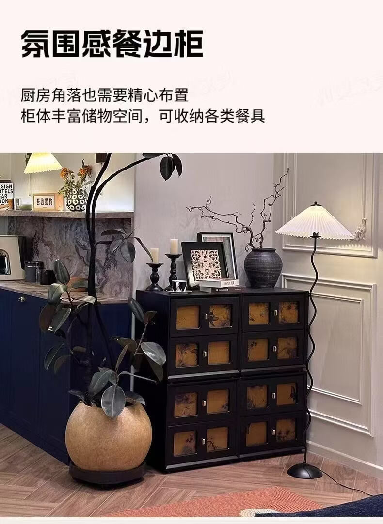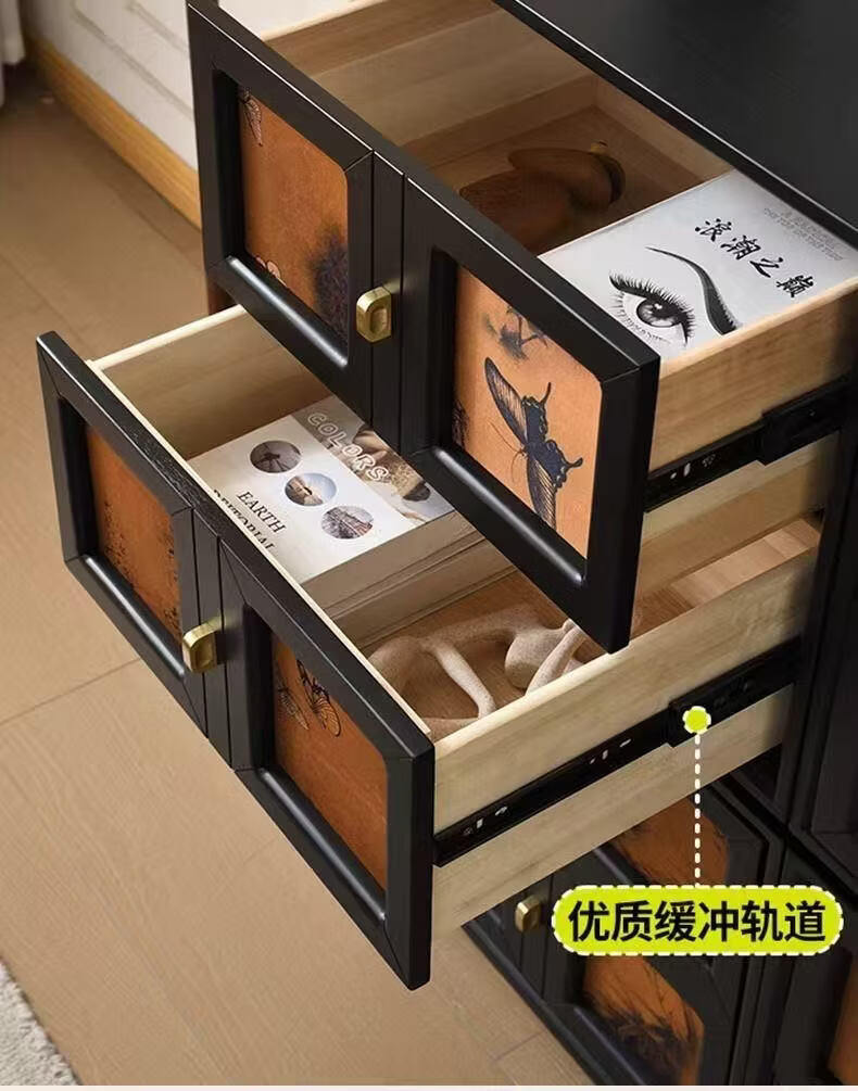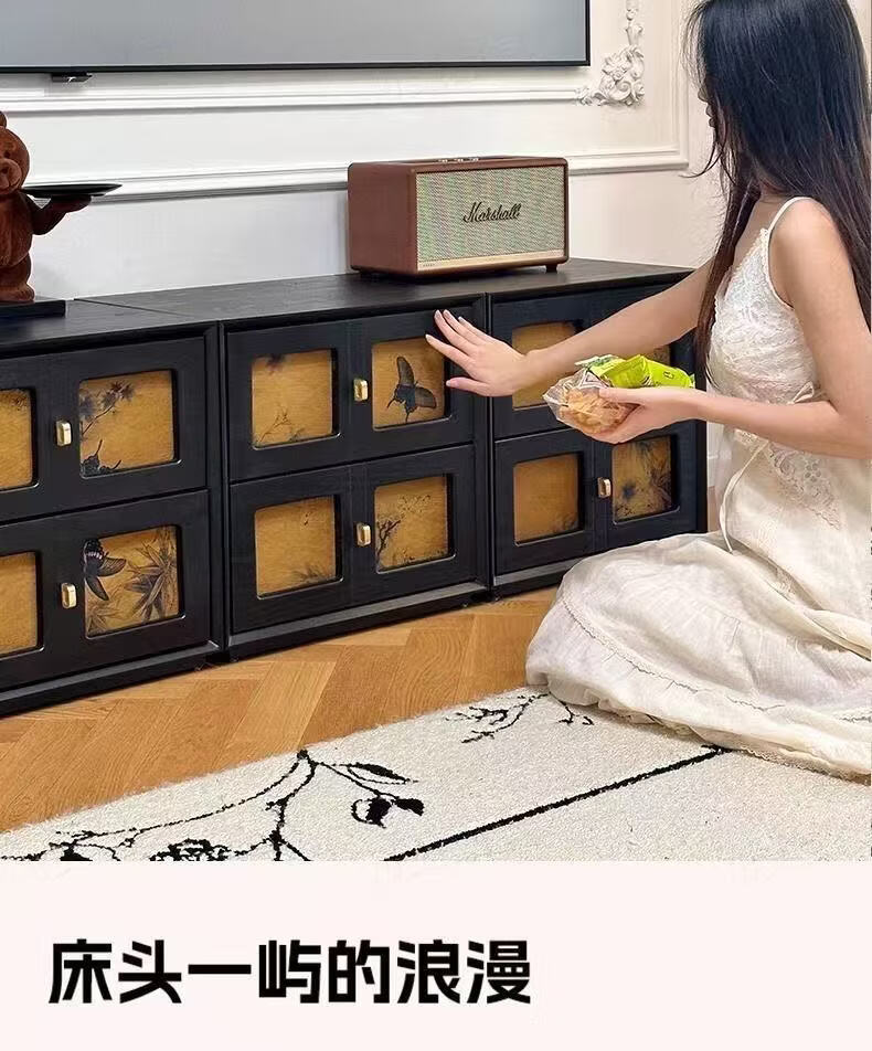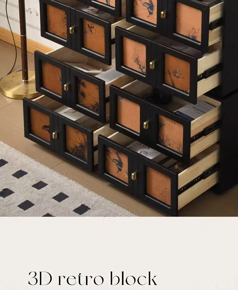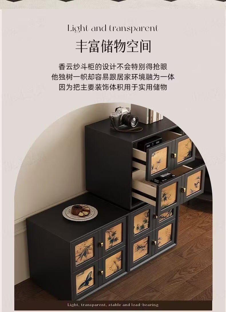 香云纱斗柜电视柜法式复古斗柜客厅靠墙柜子 黑色 50*40*50cm【整张发货】