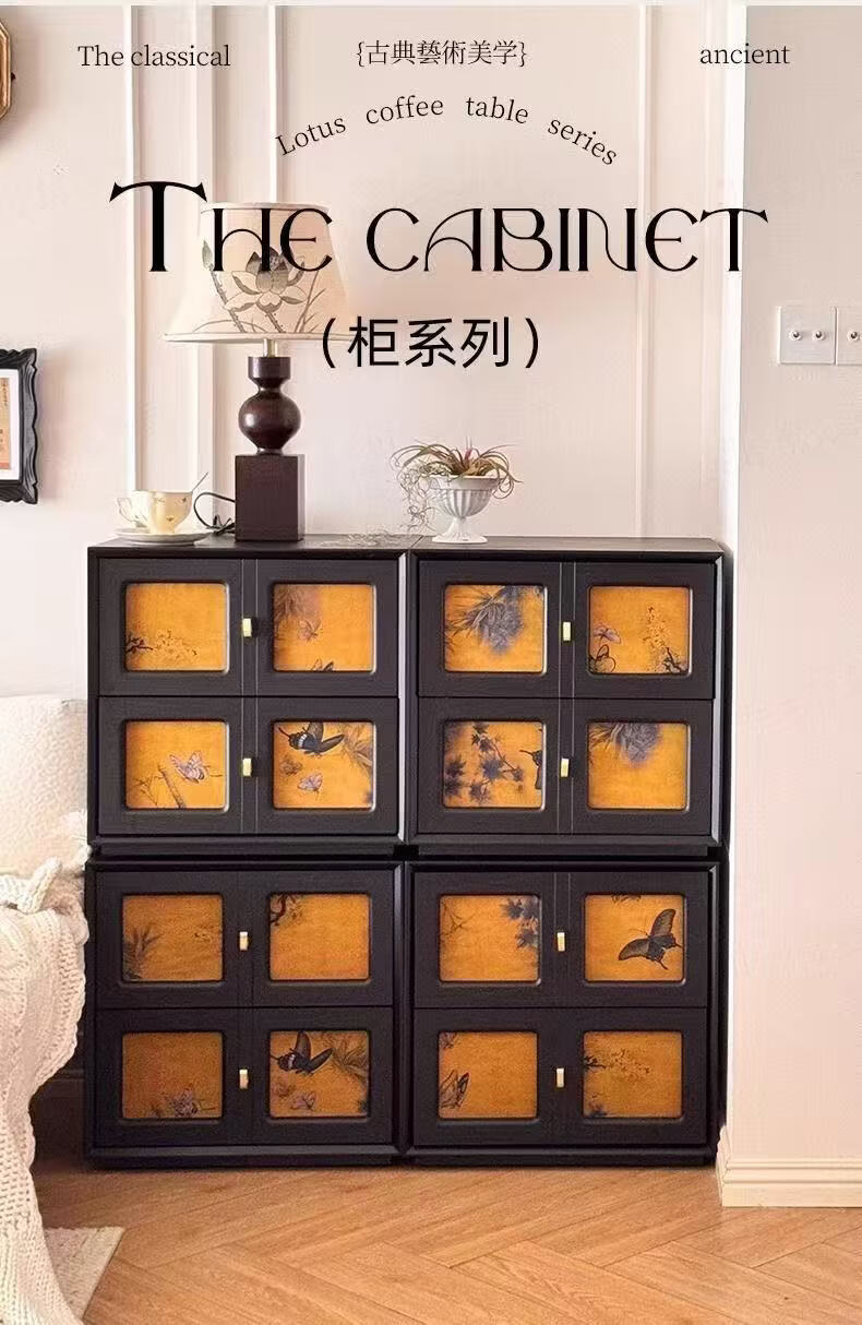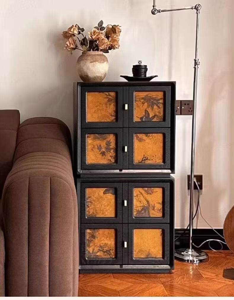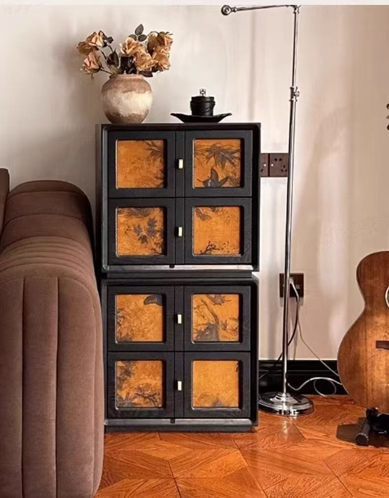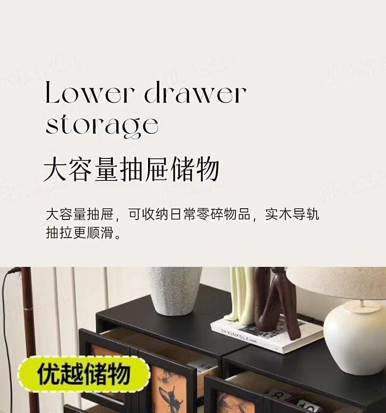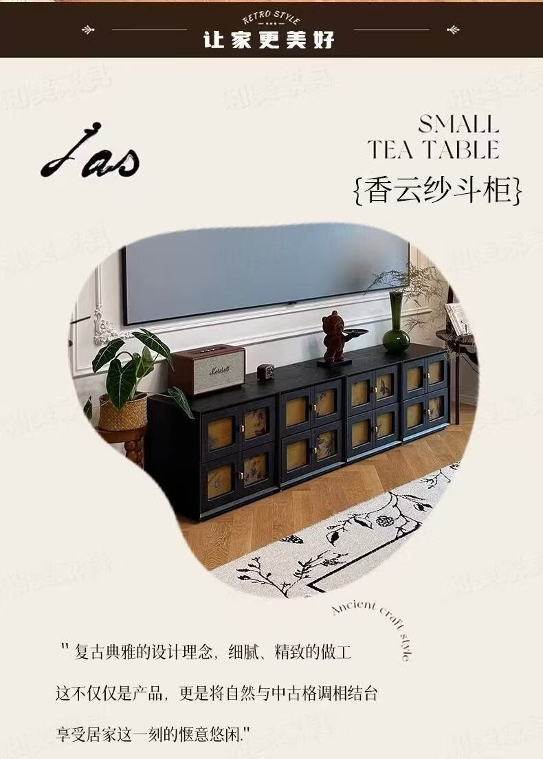 香云纱斗柜电视柜法式复古斗柜客厅靠墙柜子 黑色 50*40*50cm【整张发货】