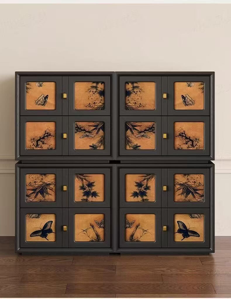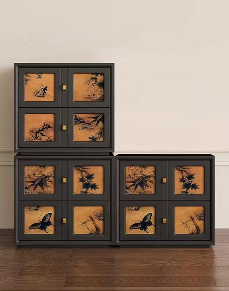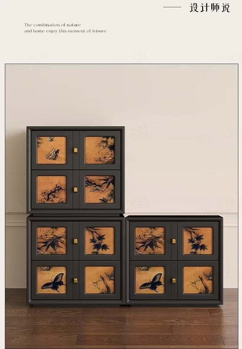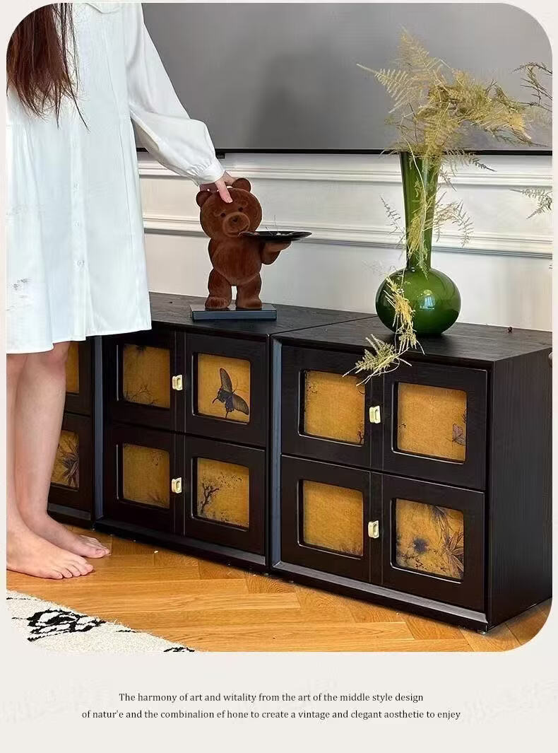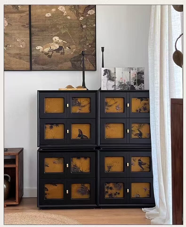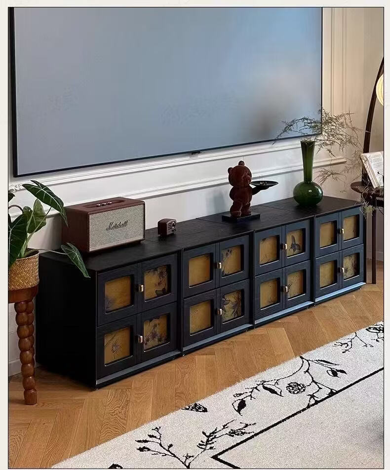 香云纱斗柜电视柜法式复古斗柜客厅靠墙柜子 黑色 50*40*50cm【整张发货】