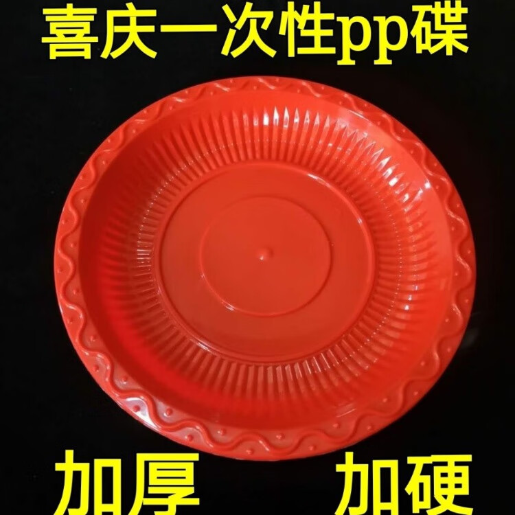豫卫康结婚喜庆红色一次性盘硬材质塑料盘果盘菜盘点心盘喜庆宴席包邮 【14厘米】红色pp碟 20个