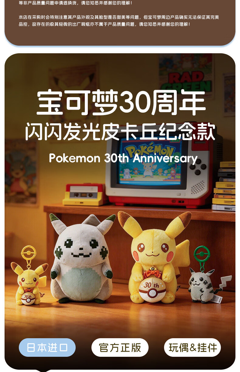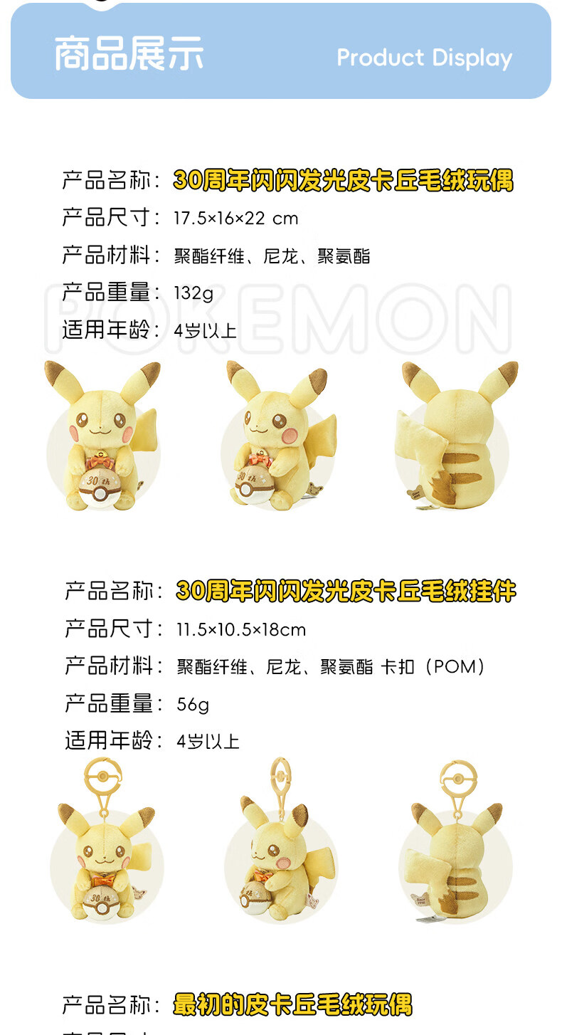 宝可梦【正版30周年纪念款】玩偶公仔挂件闪闪发光最初的皮卡丘周边玩具 (挂件)最初的皮卡丘 12×3.5×10 cm 【预售】15天内发货