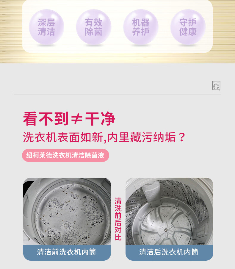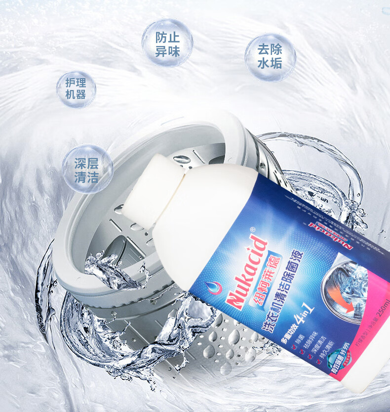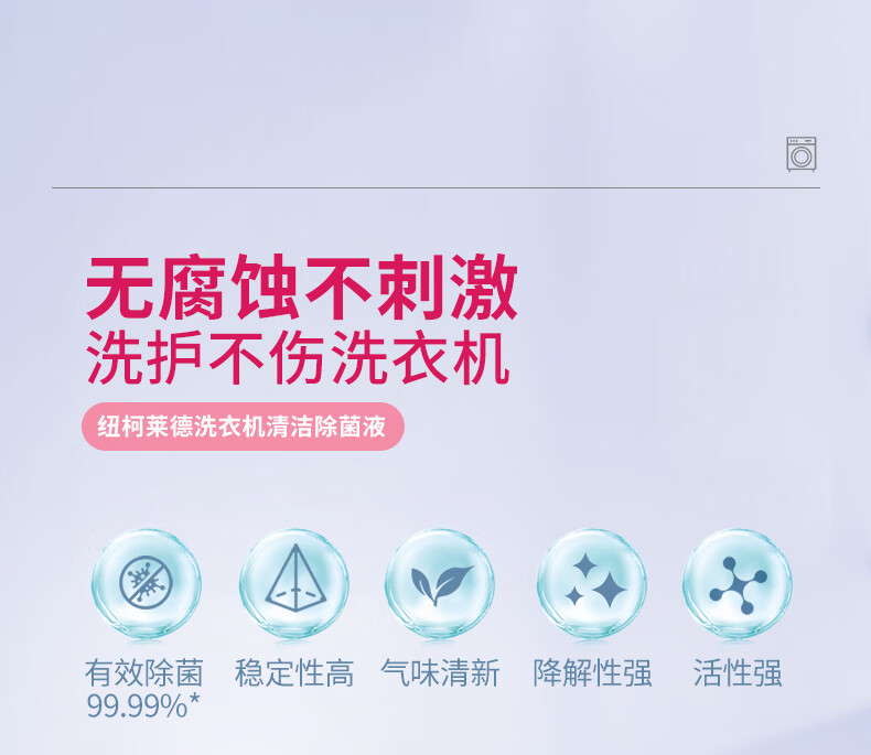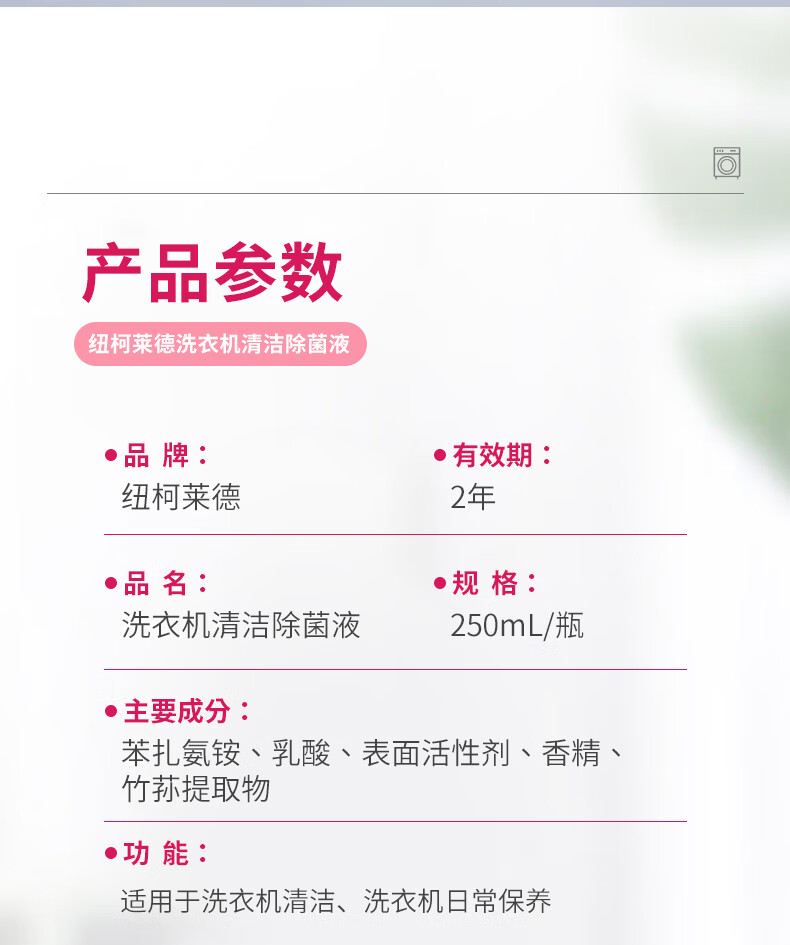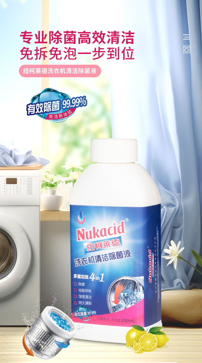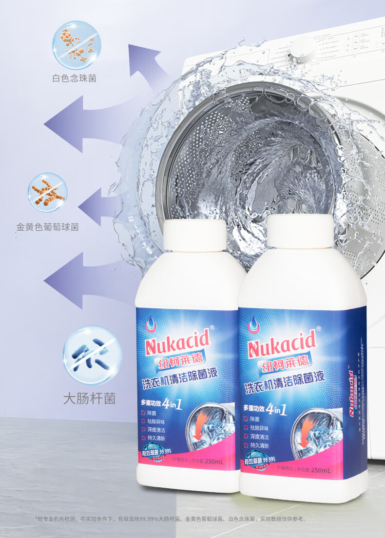 纽柯莱德洗衣机槽清洗剂强力除垢除真菌99.99%除细菌除螨虫 250*2【免浸泡一键清洁】