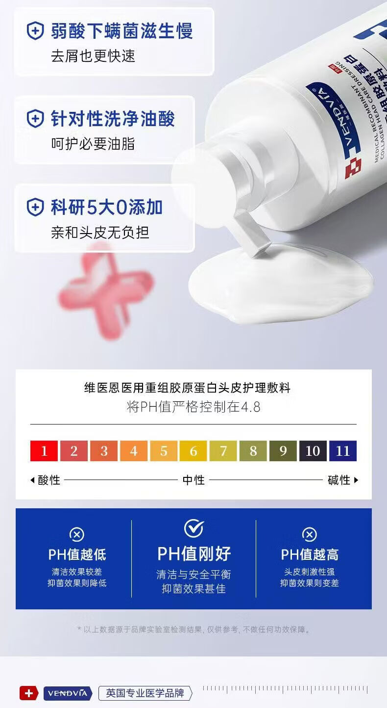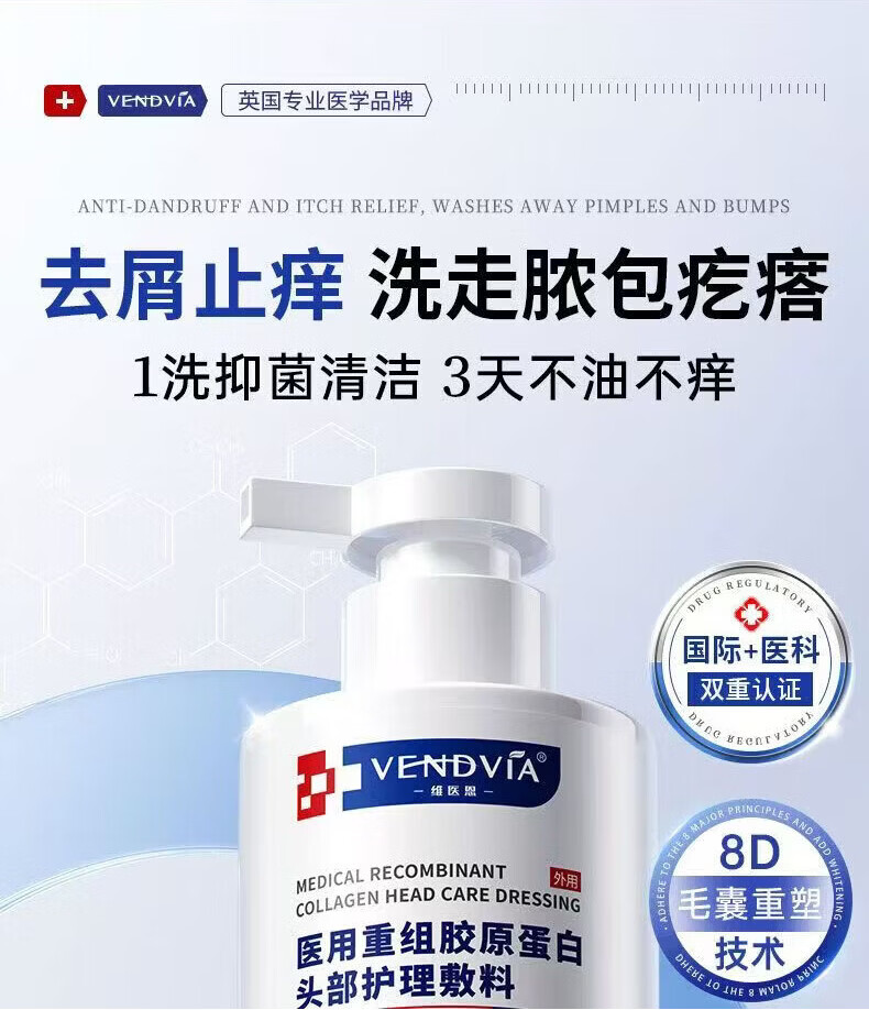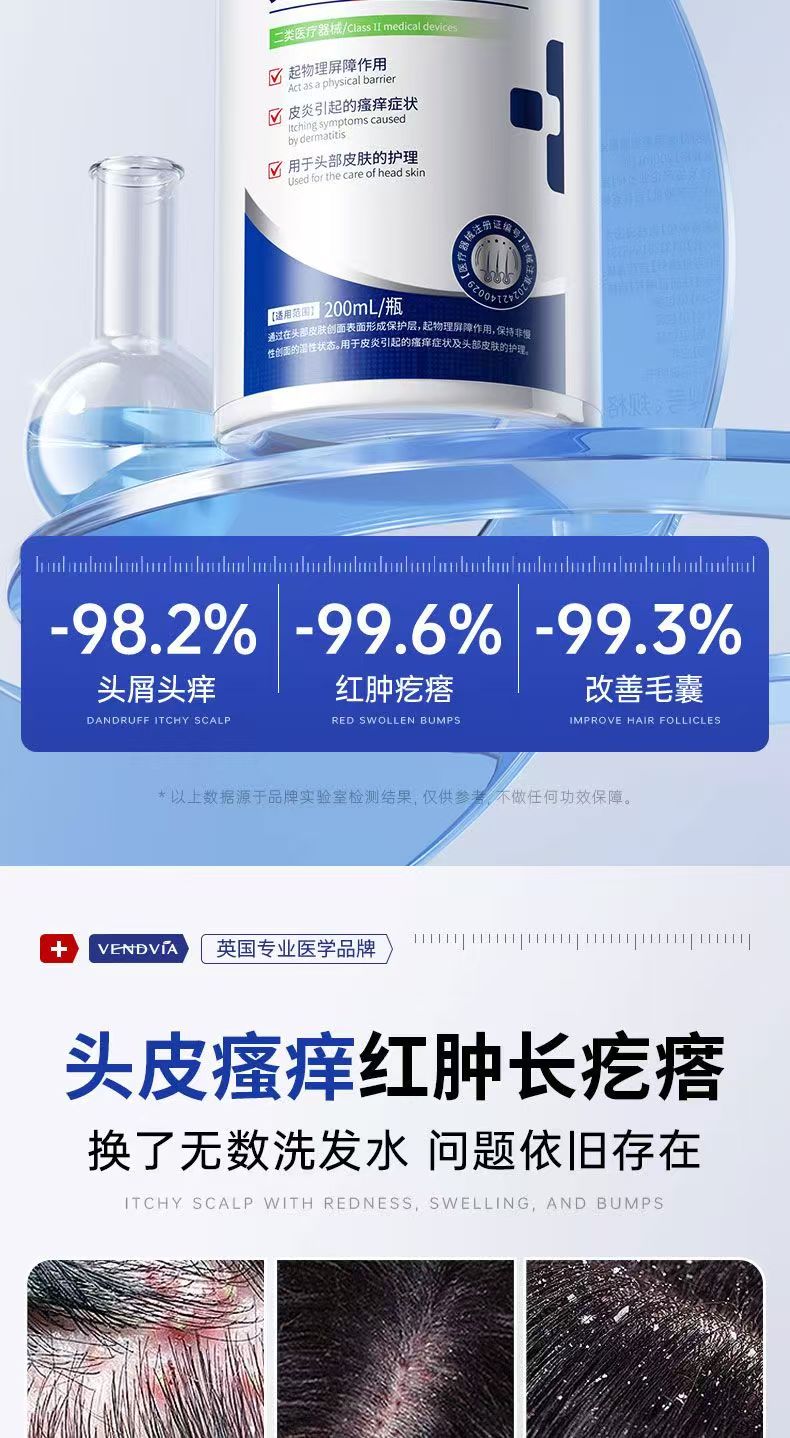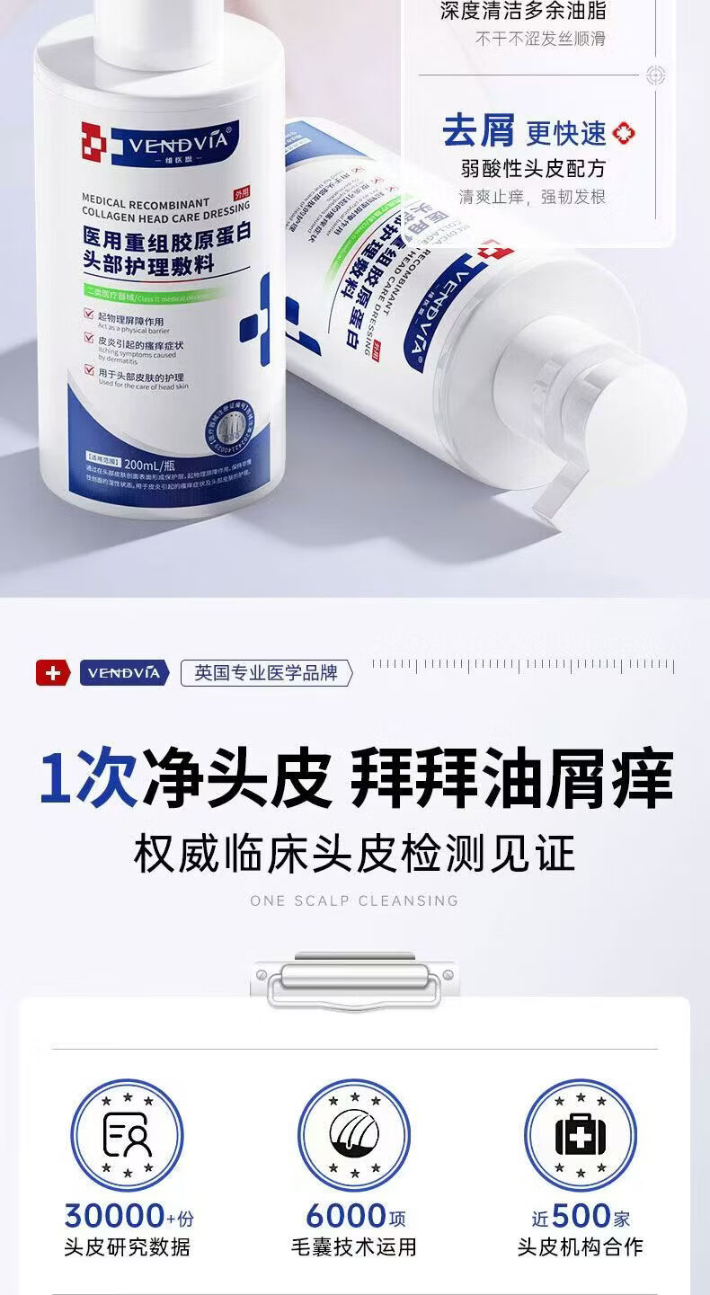 Vendvia医用洗发水重组胶原蛋白头部护理敷料药头皮痒止痒毛囊炎头部专用 2支医用洗发水【去屑止痒毛囊炎专用】