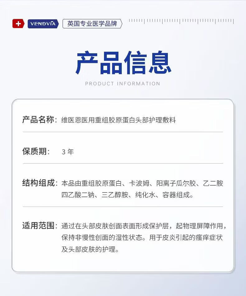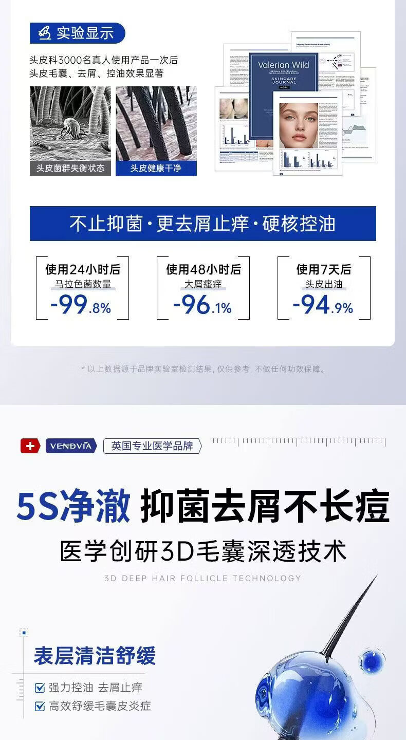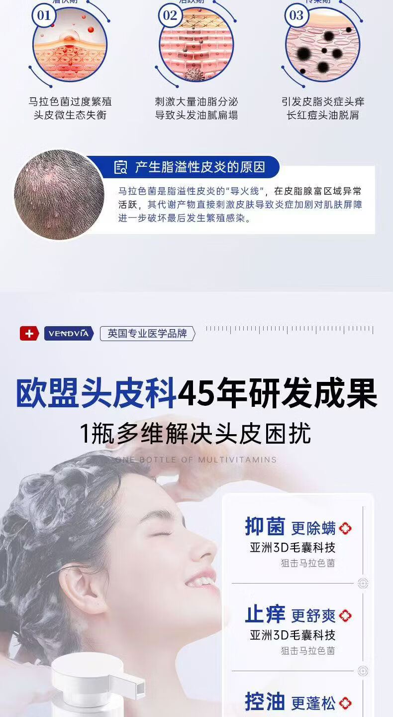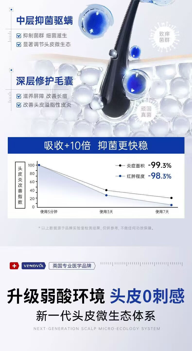 Vendvia医用洗发水重组胶原蛋白头部护理敷料药头皮痒止痒毛囊炎头部专用 2支医用洗发水【去屑止痒毛囊炎专用】
