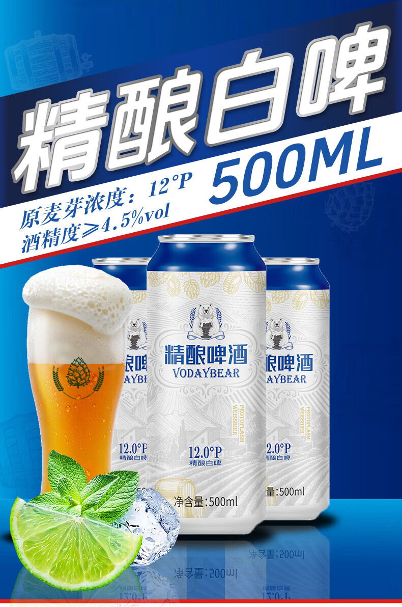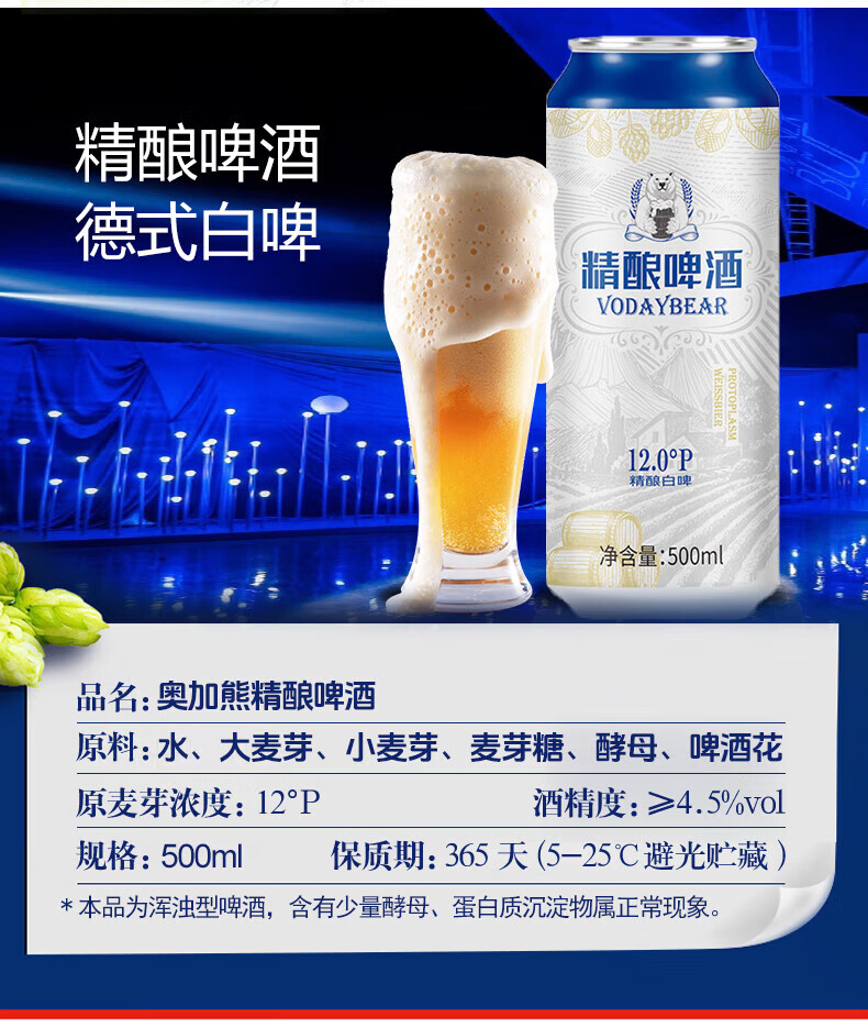 奥加熊原浆白啤酒整箱 原麦汁12°P精酿原浆啤酒500mL啤酒大罐 500mL 12罐 整箱装