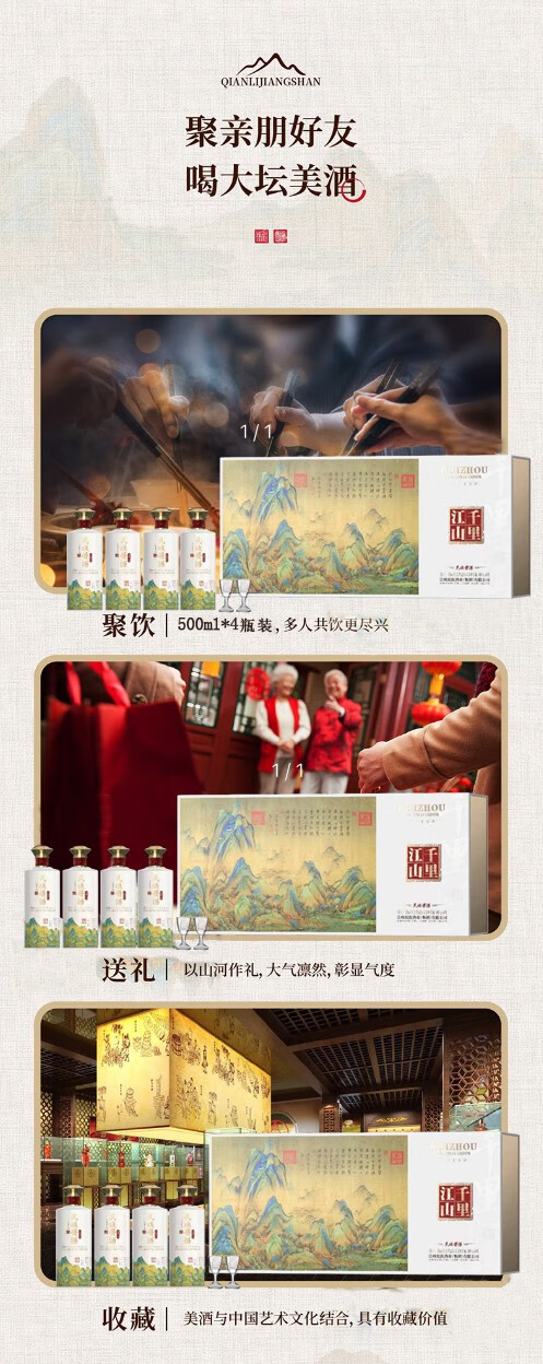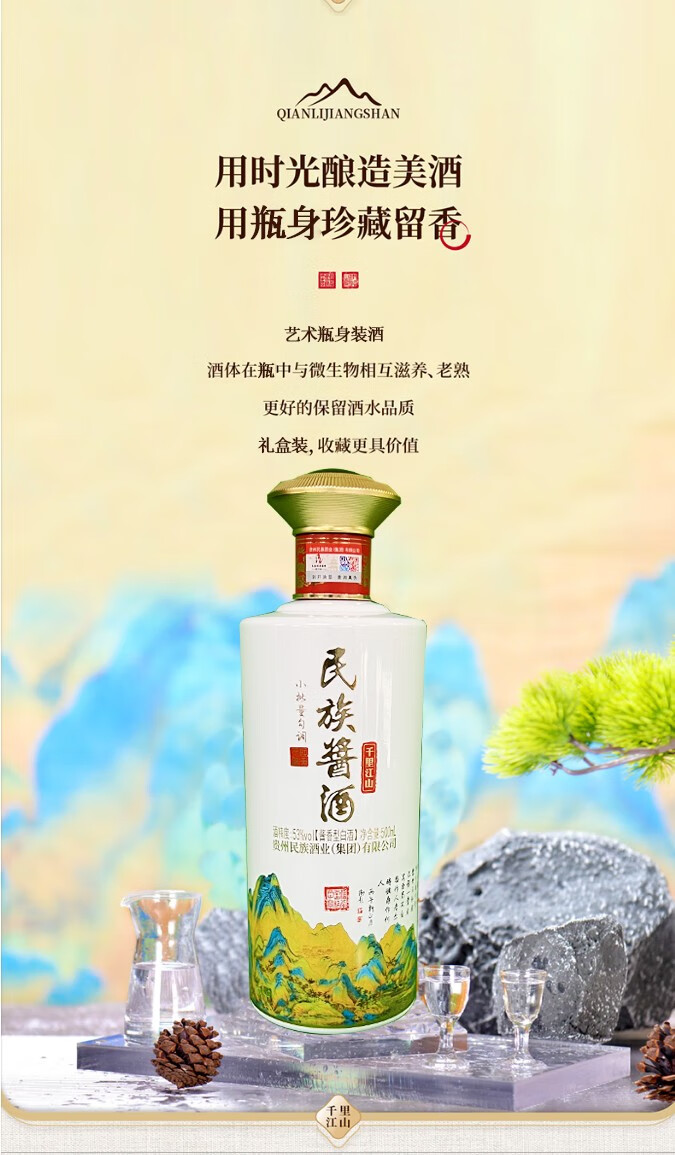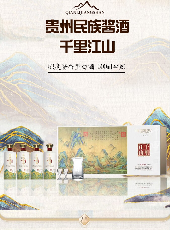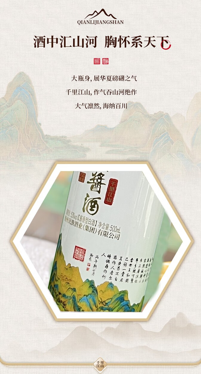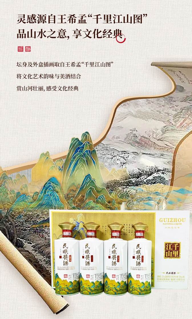 民族酱千里江山53度酱香型白酒礼盒装纯粮食酒 53度 500mL 4瓶 1盒