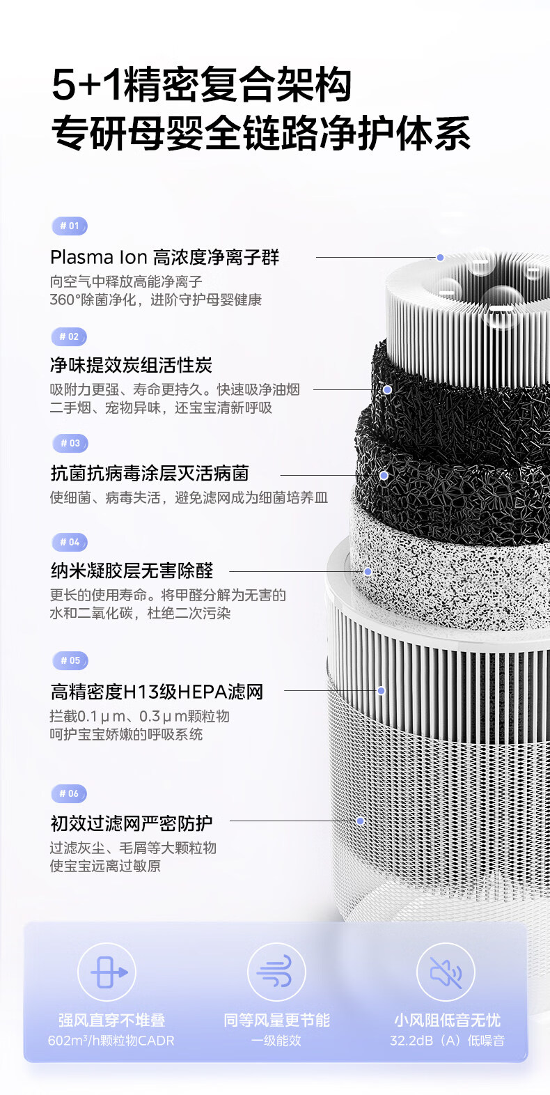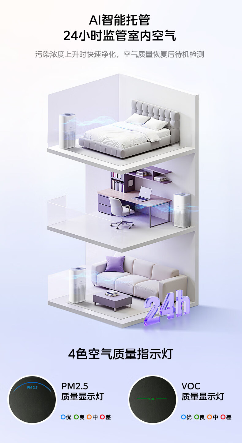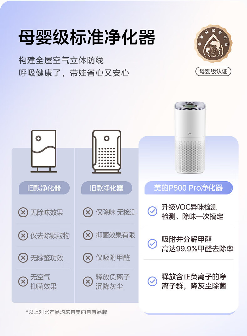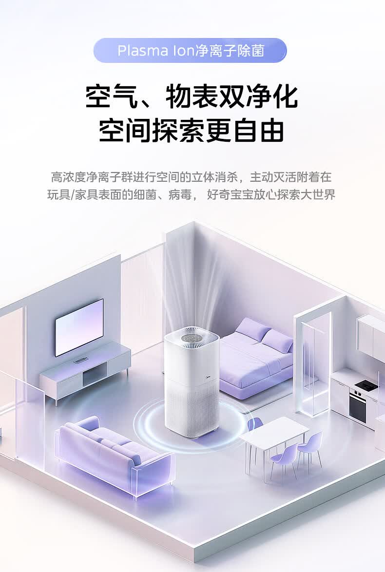 美的(Midea)美的P500Pro母婴空气净化器 数显家用鼻炎过敏除菌净化器 分解除甲醛新房婴儿无臭氧JHQ-P500 Pro 白色 【母婴医护双认证】P500Pro