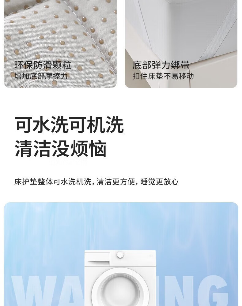 LOVO罗莱生活旗下品牌 家用软垫床褥垫子单双人可水洗席梦思床护垫 【抗菌防螨】可水洗床护垫 90cm*200cm