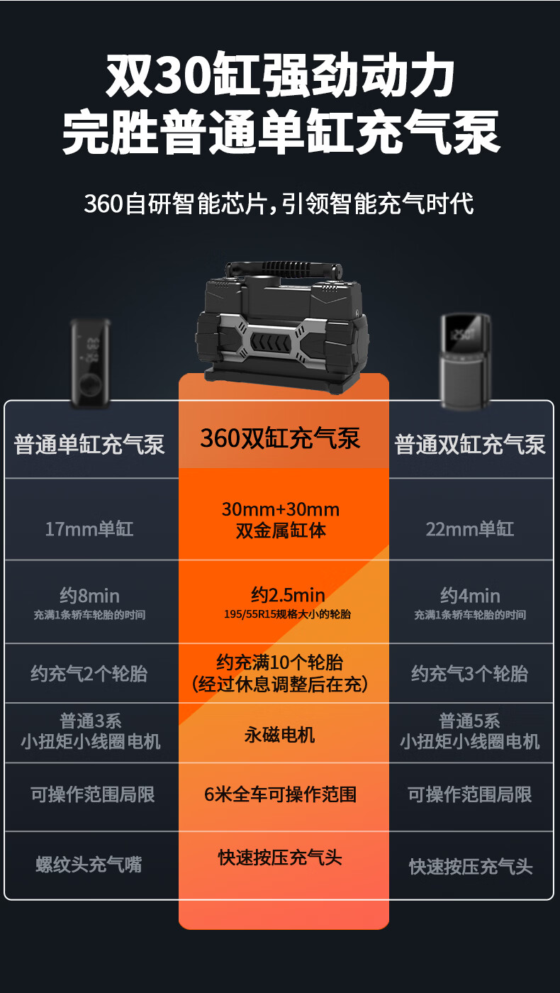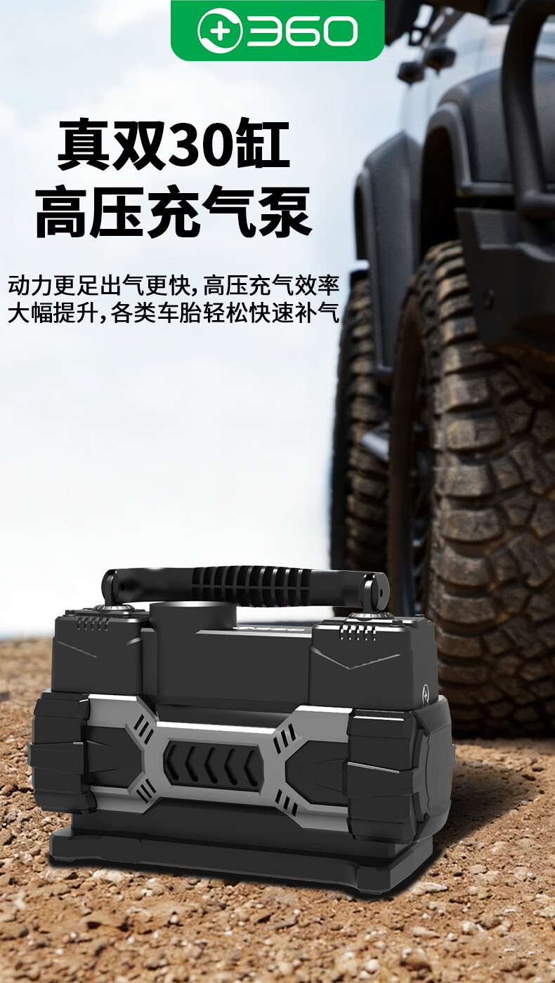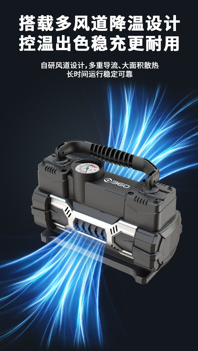 360车载充气泵总60缸合金双缸体搭电宝适用越野车轮胎自行车摩托车 【无线两用搭电款】总60缸至臻版搭电宝