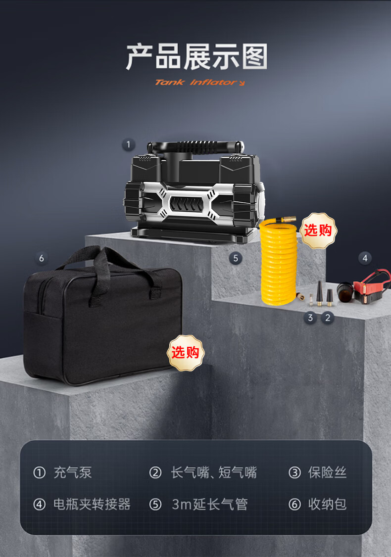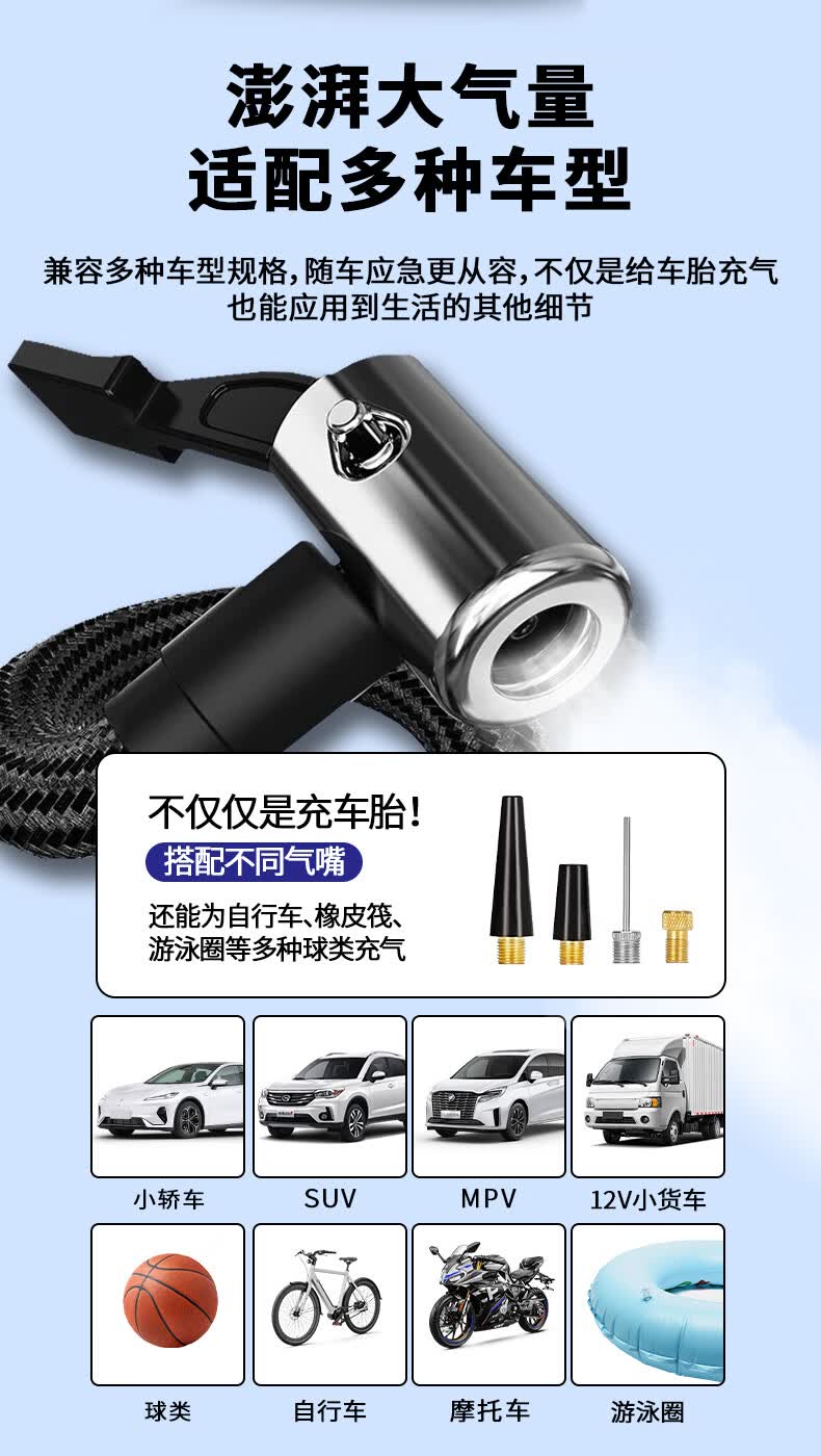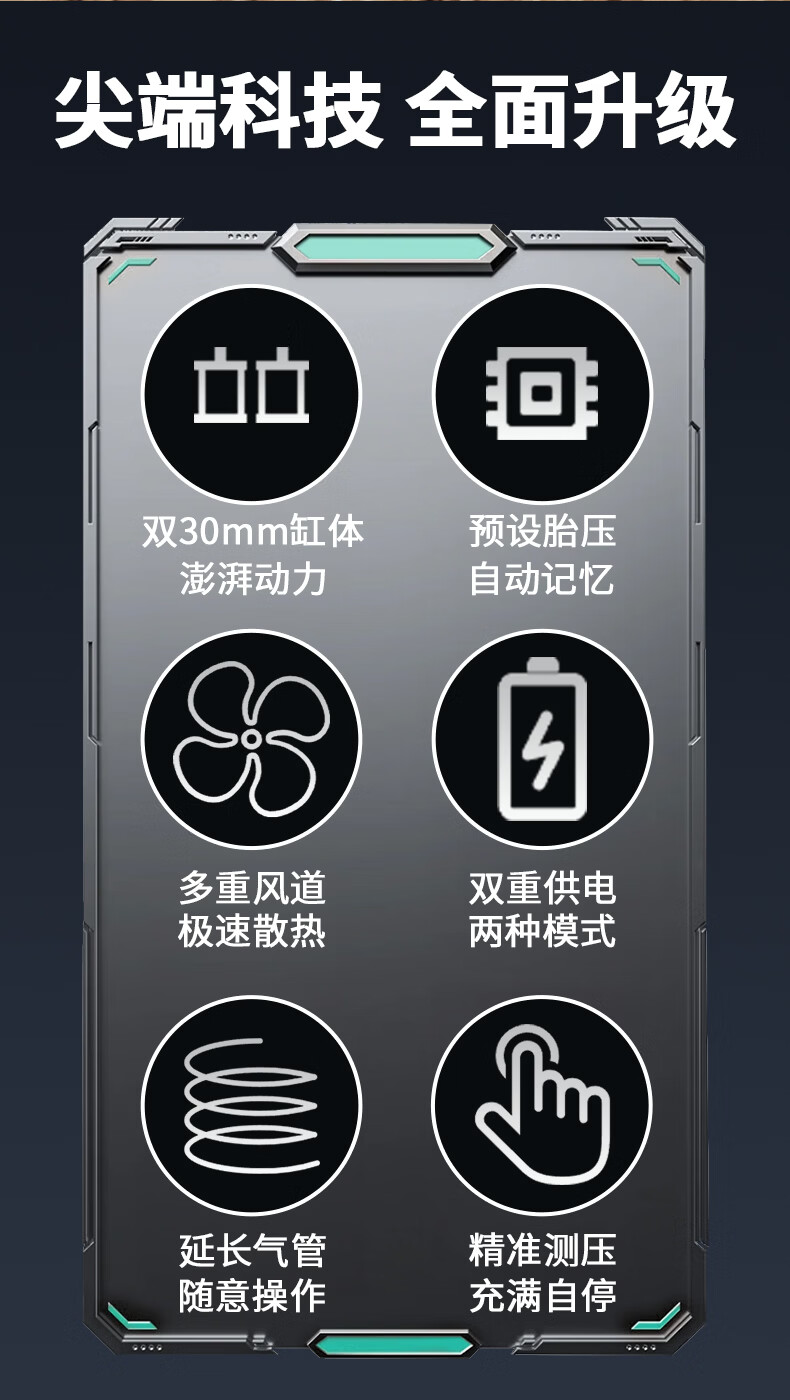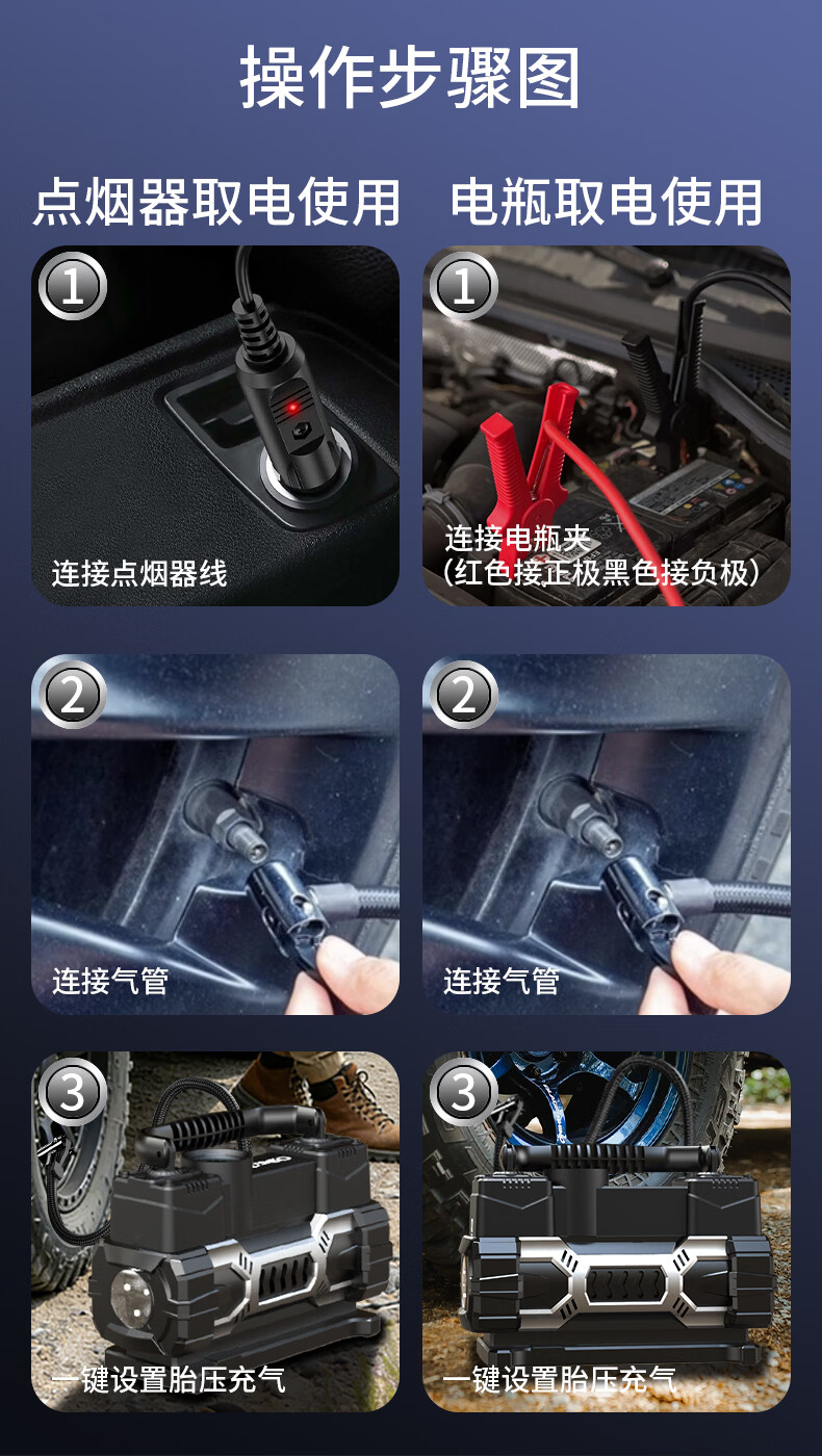 360车载充气泵总60缸合金双缸体搭电宝适用越野车轮胎自行车摩托车 【无线两用搭电款】总60缸至臻版搭电宝