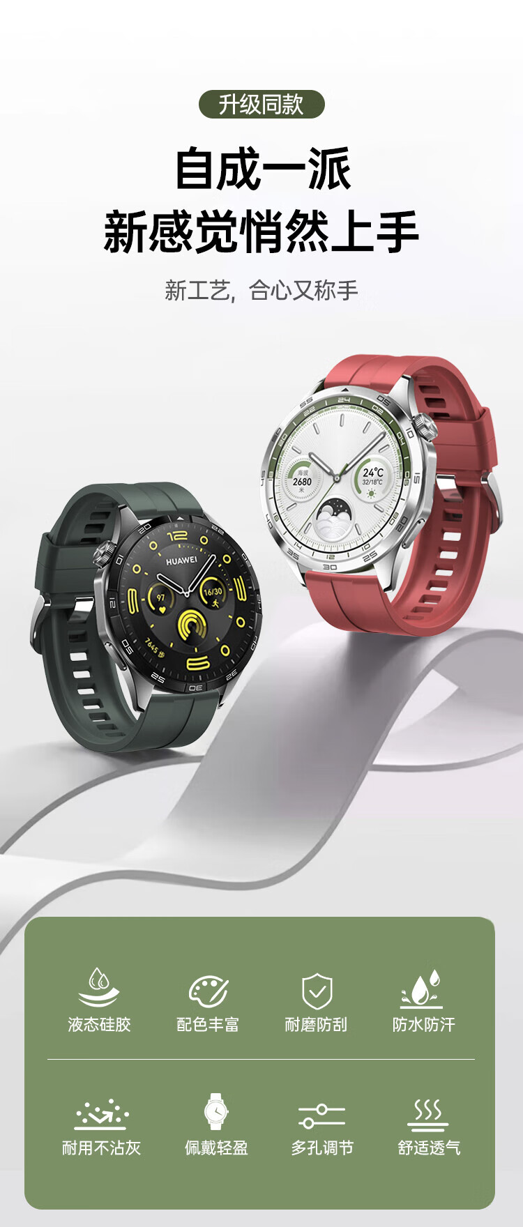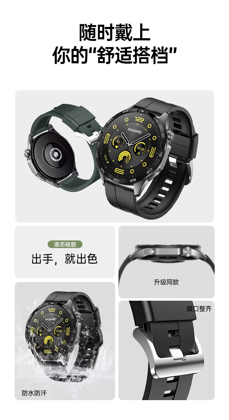 适用华为gt6Pro表带硅胶带20/22mm腕带夏季运动男女透气表带 极夜黑【格纹款】 【22mm】Watch3/Watch3PRO