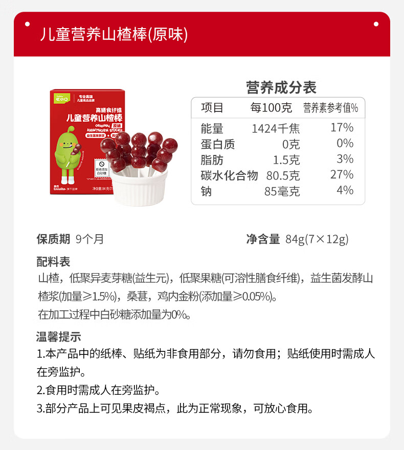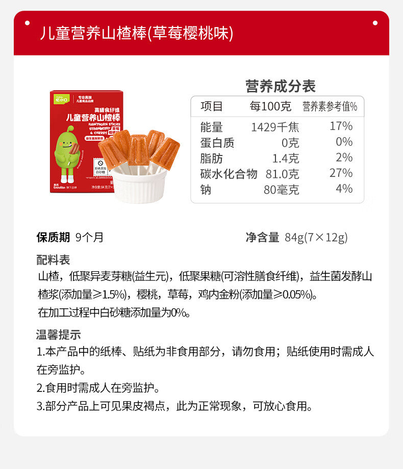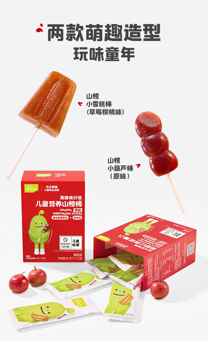 英氏(Engnice)忆小口儿童零食山楂棒棒糖葫芦雪糕造型84g 儿童山楂棒0白砂糖 【100%鲜果打浆】雪糕山楂棒*1盒尝鲜