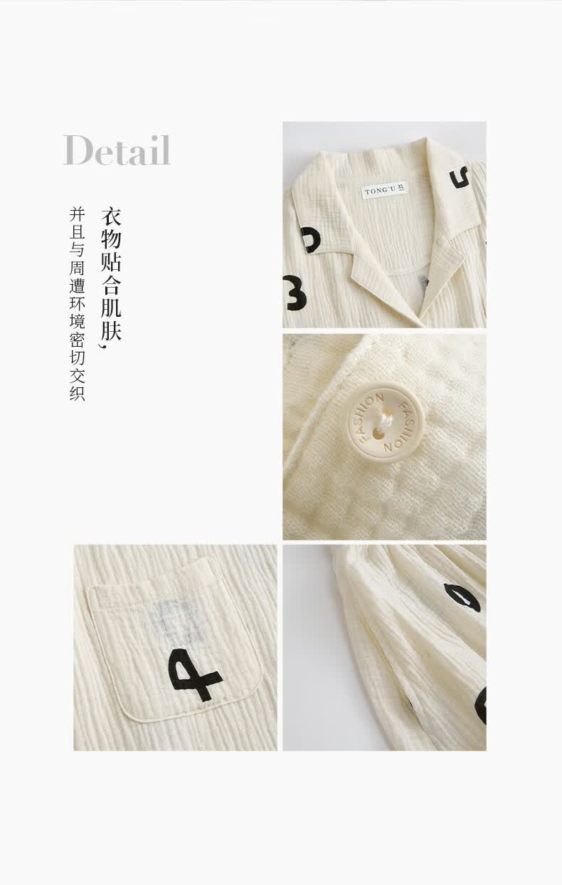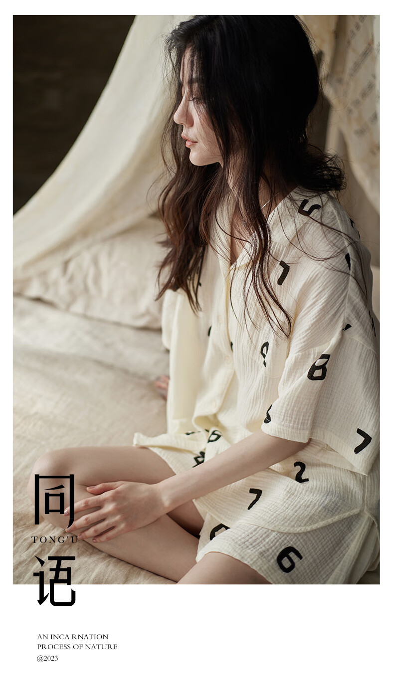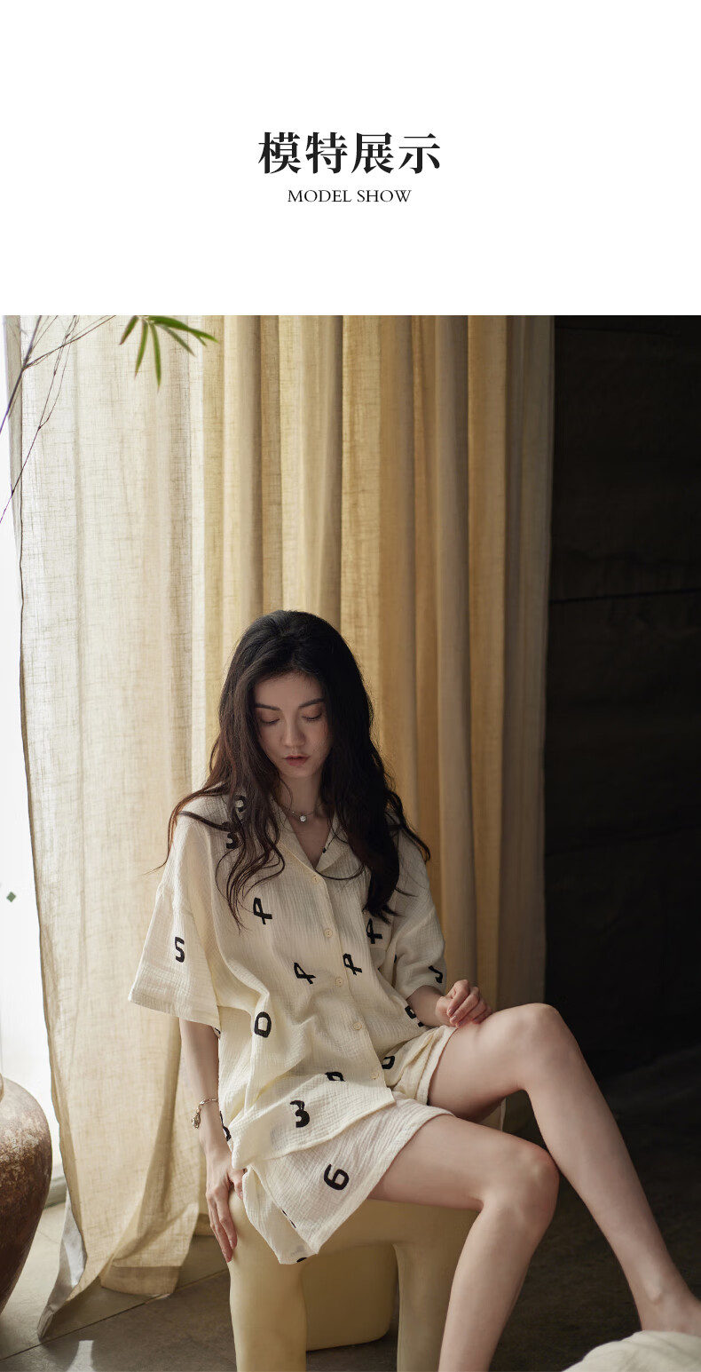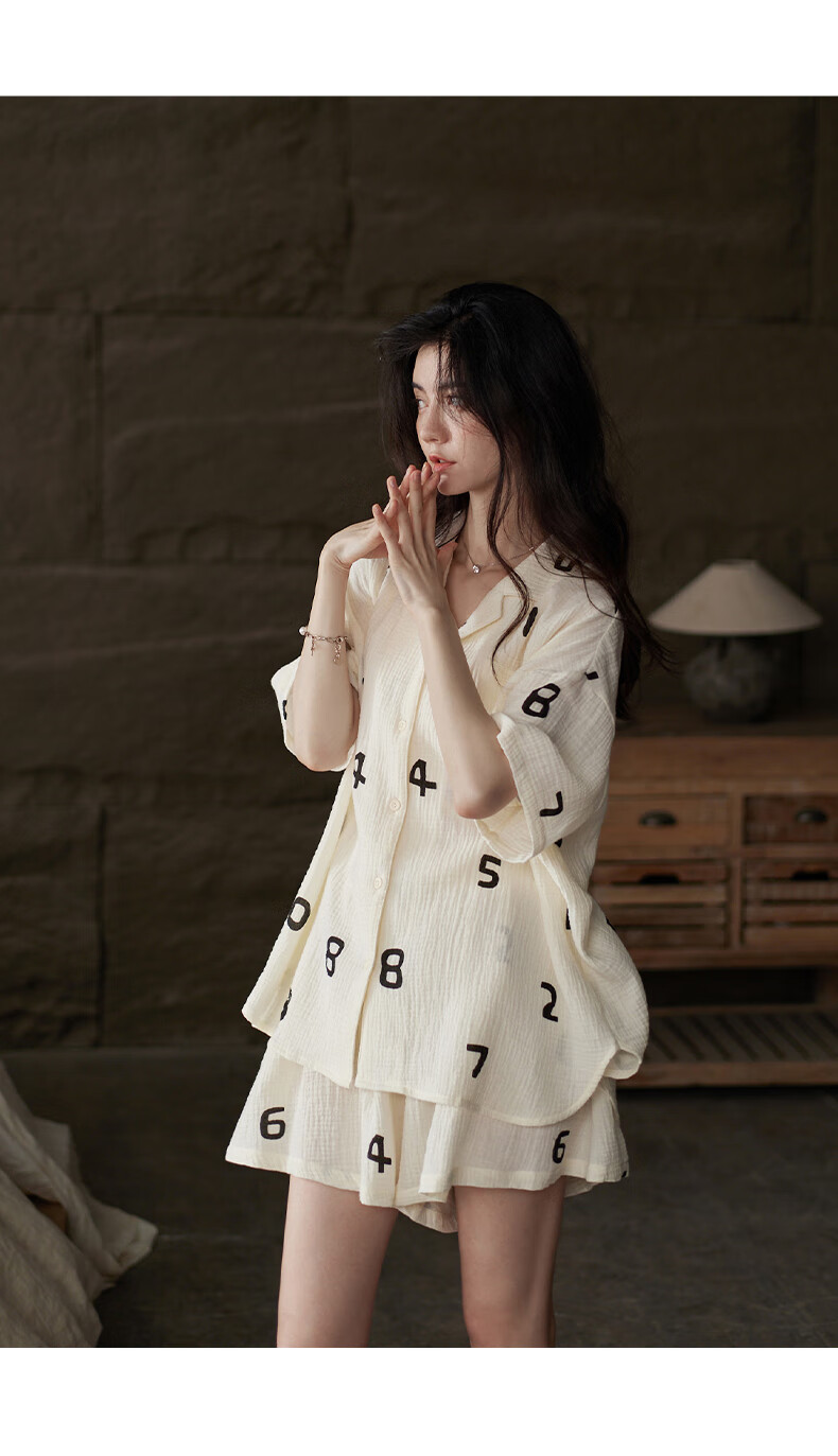同语睡衣女夏季纱布梭织纯棉短袖套装女士休闲城市轻户外家居服薄礼物 女士-Z3230-梭织棉 M