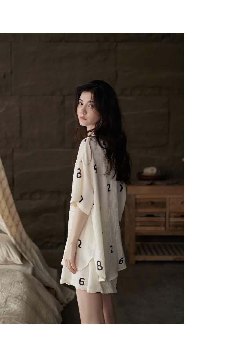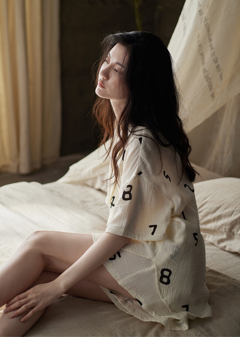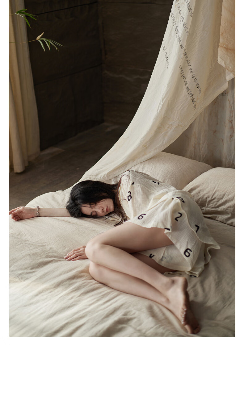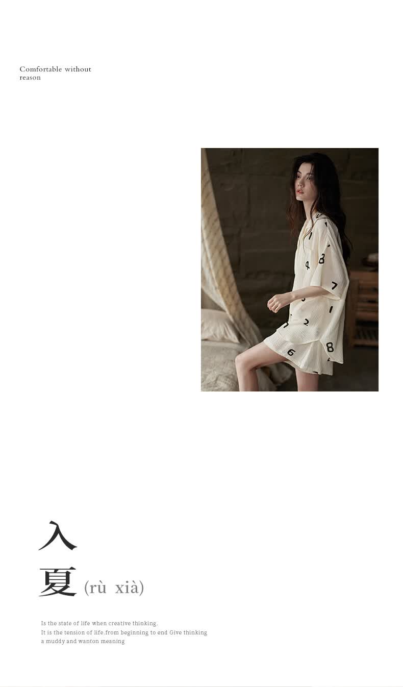 同语睡衣女夏季纱布梭织纯棉短袖套装女士休闲城市轻户外家居服薄礼物 女士-Z3230-梭织棉 M