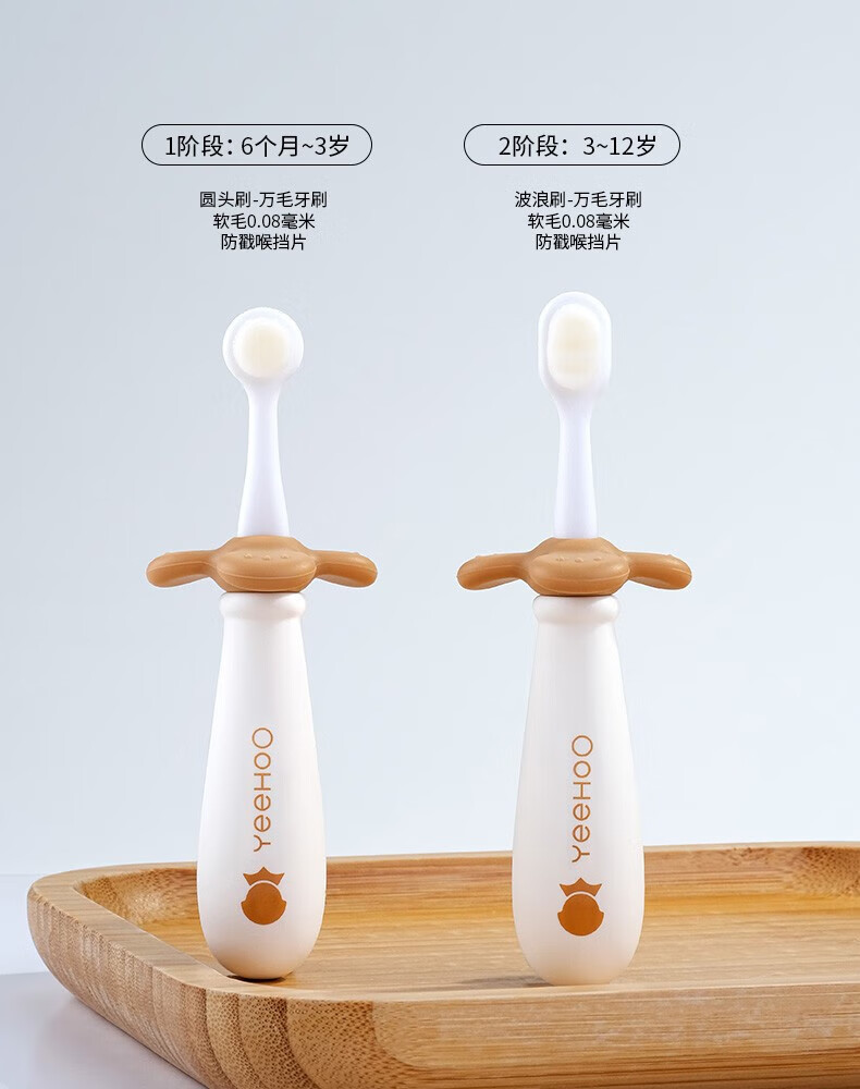 英氏(YEEHOO)宝宝牙刷儿童牙刷0到3岁婴幼儿1-12刷乳牙神器小支训练牙刷2支装