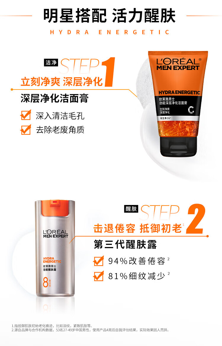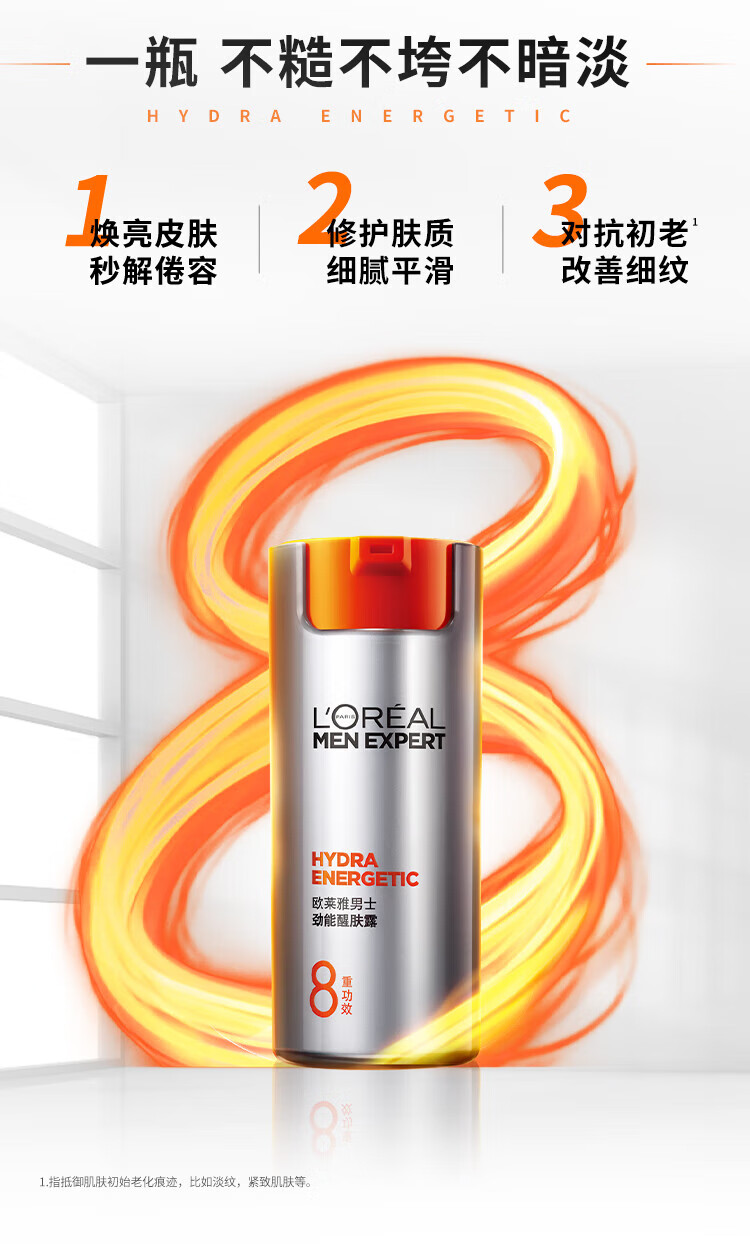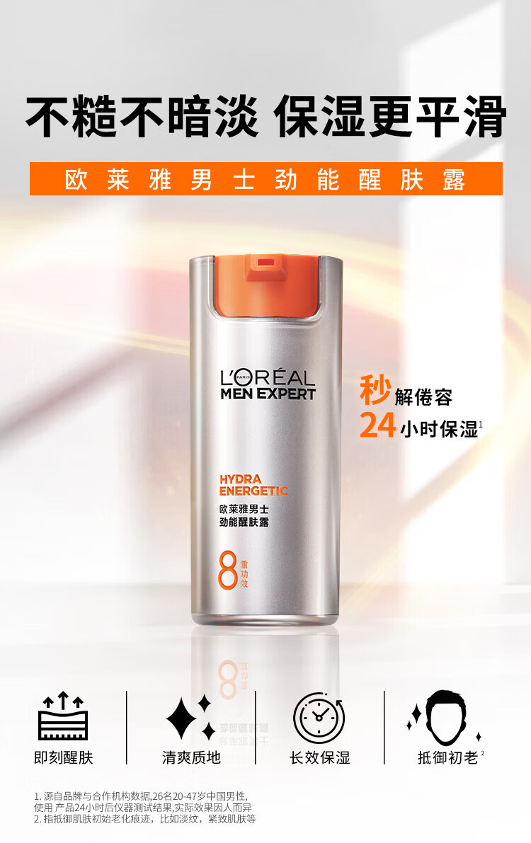欧莱雅(LOREAL)男士八重功效男士劲能醒肤露50g 8重功效保湿平滑秋冬