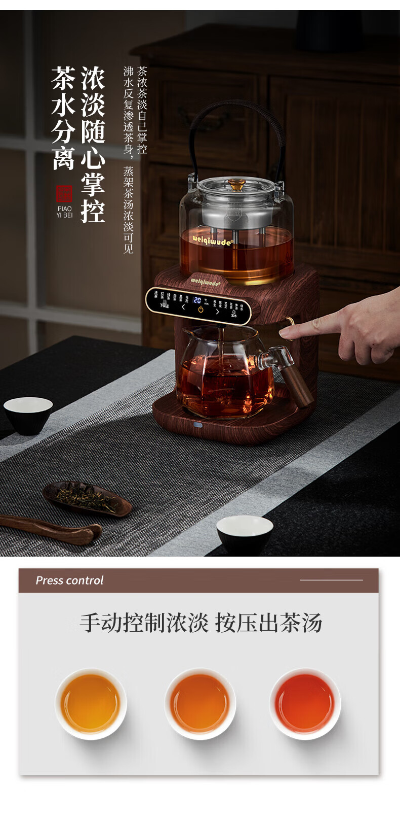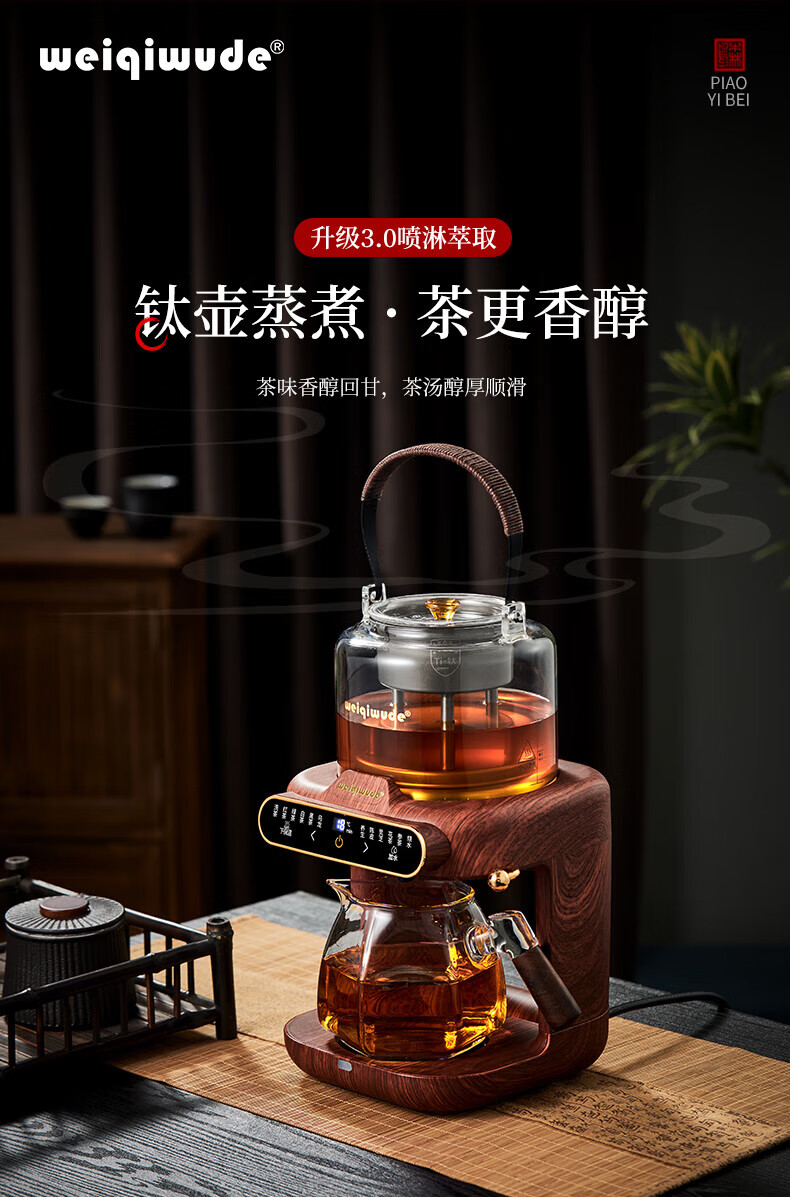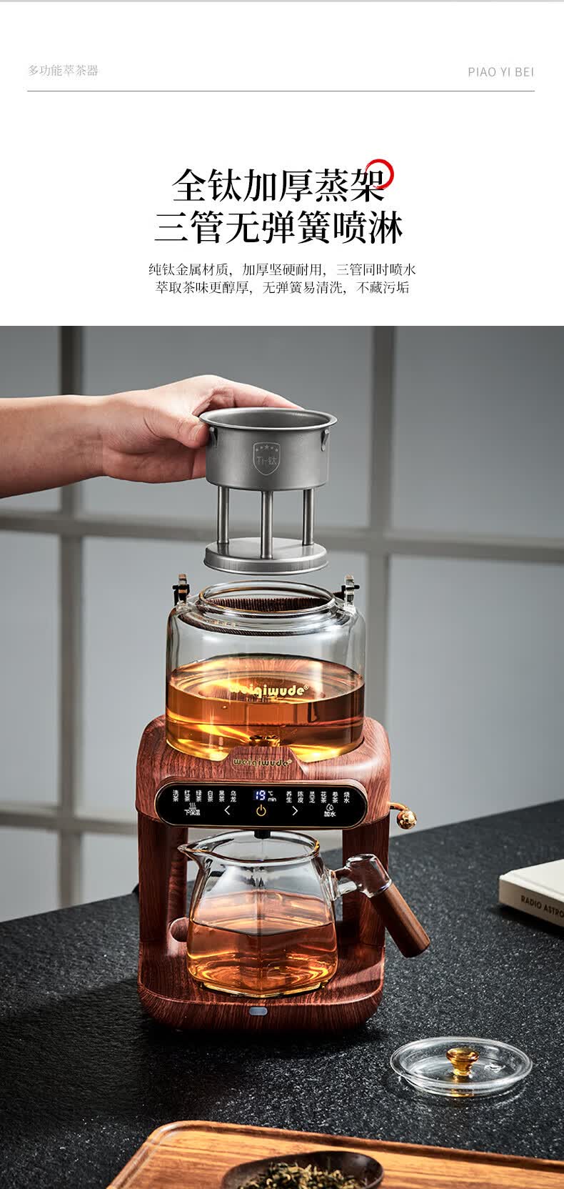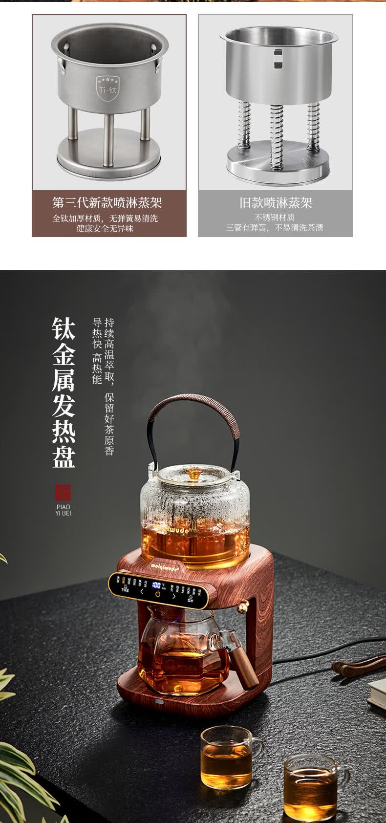 WEIQIWUDE韦奇伍德煮茶壶养生壶萃茶机蒸汽煮茶器家用喷淋自动上水办公室电茶炉蒸茶器泡茶壶商务送礼礼物 【纯钛款】钛发热盘+茶滤/一键上水 檀木色