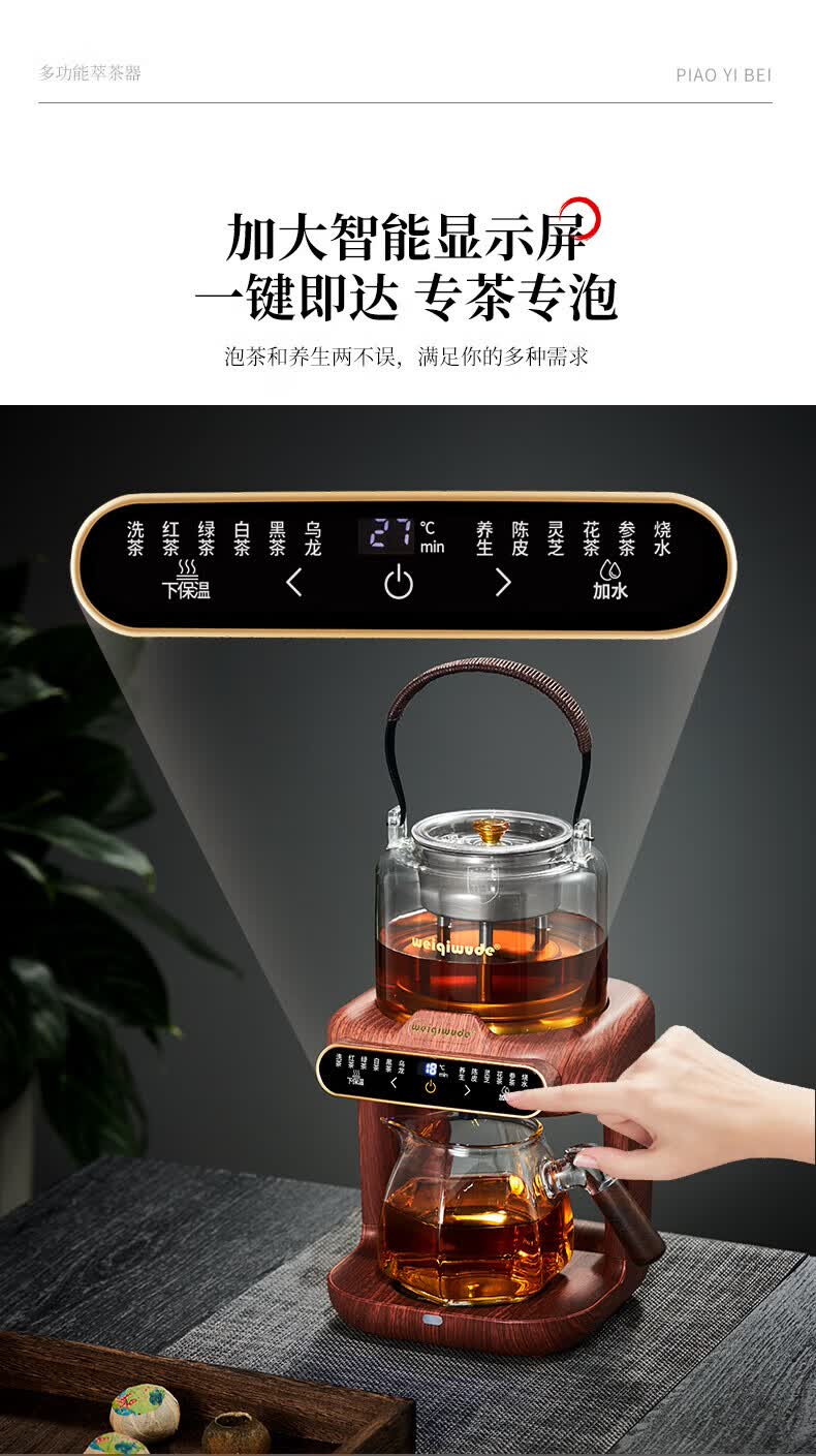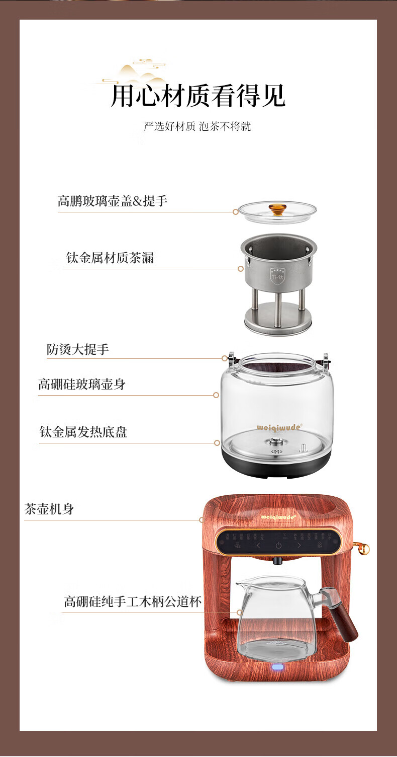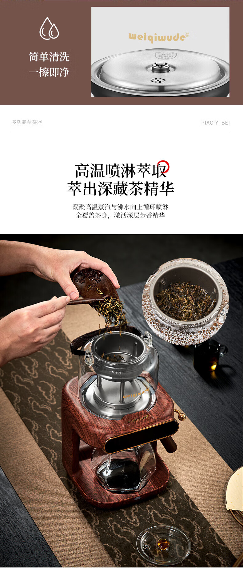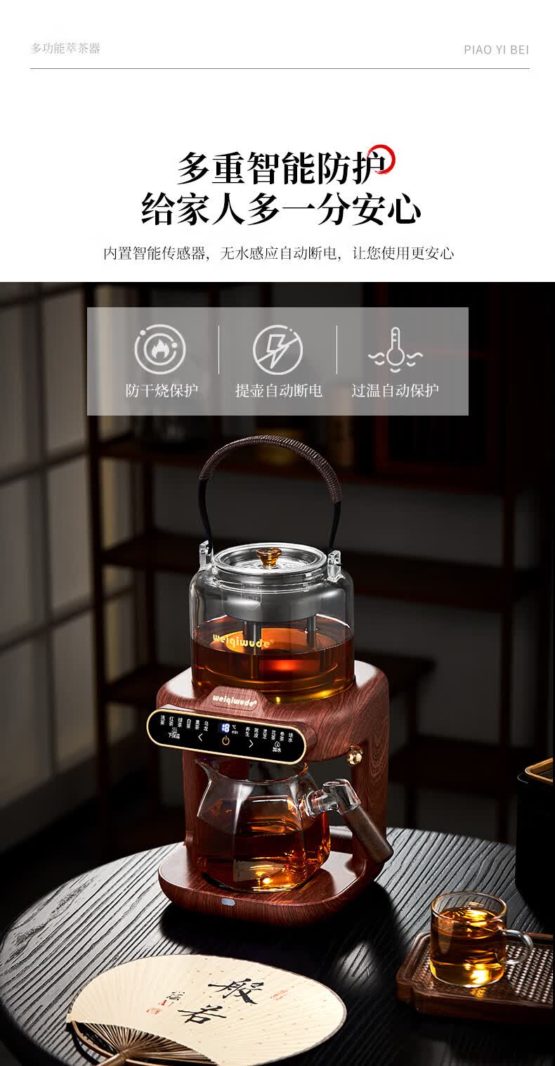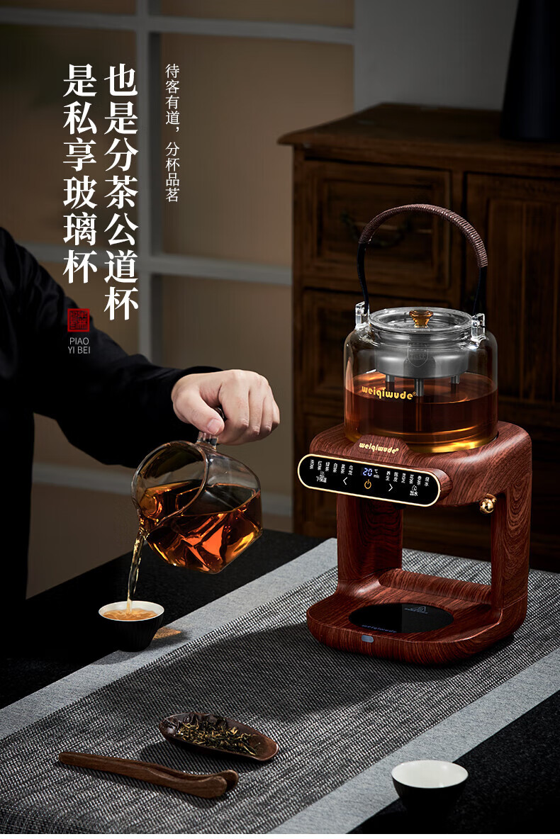 WEIQIWUDE韦奇伍德煮茶壶养生壶萃茶机蒸汽煮茶器家用喷淋自动上水办公室电茶炉蒸茶器泡茶壶商务送礼礼物 【纯钛款】钛发热盘+茶滤/一键上水 檀木色