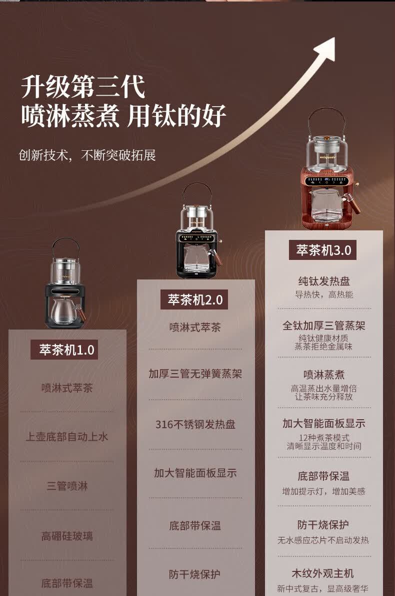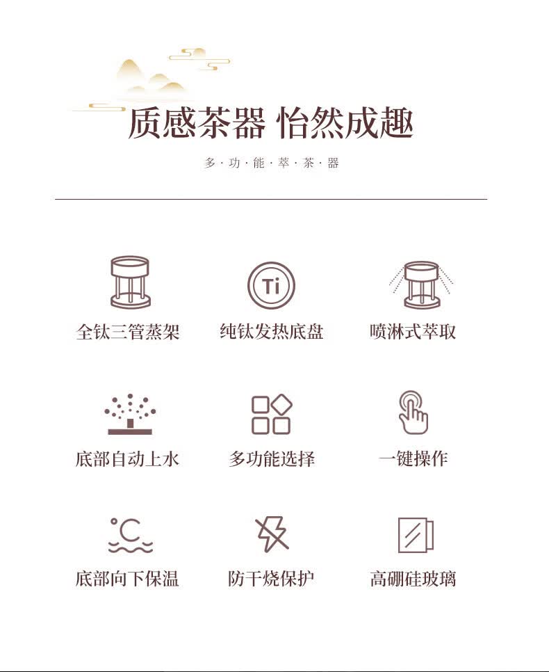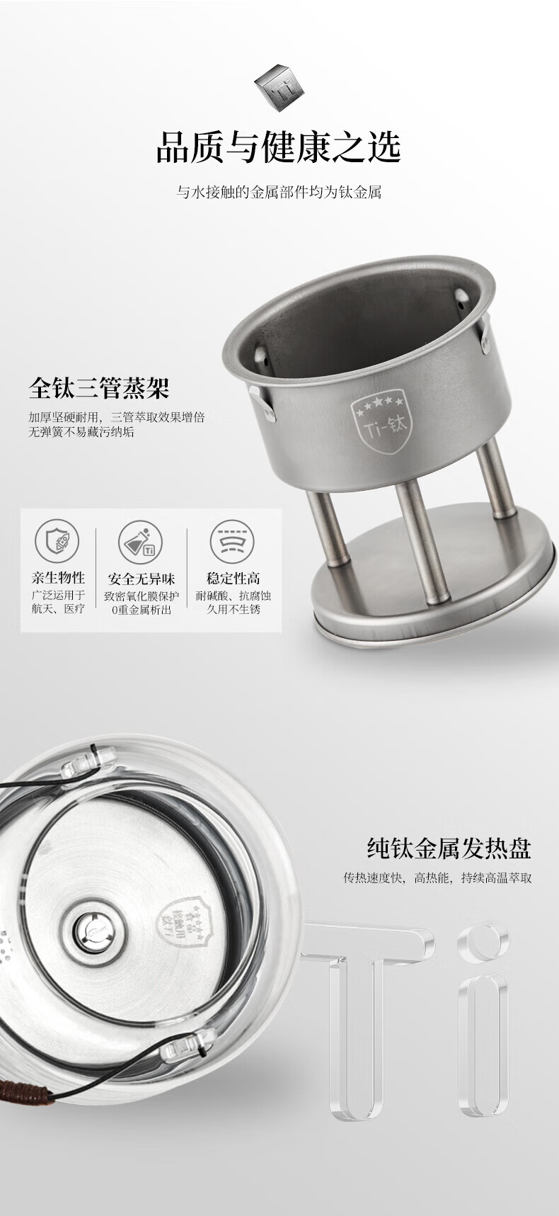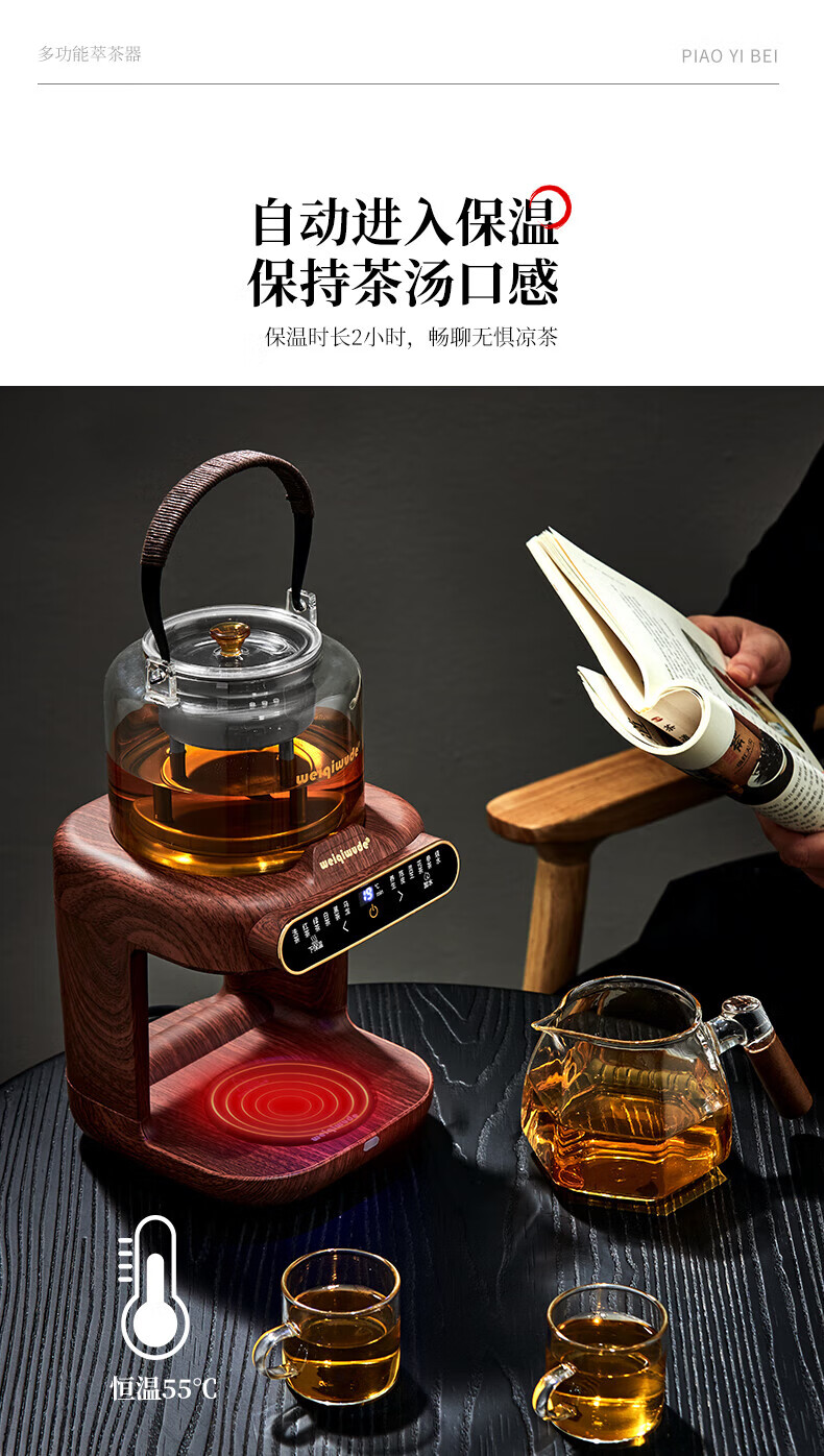 WEIQIWUDE韦奇伍德煮茶壶养生壶萃茶机蒸汽煮茶器家用喷淋自动上水办公室电茶炉蒸茶器泡茶壶商务送礼礼物 【纯钛款】钛发热盘+茶滤/一键上水 檀木色