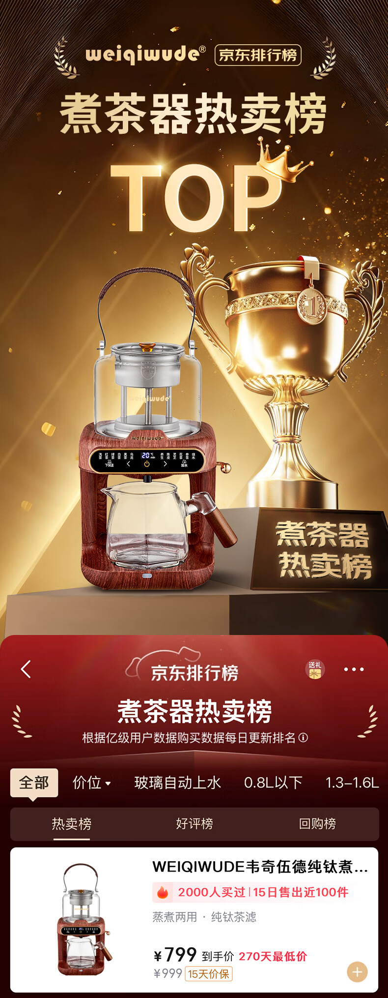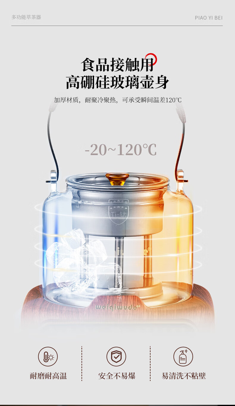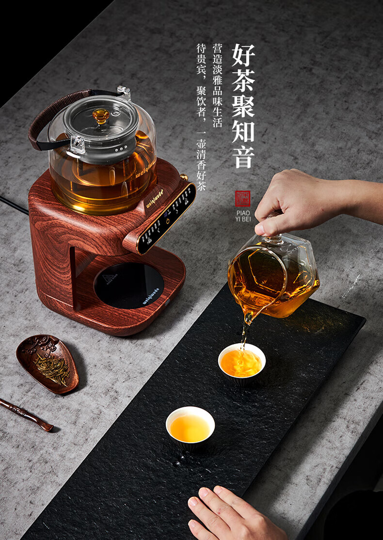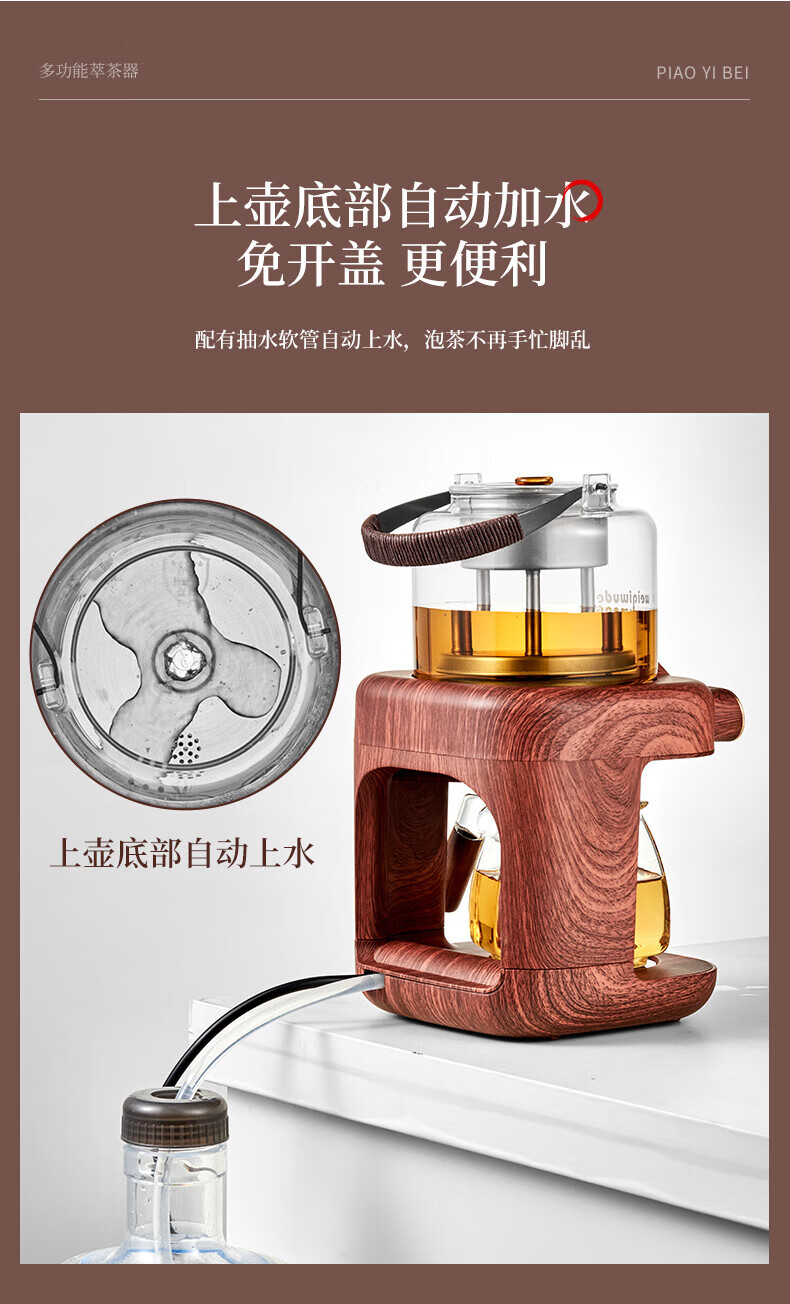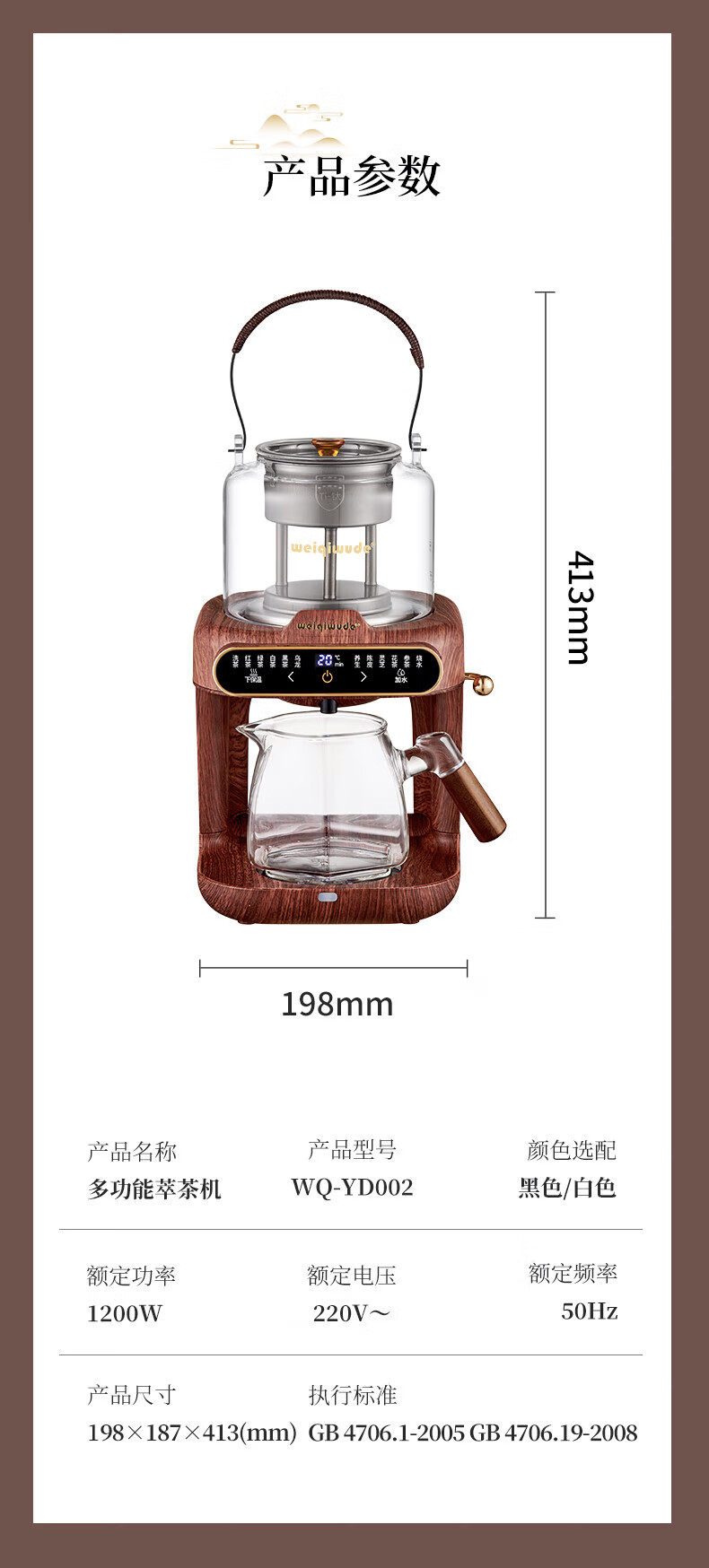 WEIQIWUDE韦奇伍德煮茶壶养生壶萃茶机蒸汽煮茶器家用喷淋自动上水办公室电茶炉蒸茶器泡茶壶商务送礼礼物 【纯钛款】钛发热盘+茶滤/一键上水 檀木色
