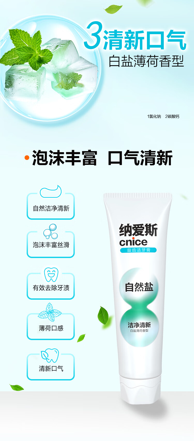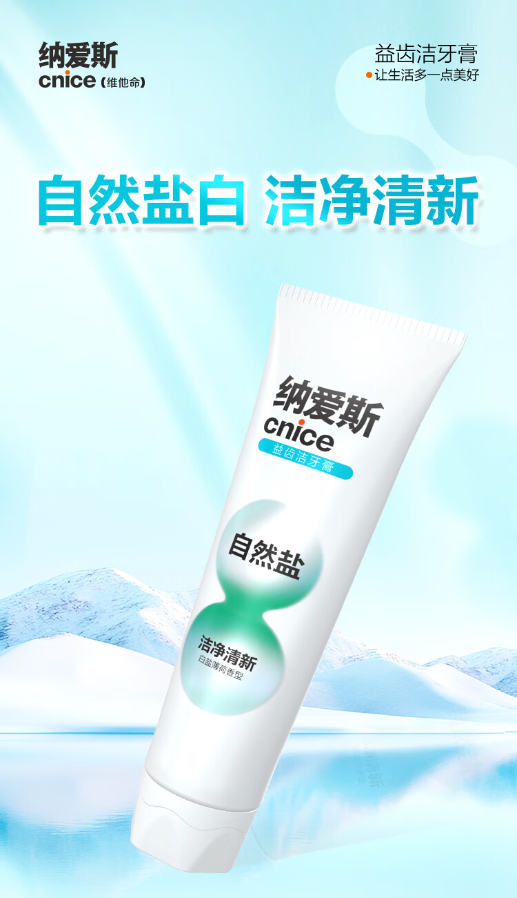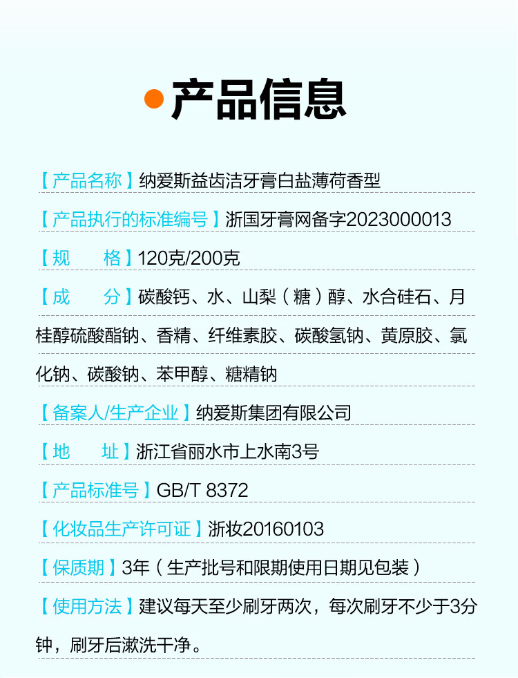 纳爱斯牙膏成人洁白去牙渍烟渍软垢牙龈护理下火护龈成人盐白牙膏200g