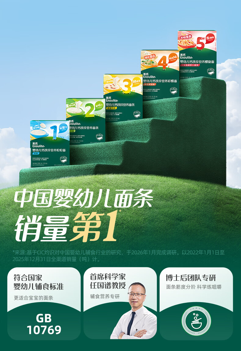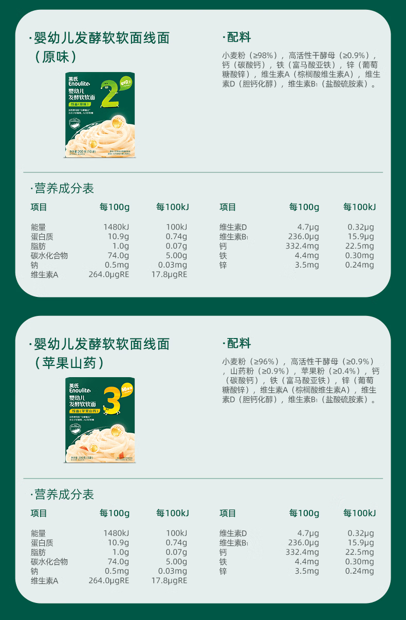 英氏宝宝面条 6个月婴儿面条婴幼儿童钙铁锌营养面条搭配食品宝宝辅食 线面4盒4口味组合装800g