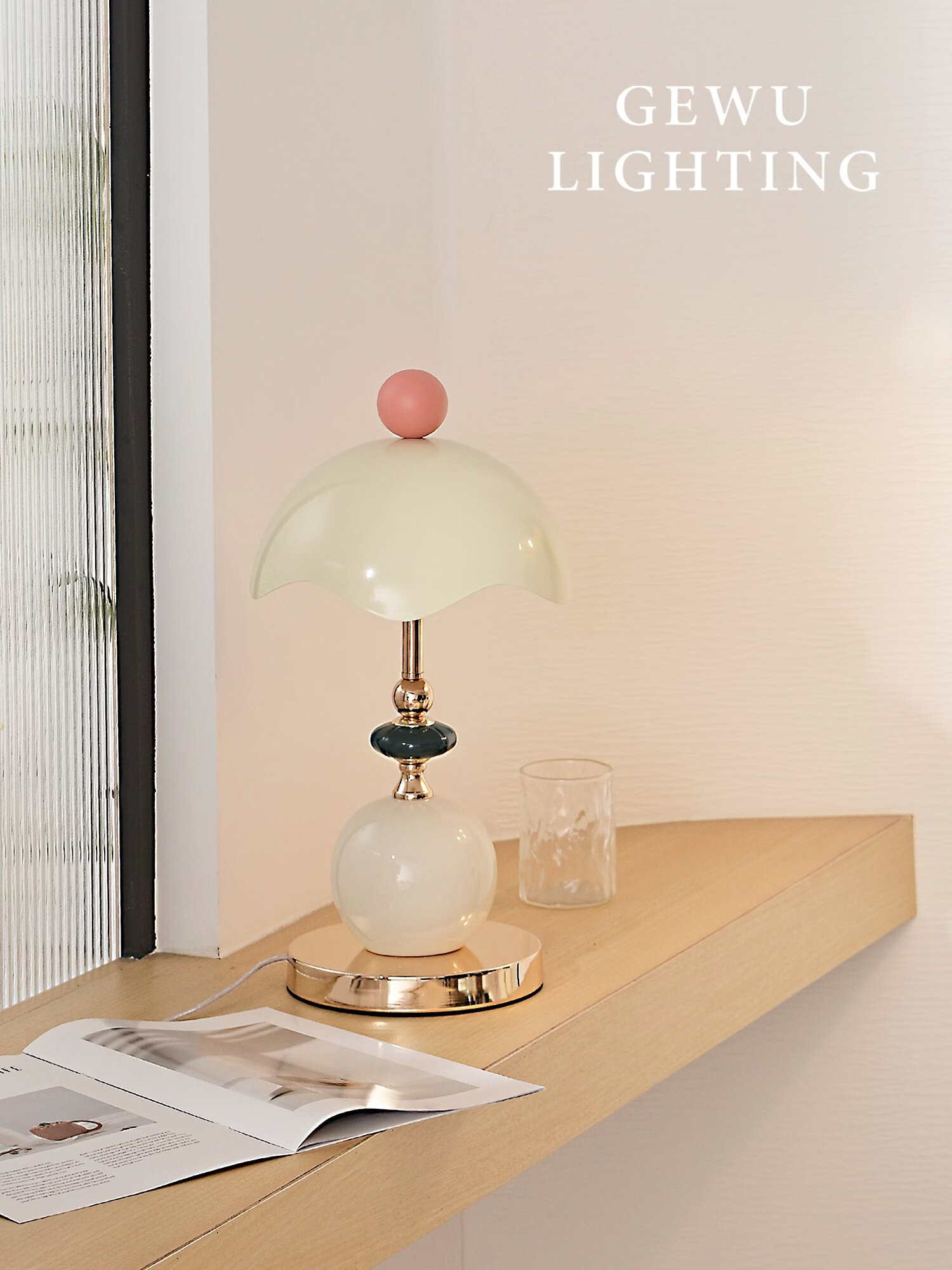 比达迩GEWU 意大利设计师法式蛋壳台灯卧室高级轻奢床头主卧氛围灯礼物 少女粉【三色调光】