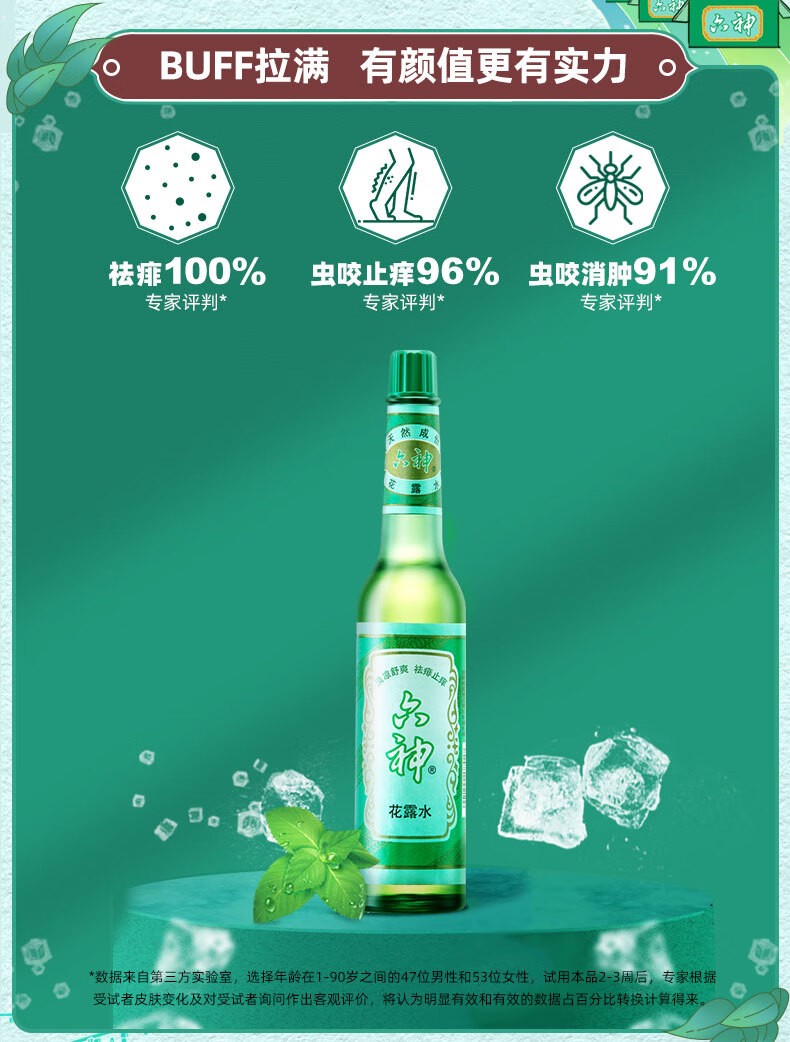 六神花露水195ml 经典老式玻璃瓶 清新花香 驱虫水防蚊水喷雾家庭装 经典花露水95ml*1瓶