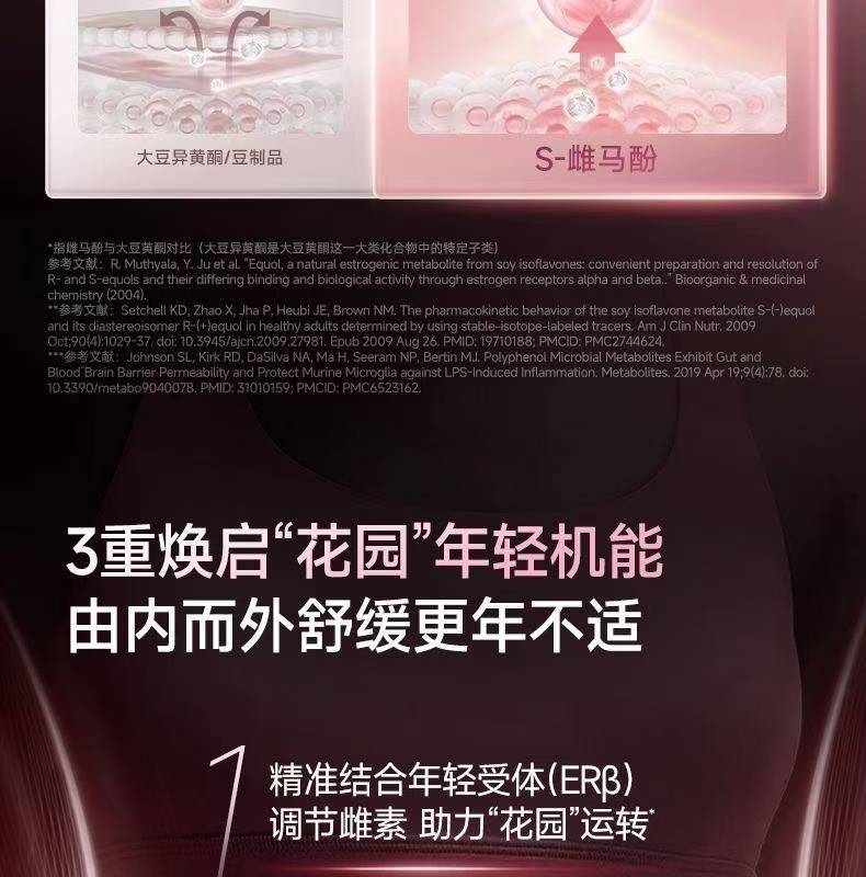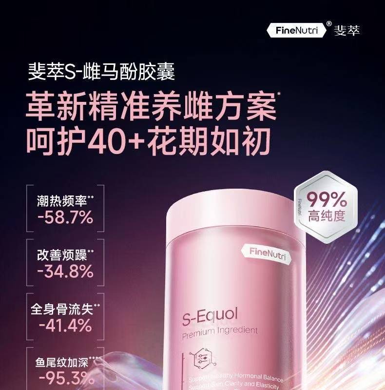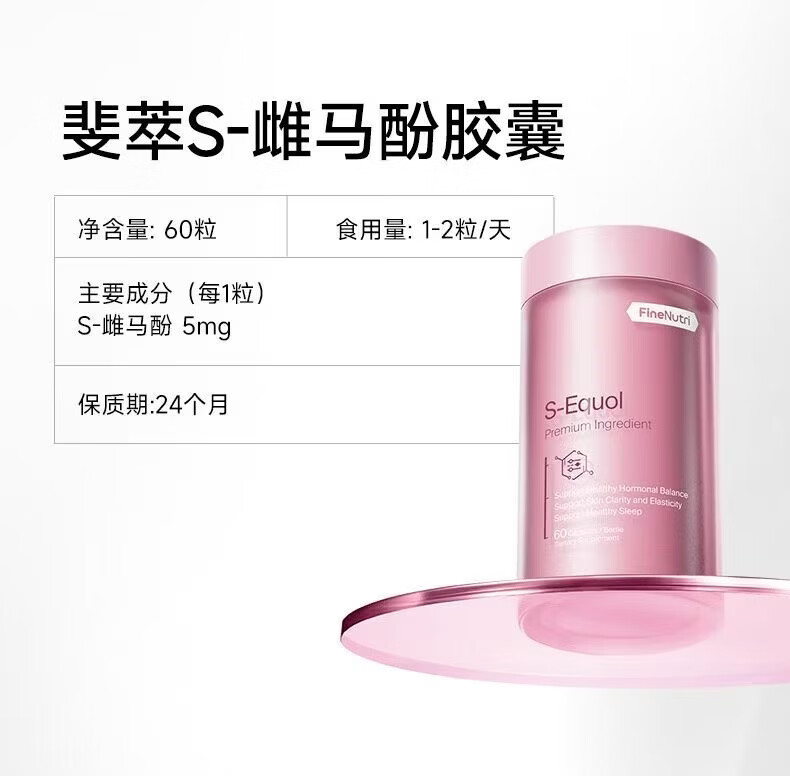 FineNutri斐萃小粉瓶S-雌马酚女性内调雌激素补充更年期调理早更非大豆异黄 全面调控 卵巢呵护 60粒*3瓶