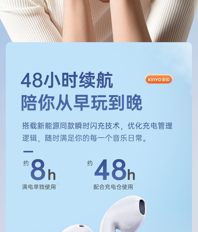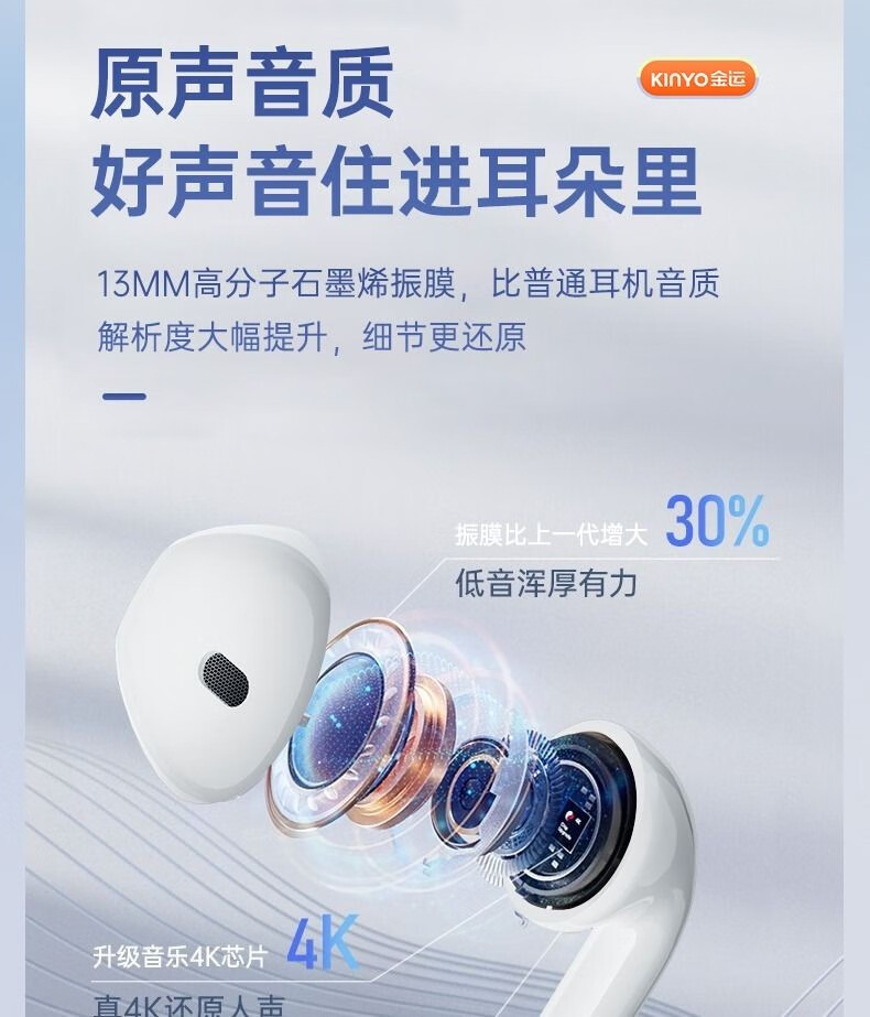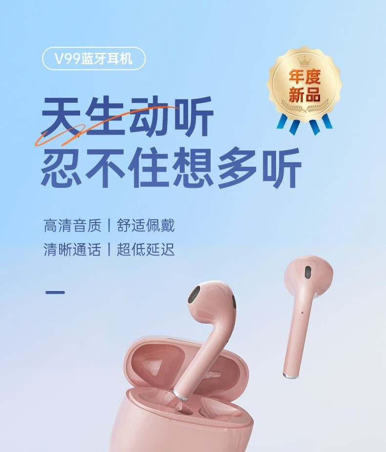 金运V99蓝牙耳机 真无线半入耳式降噪通话音乐游戏低延迟运动跑步长续航蓝牙5.3手机通用 奶油白【百元音质无对手】性价比