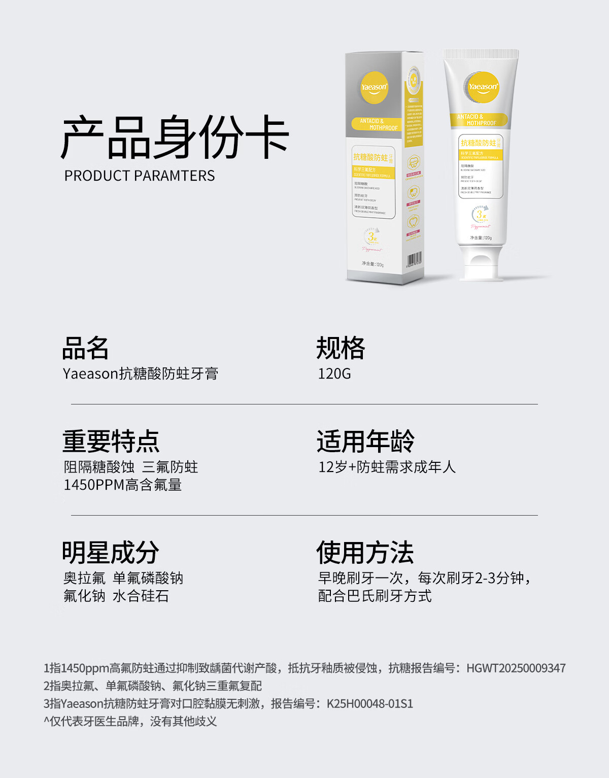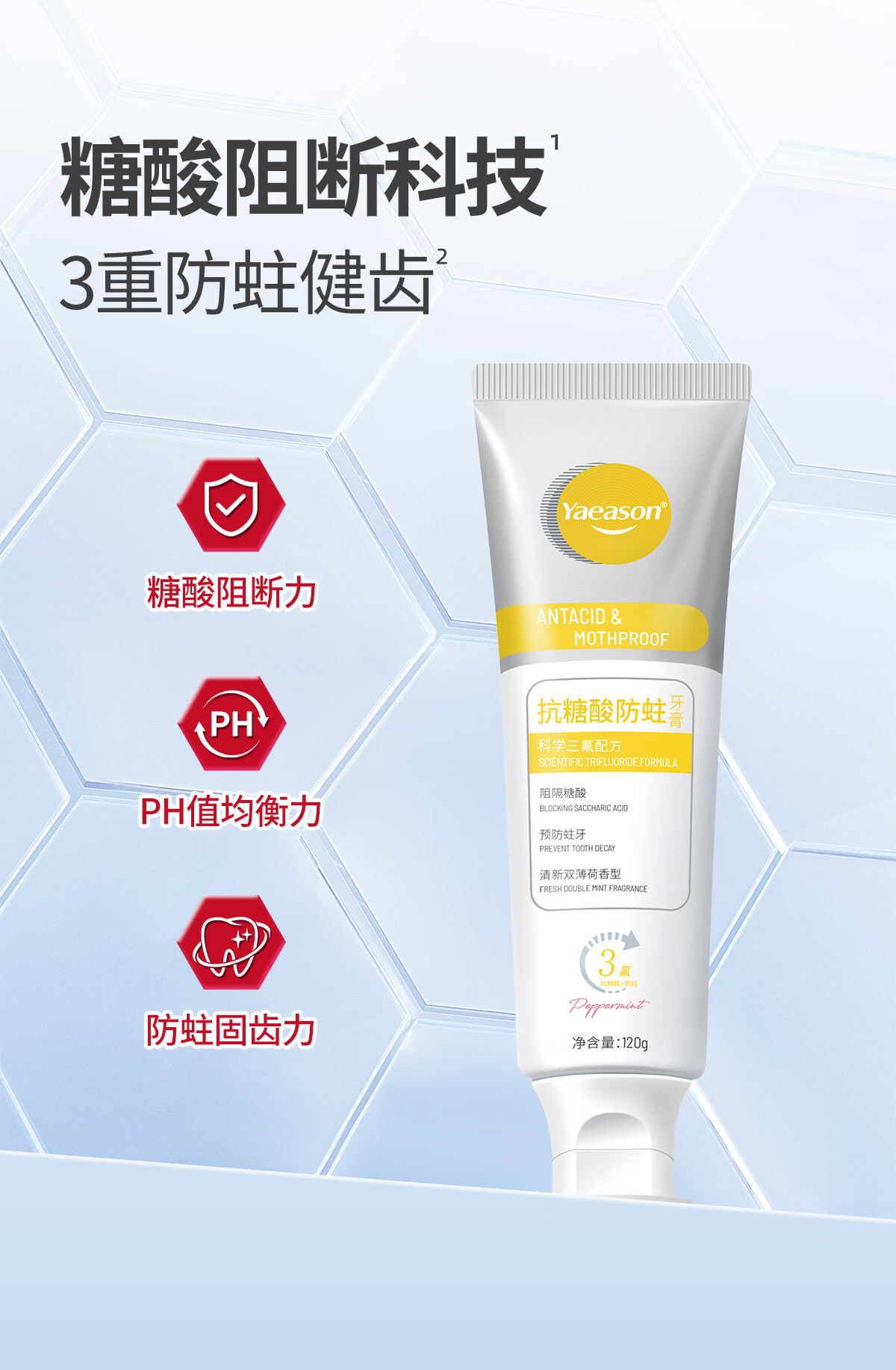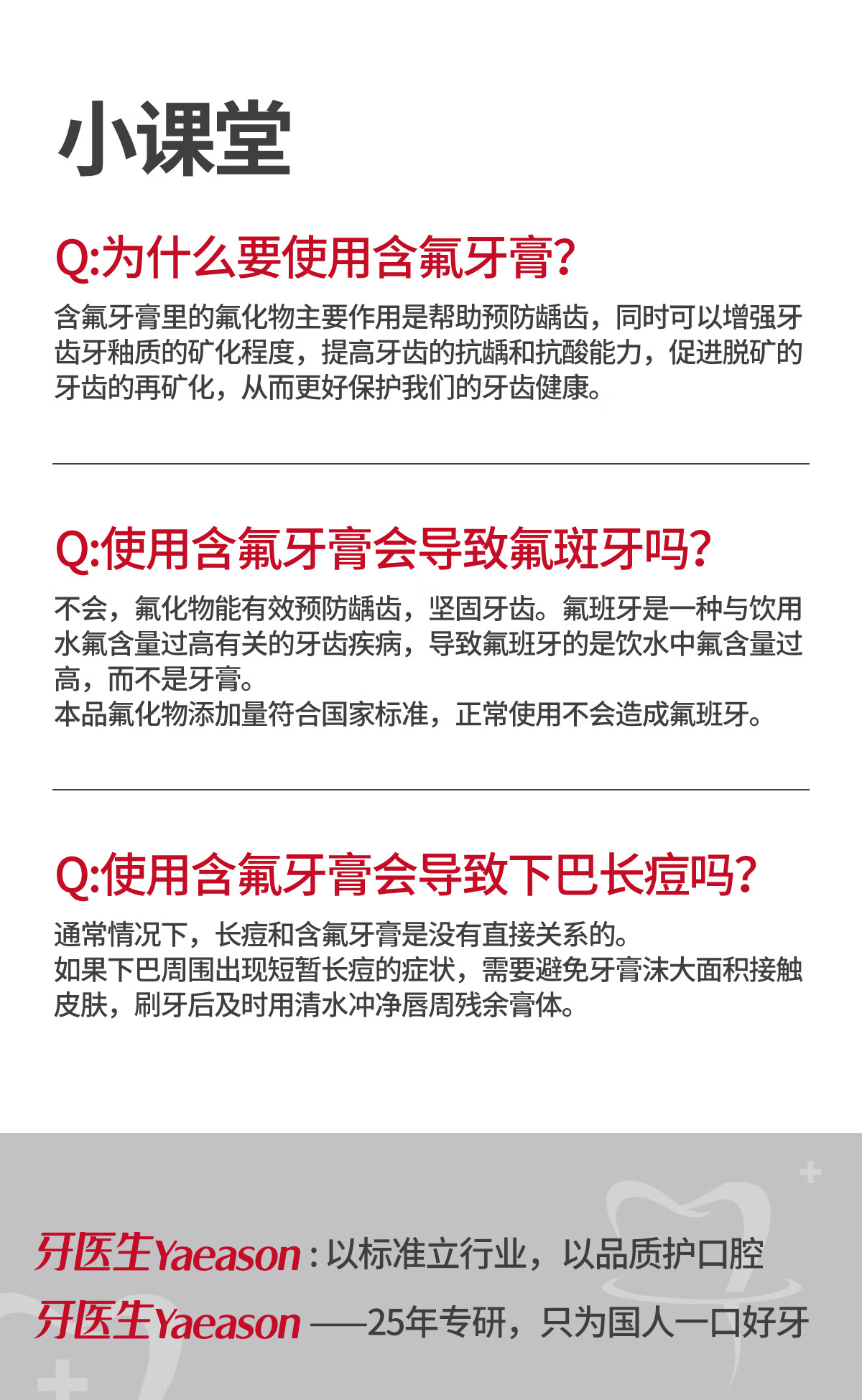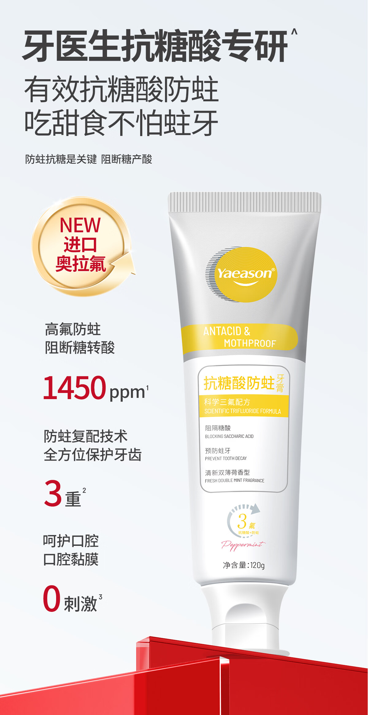 牙医生(Yaeason)高含氟防蛀牙膏德国进口奥拉氟强健牙釉质男女学生热销榜抗糖防龋 【推荐装】防蛀抗糖牙膏 120g*2支 甜食蛀牙轻松应对 高含量1450ppm三重氟配方