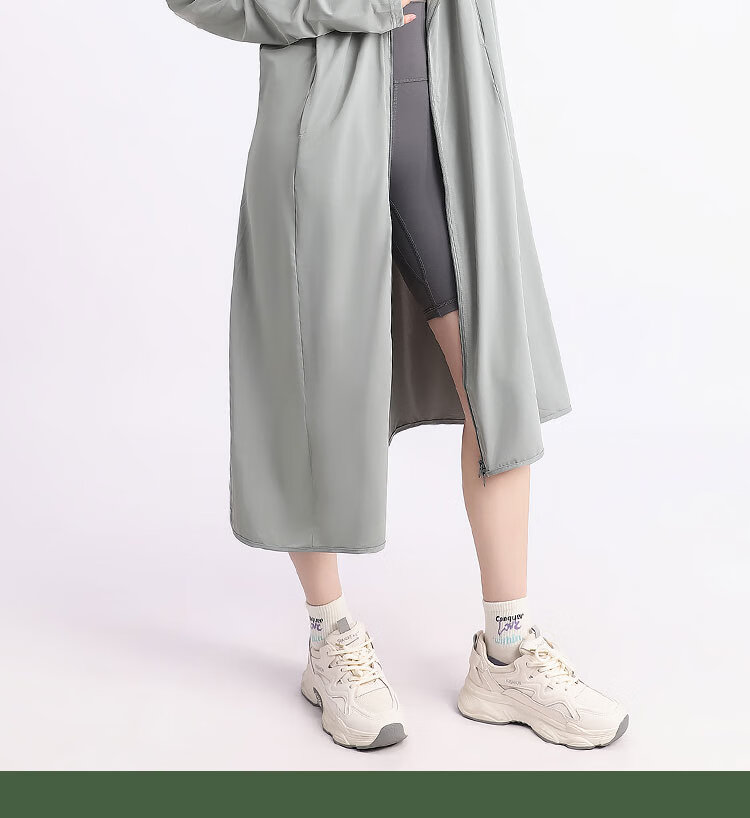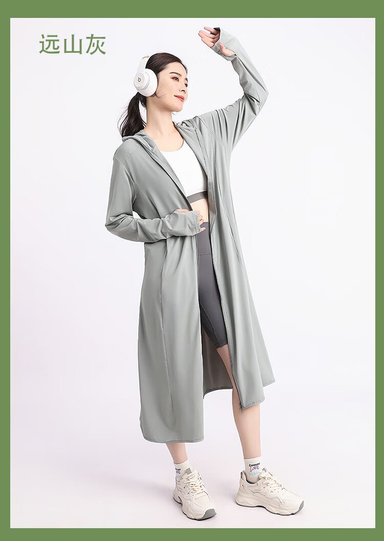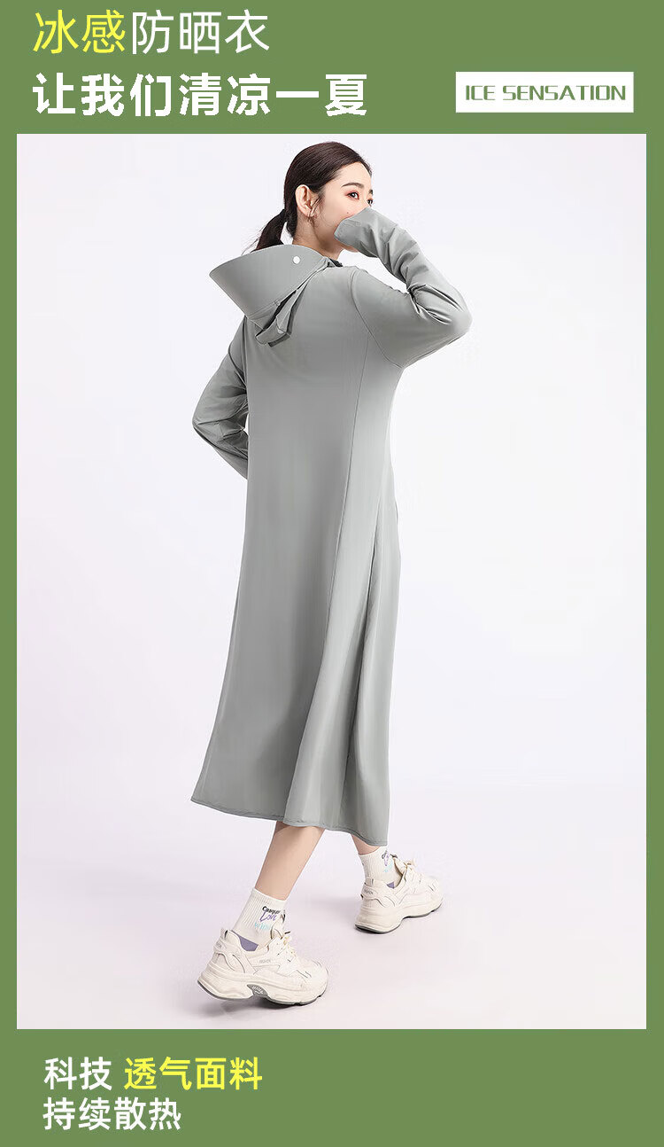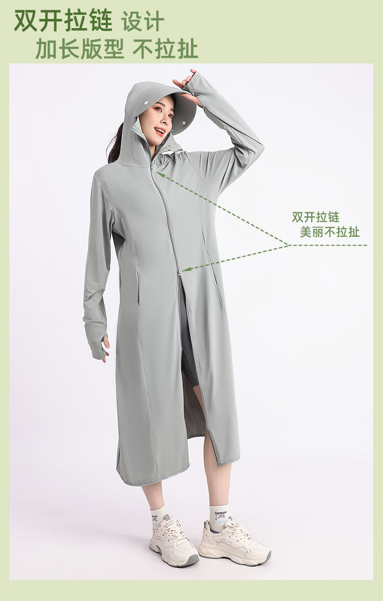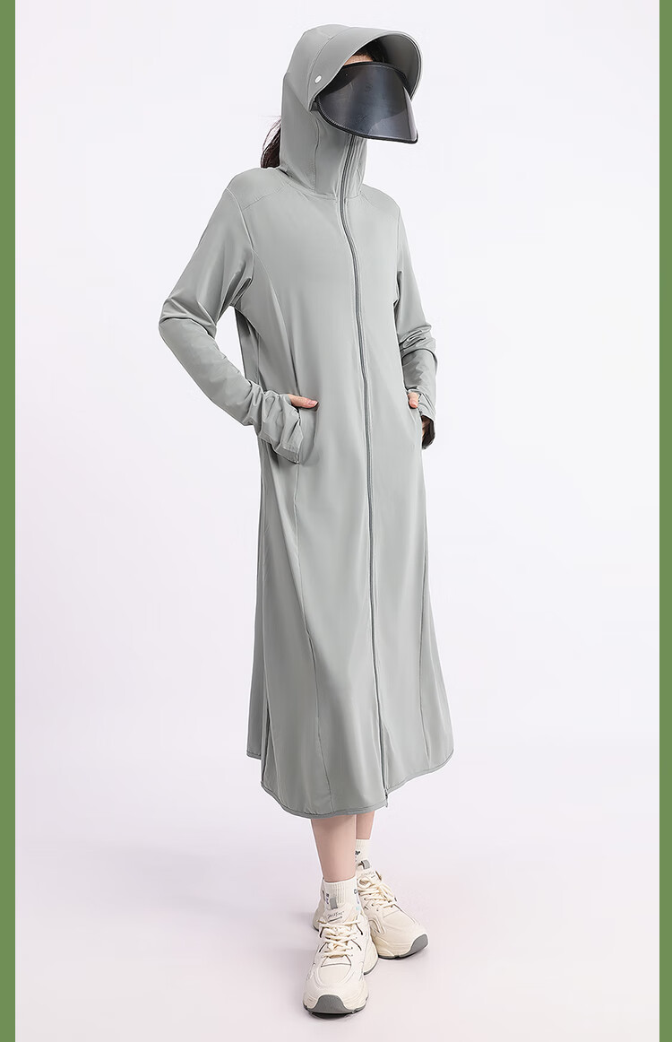 梦多福电动小车防晒衣长款女夏季过膝全身冰丝透气薄款宽松长袖外套遮阳 浅灰色(加大帽檐)适合80-130斤 均码 (防晒衣连帽总衣长150cm)