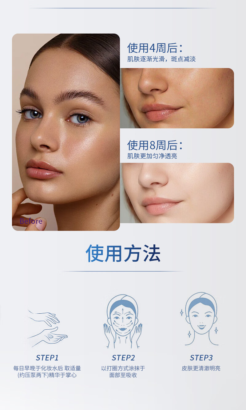 烟酰胺精华液美白祛斑淡化斑点去痘印去黄提亮改善暗沉熊果苷原液 买二送一【3瓶*疗程装:90ml】