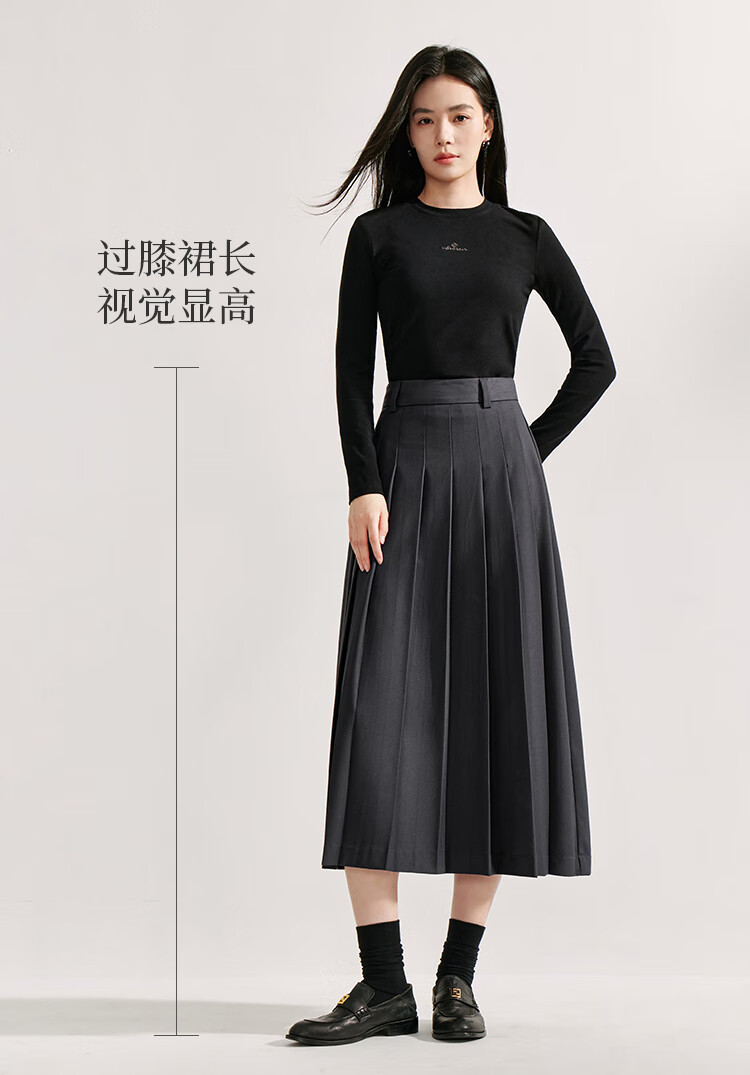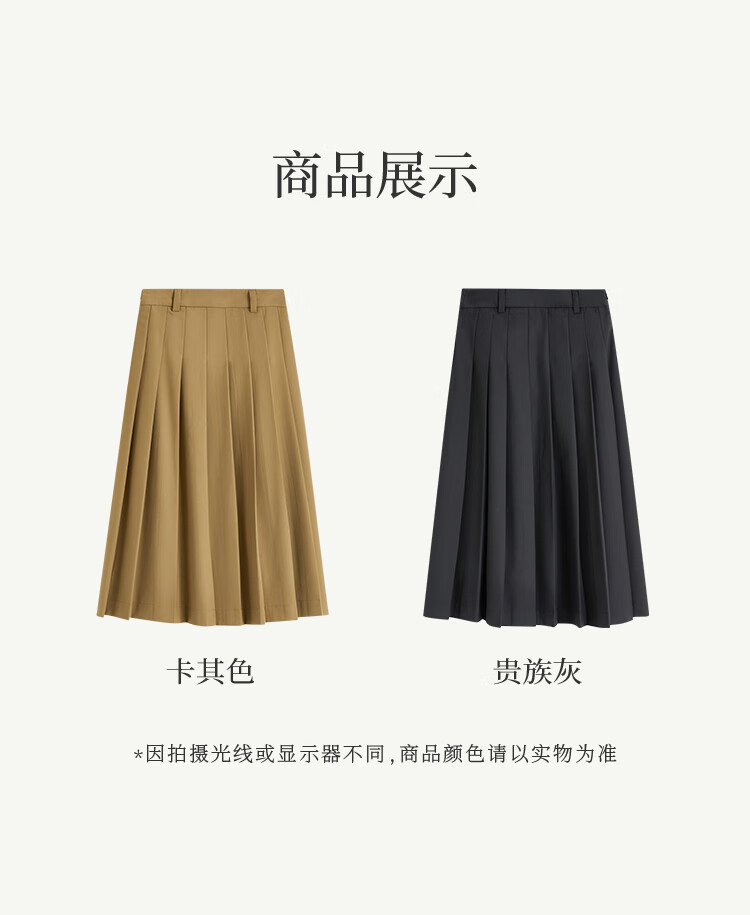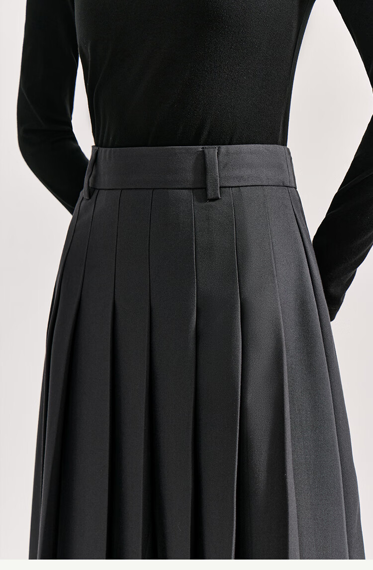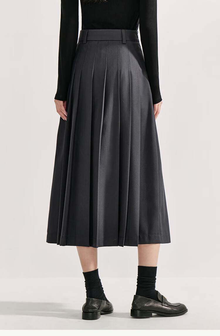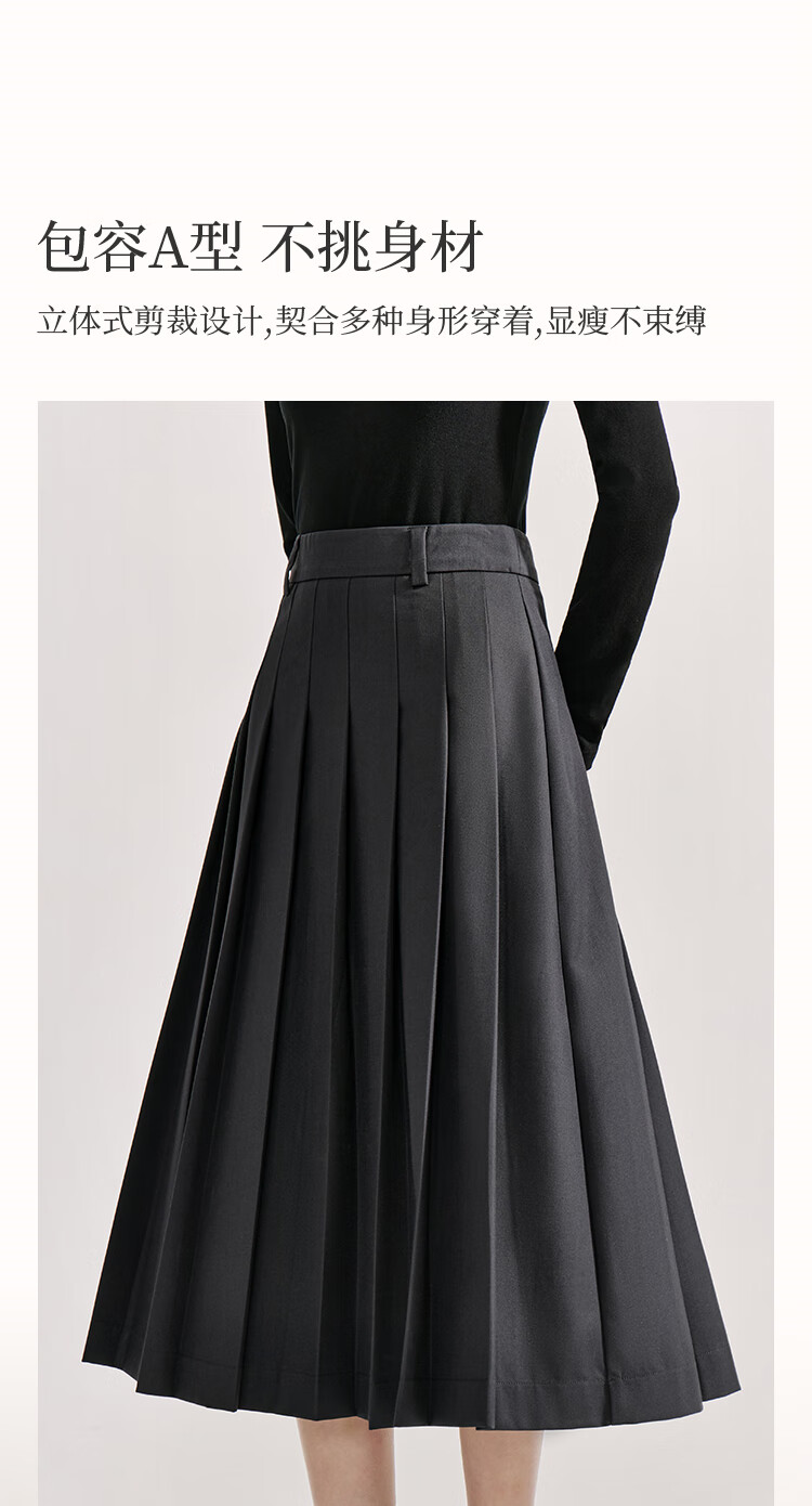 茵曼 格雷系百褶半身裙秋季女装经典A字宽松遮胯显瘦长裙 贵族灰 XL