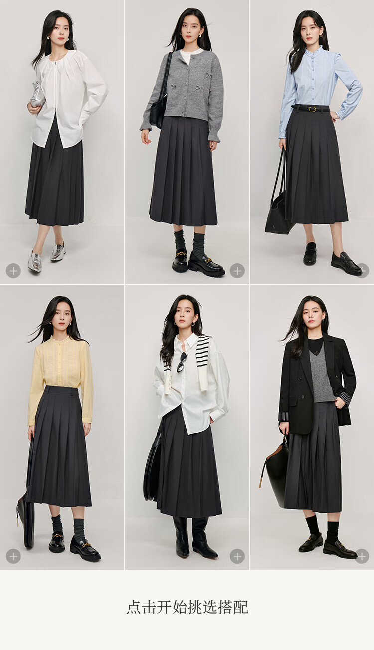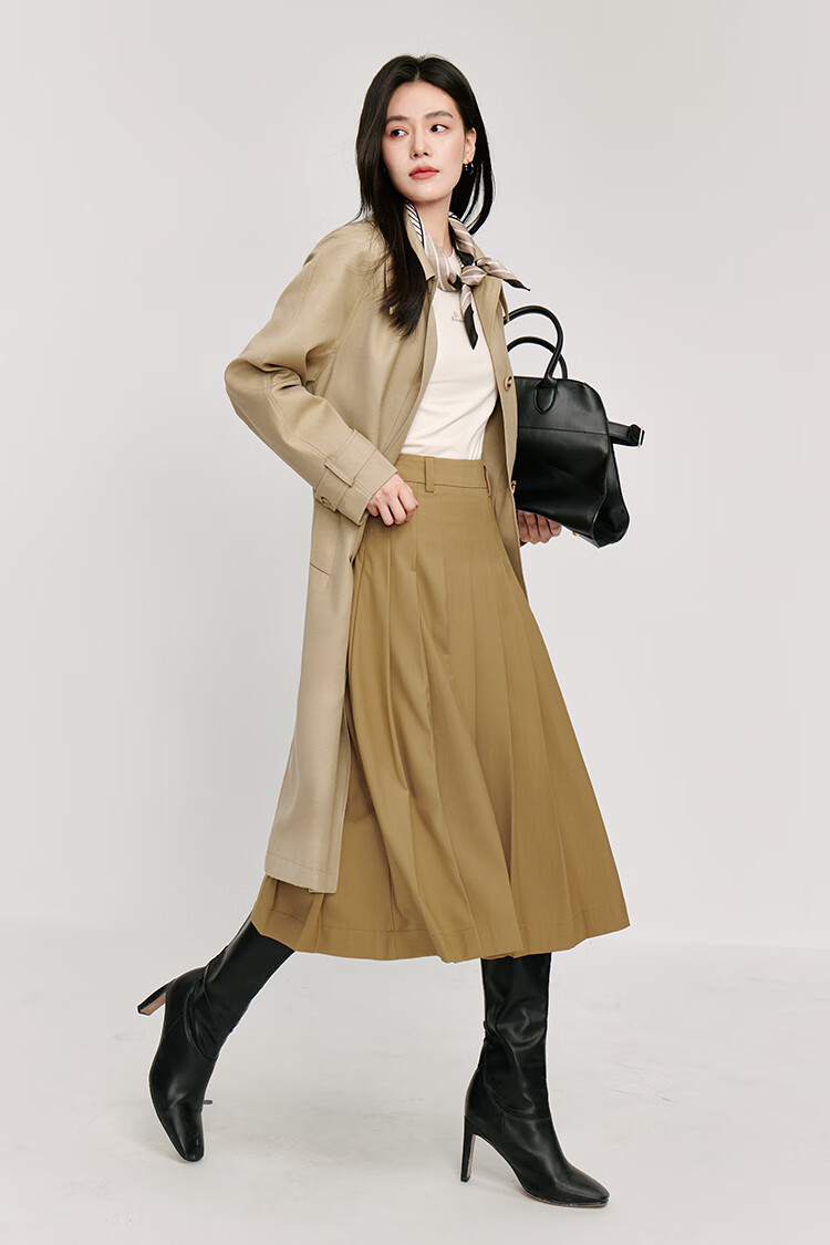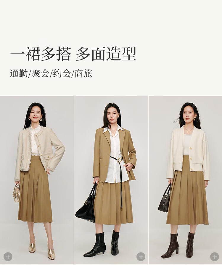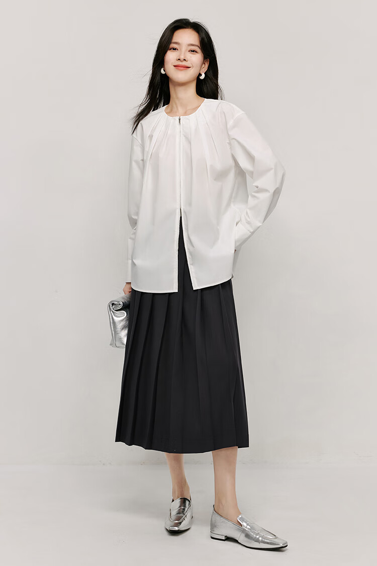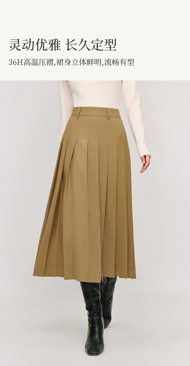 茵曼 格雷系百褶半身裙秋季女装经典A字宽松遮胯显瘦长裙 贵族灰 XL