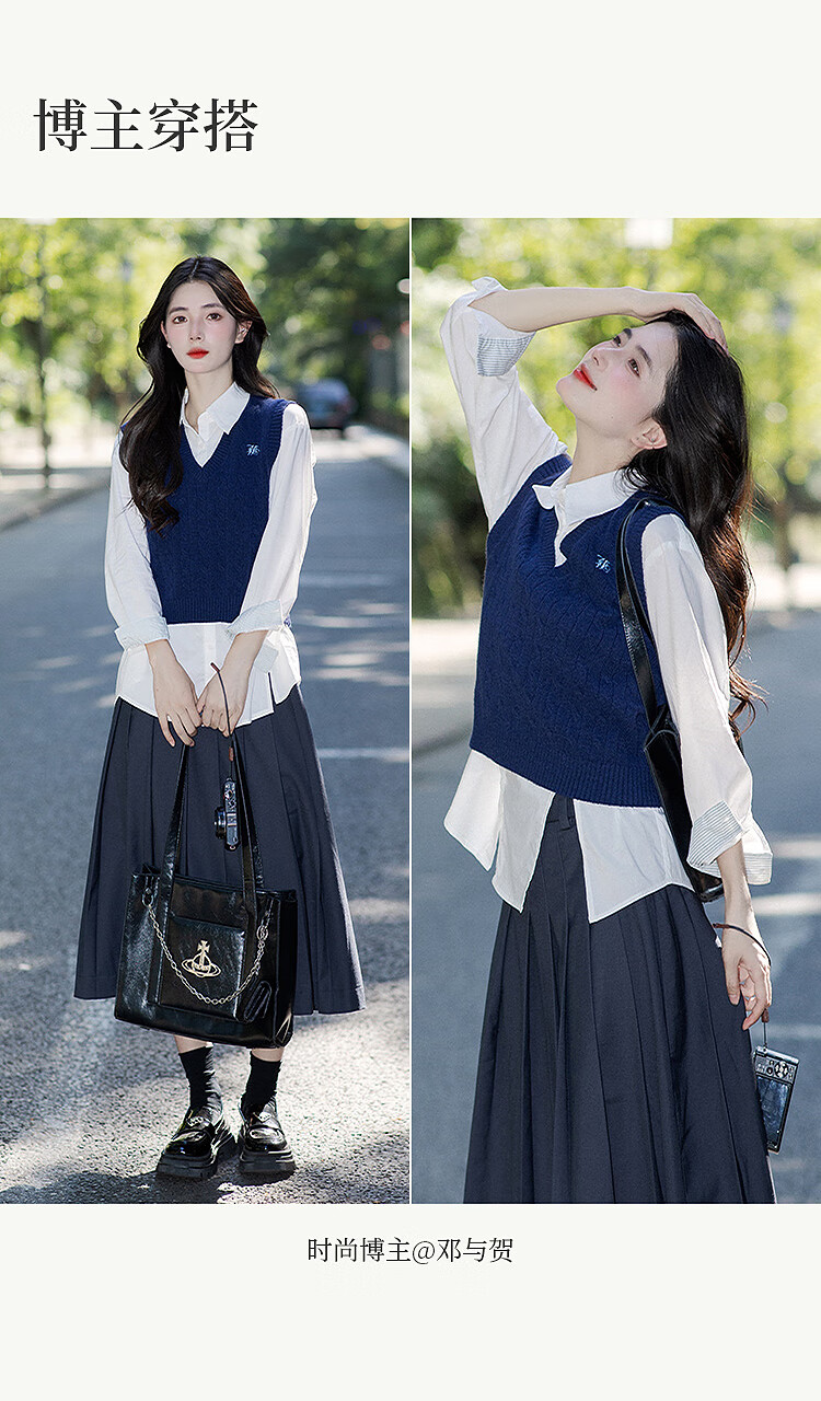 德玛纳【设计感假两件】夏季轻薄慵懒立体剪花无腰线直筒压褶女式连衣裙