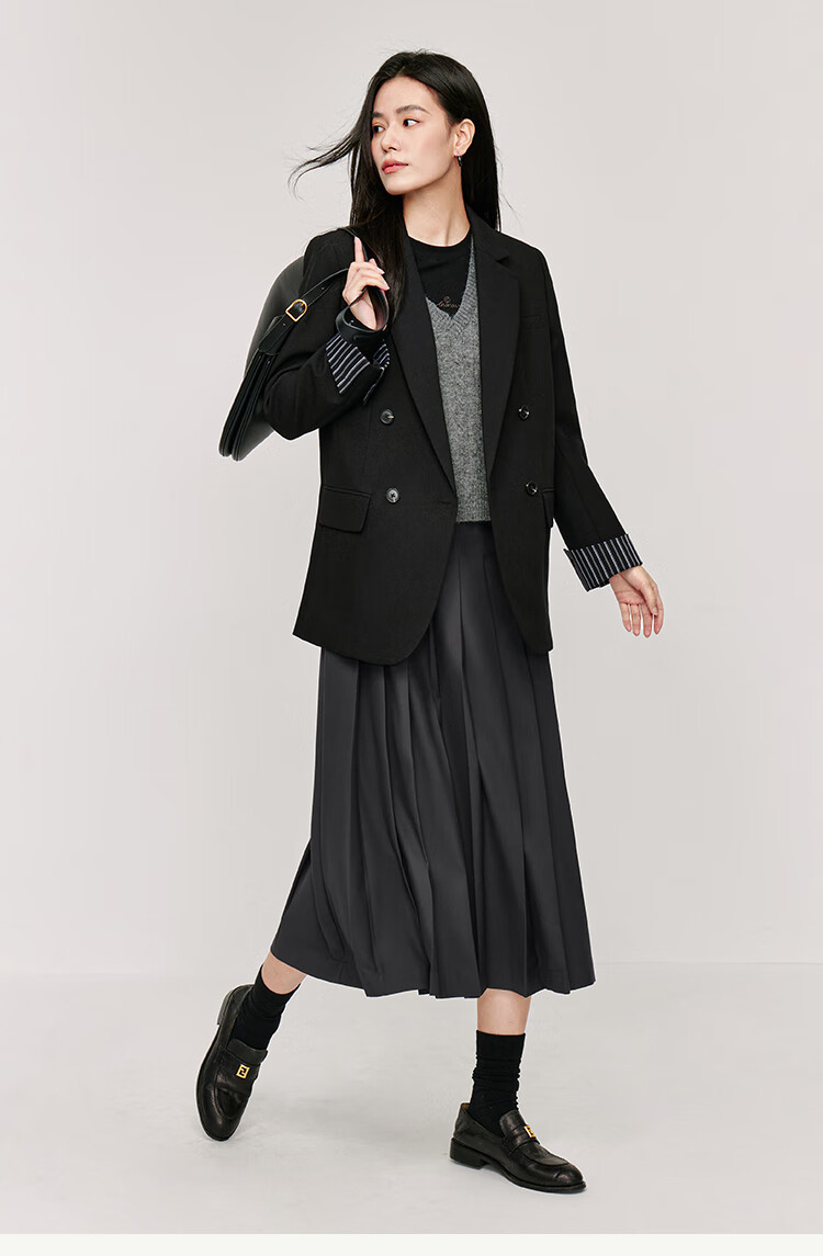 UR2025秋季新款女装高智感双排扣肌理感西装外套UWG150067