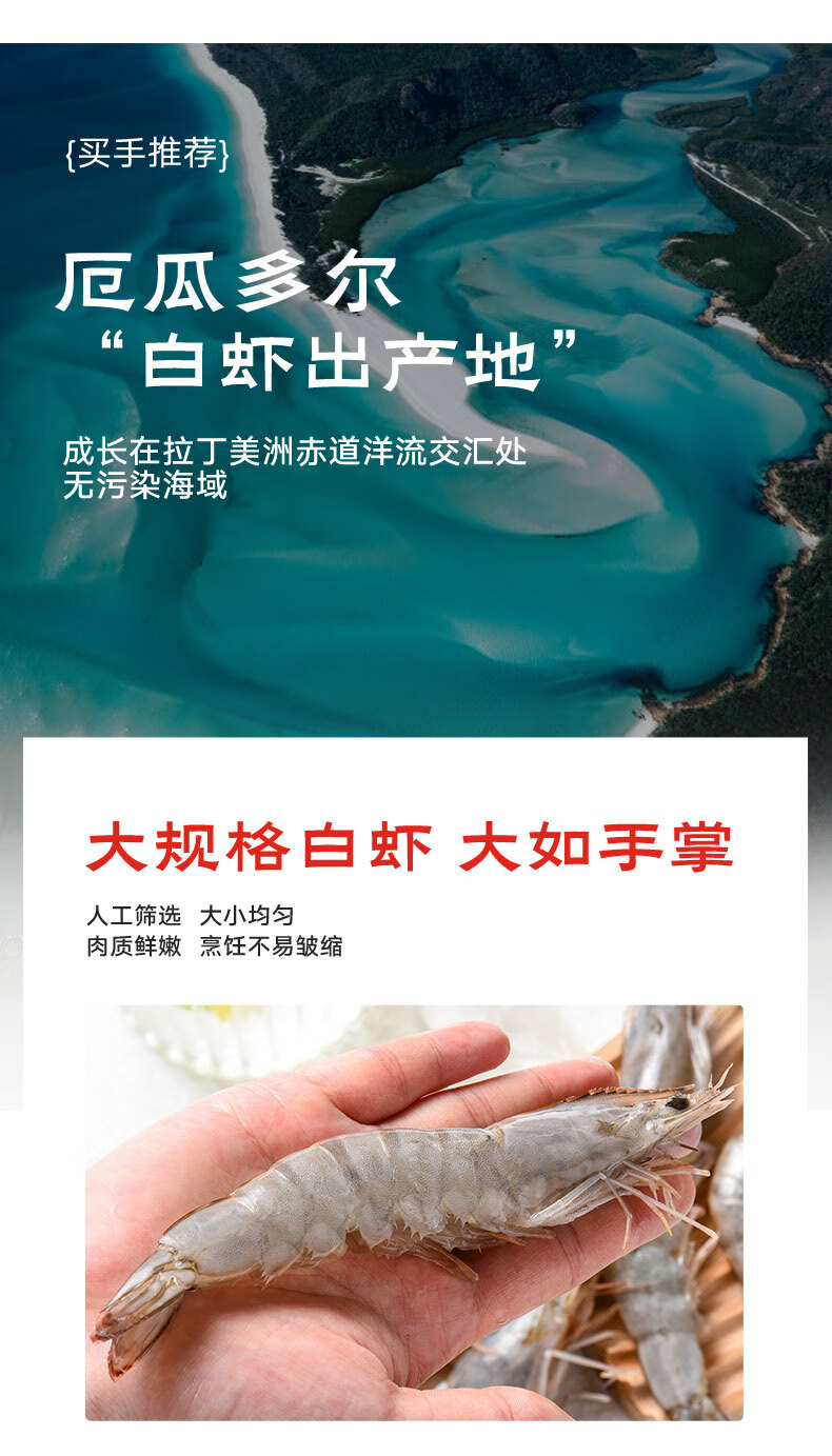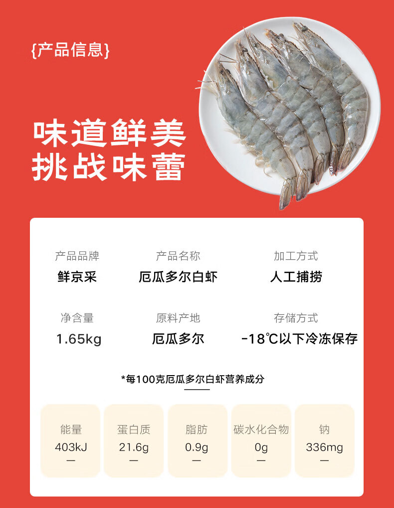 鲜京采 渤海湾盐田海白虾 净重3斤 单冻 75-90只/盒