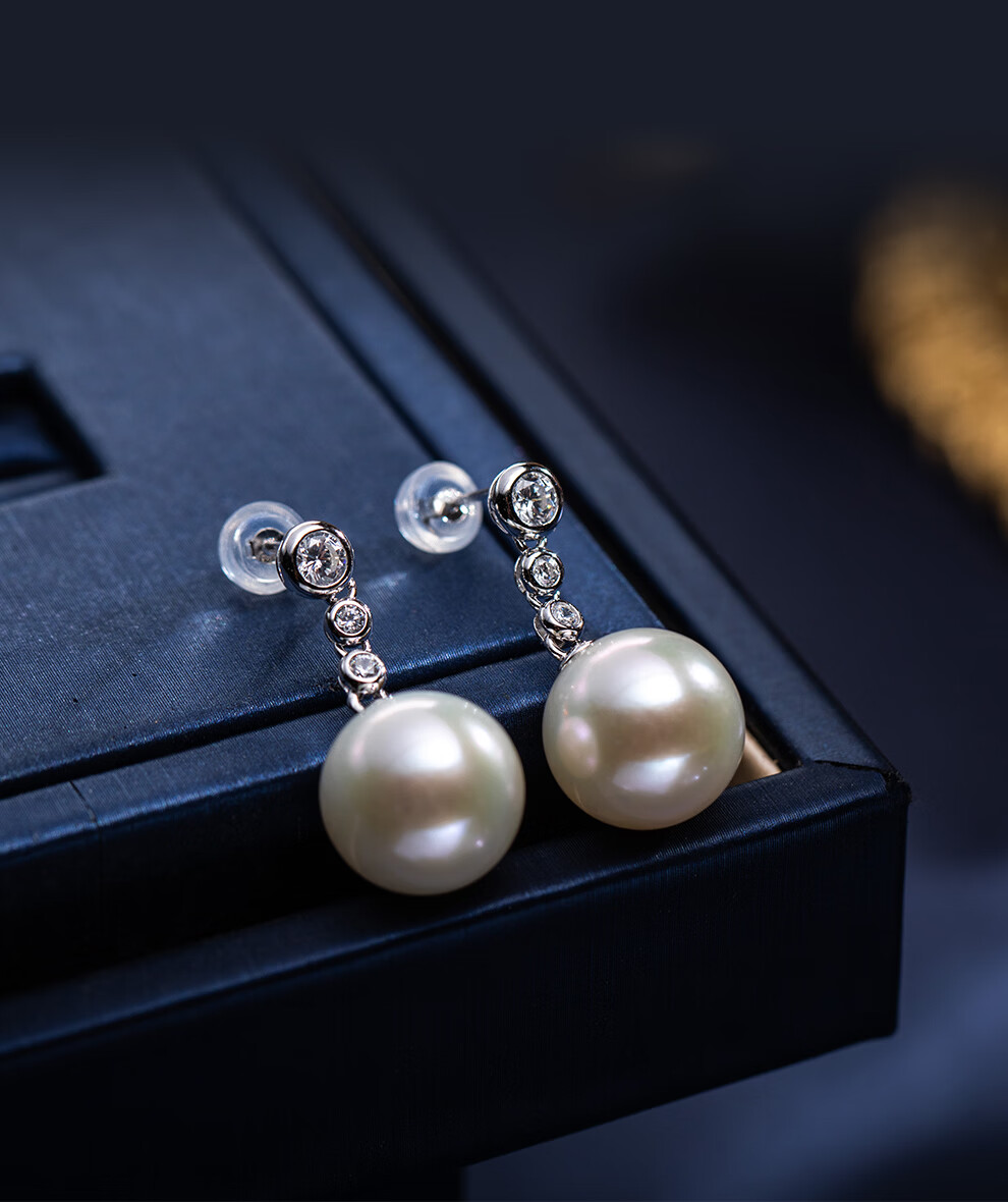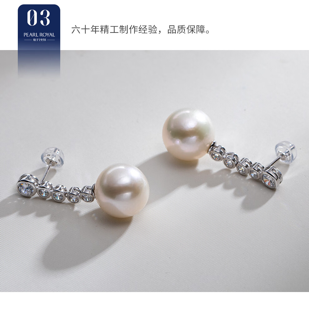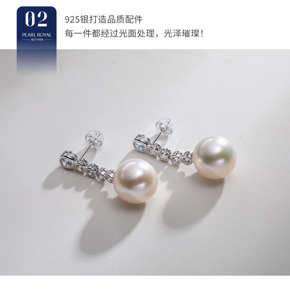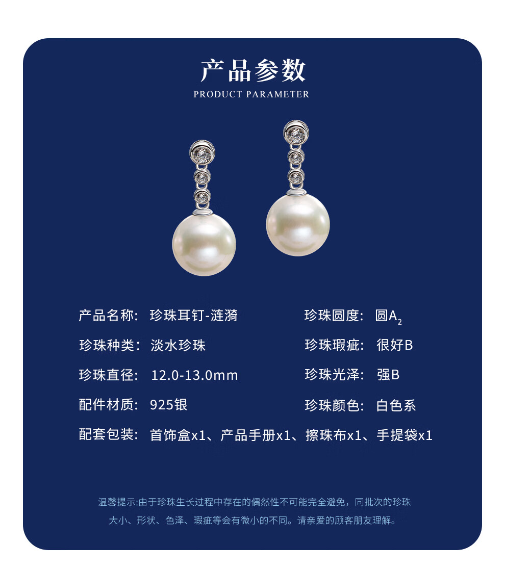 南珠宫涟漪珍珠耳环925银天然淡水珍珠耳钉耳饰高级感生日礼物送老婆 短款托 12.0-13.0mm