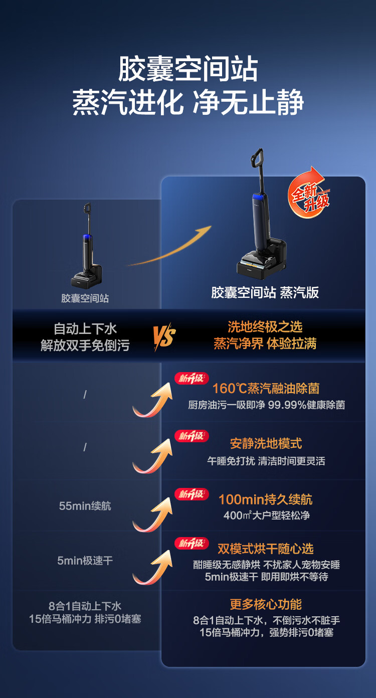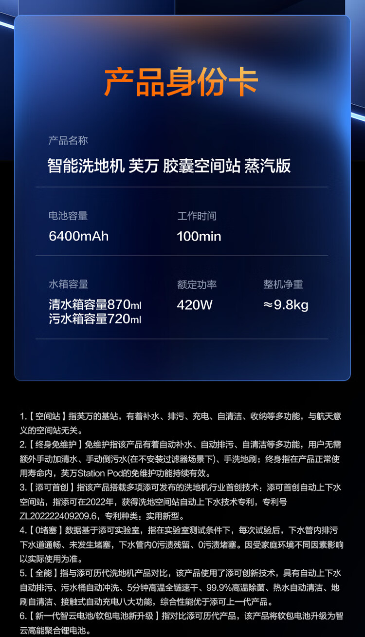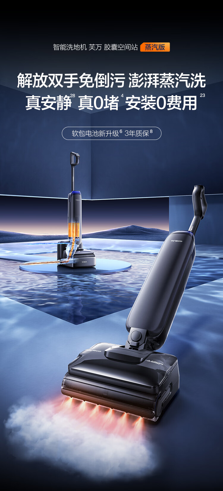 添可芙万StationPod蒸汽版【160℃蒸汽除油污 自动上下水】蒸汽洗地机基站吸拖一体自动清洗扫地机器人