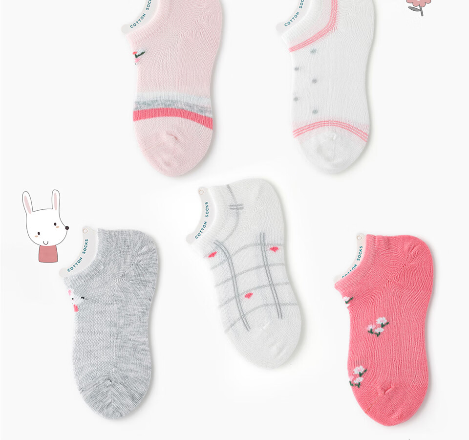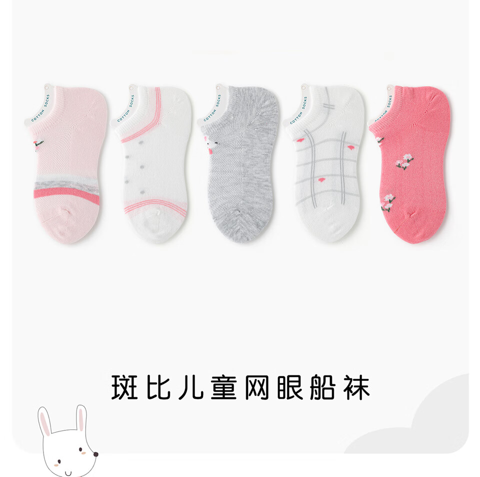 斑比船袜儿童袜子女孩夏天季薄款网眼棉袜中大童隐形短袜子 BB2228 儿童夏季网眼船袜 5双 1-3岁 建议脚码16-20码【14-16】