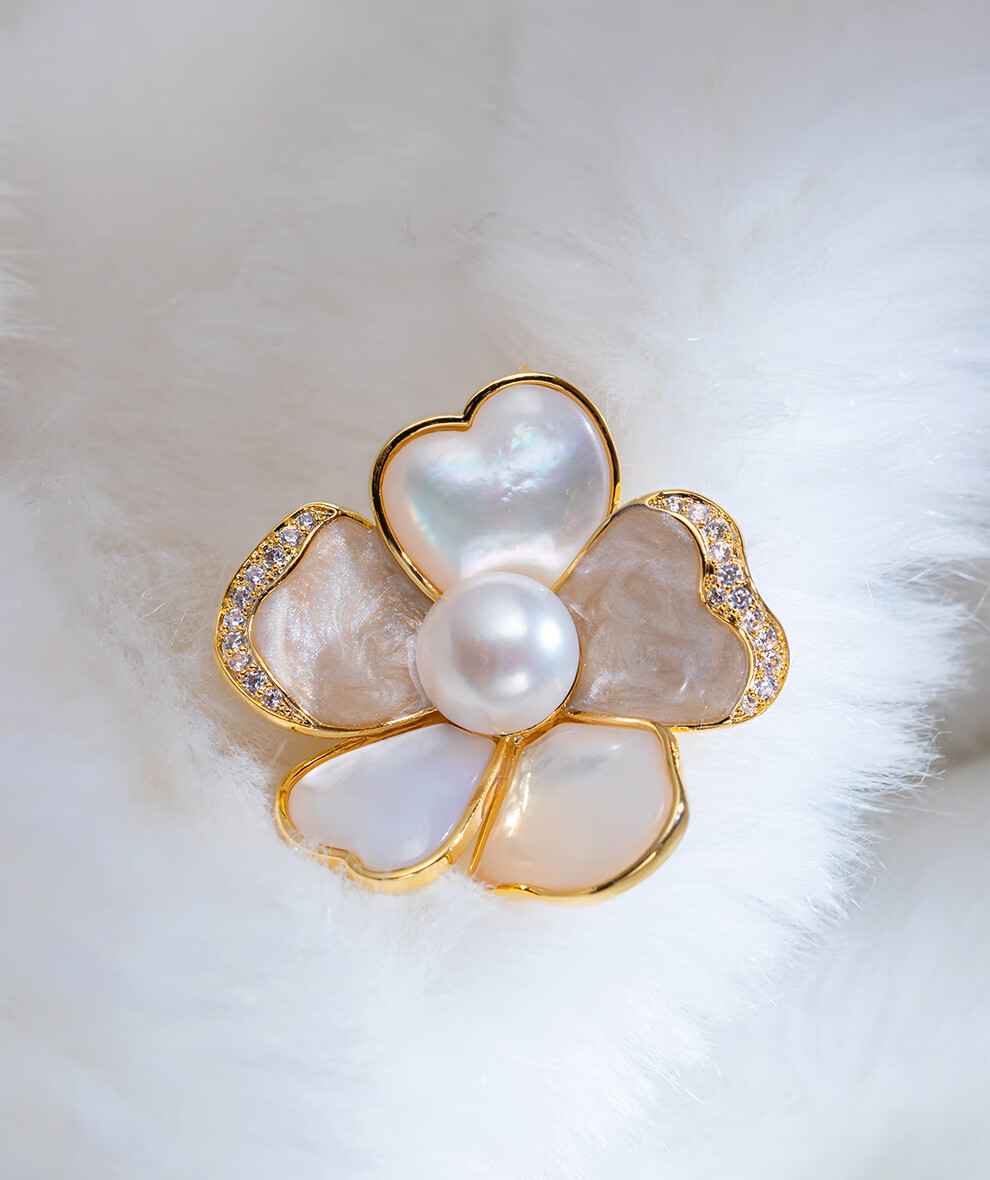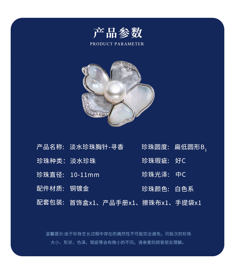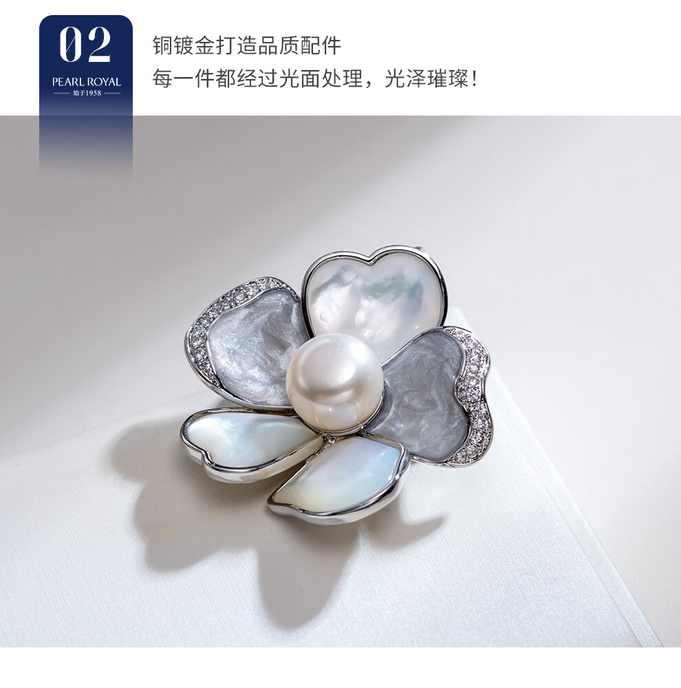 南珠宫淡水珍珠胸针寻香胸花年轻款秋冬百搭送女友 10.0-11.0mm 银色