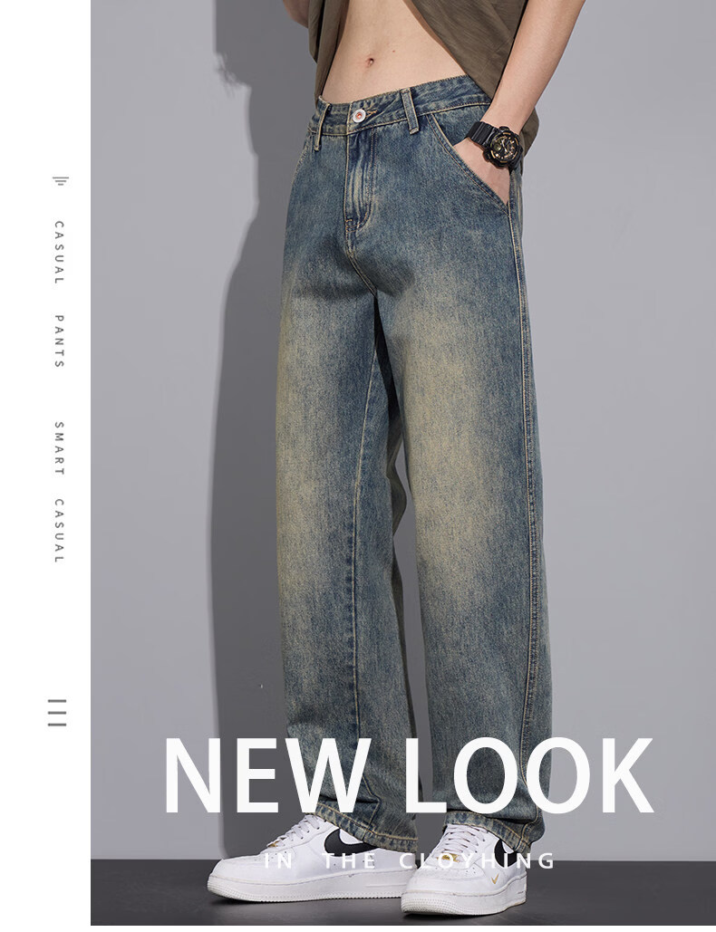 真维斯(Jeanswest)2026春季新款复古牛仔裤男士潮牌直筒简约宽松美式做旧休闲长裤子 N8090怀旧蓝 【官方正品】 28 【2尺1】