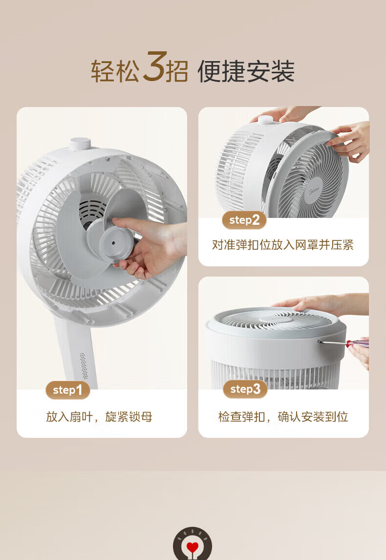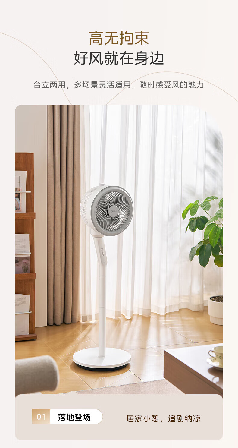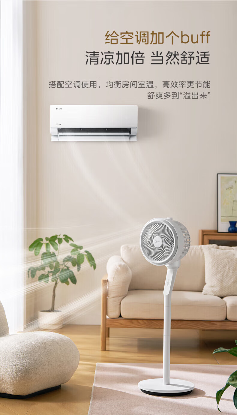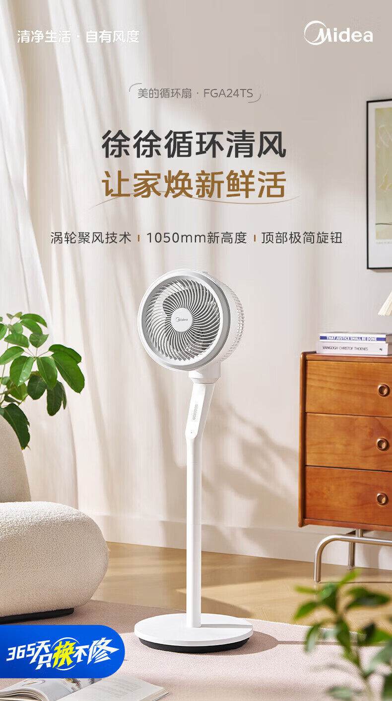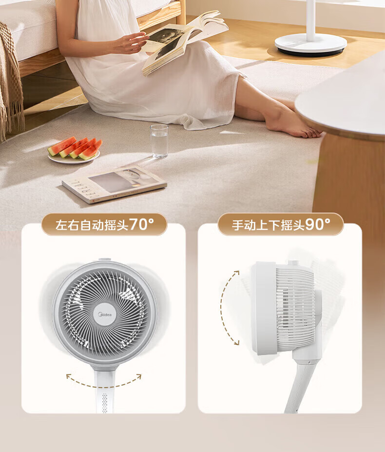 美的(Midea)空气循环扇家用摇头台式桌面两用小电扇宿舍办公室卧室低噪电风扇换气循环扇 【台地三用 超广角自动送风】FGA24TS